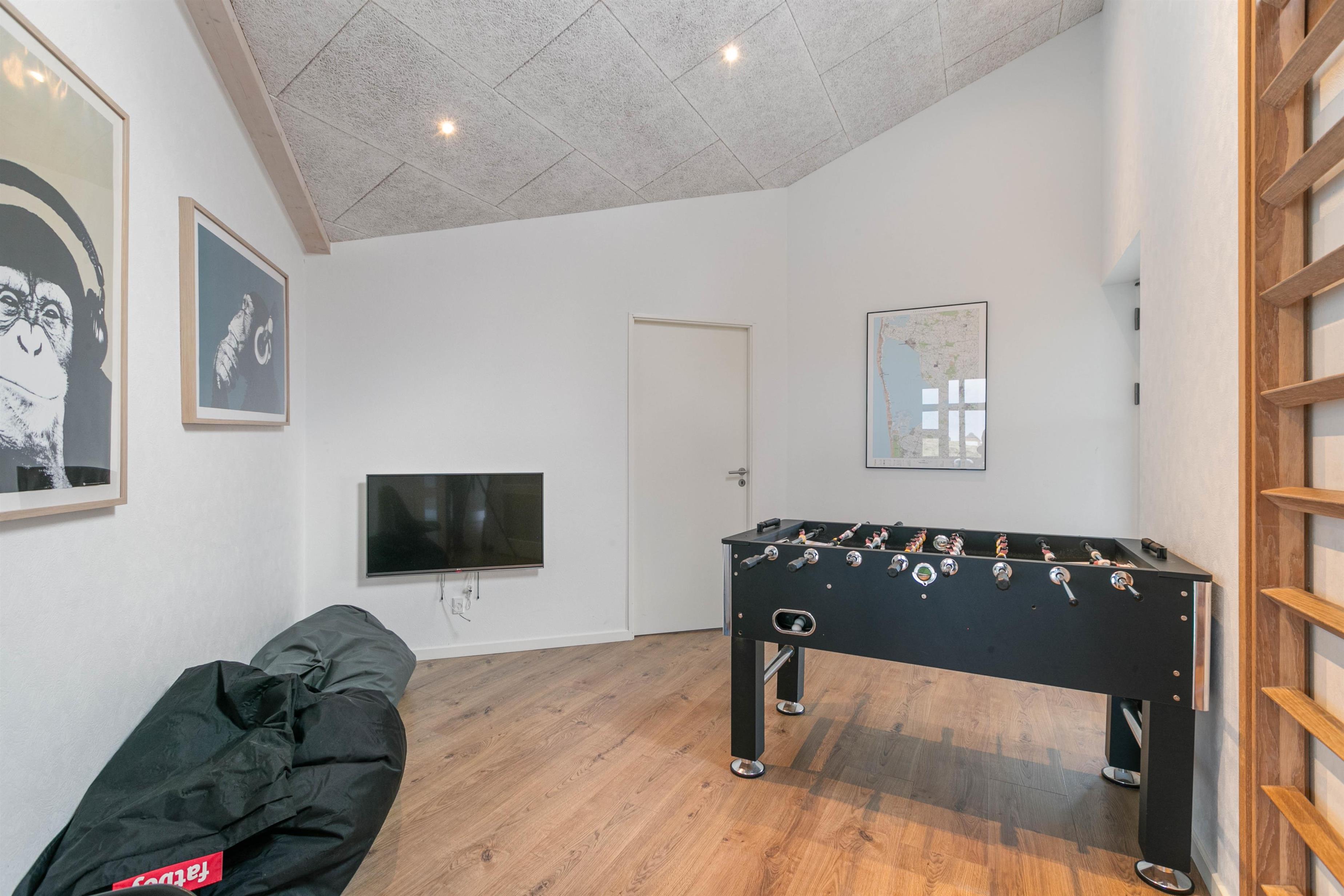 I husets aktivitetsrum er der et fodbold-bord og et stort fladskærms-TV, ideelt hvis man har medbragt sin spillekonsol hjemmefra. På begge af husets fladskærme kan du tilslutte spillekonsol eller andre ting via HDMI kablet.