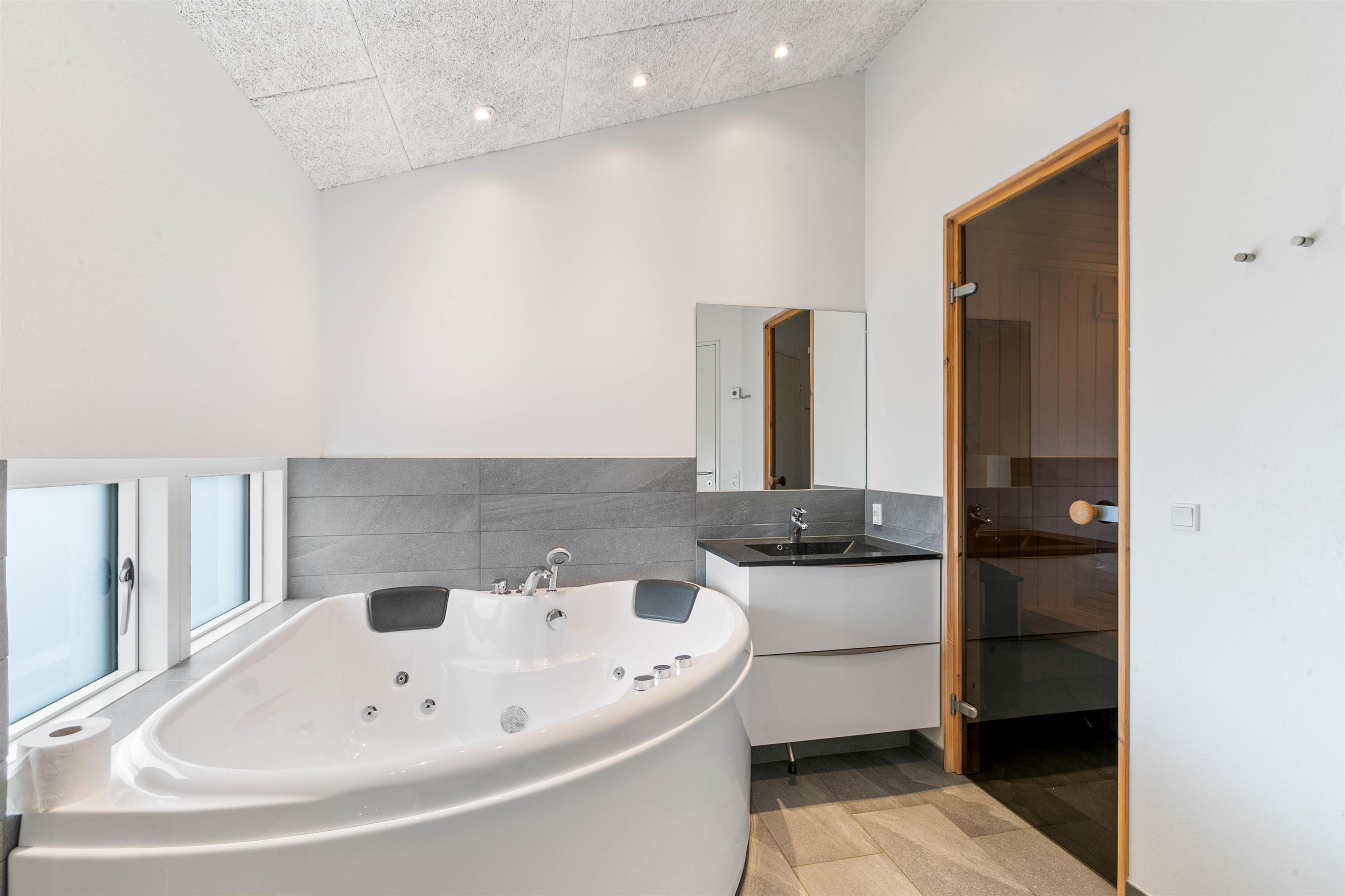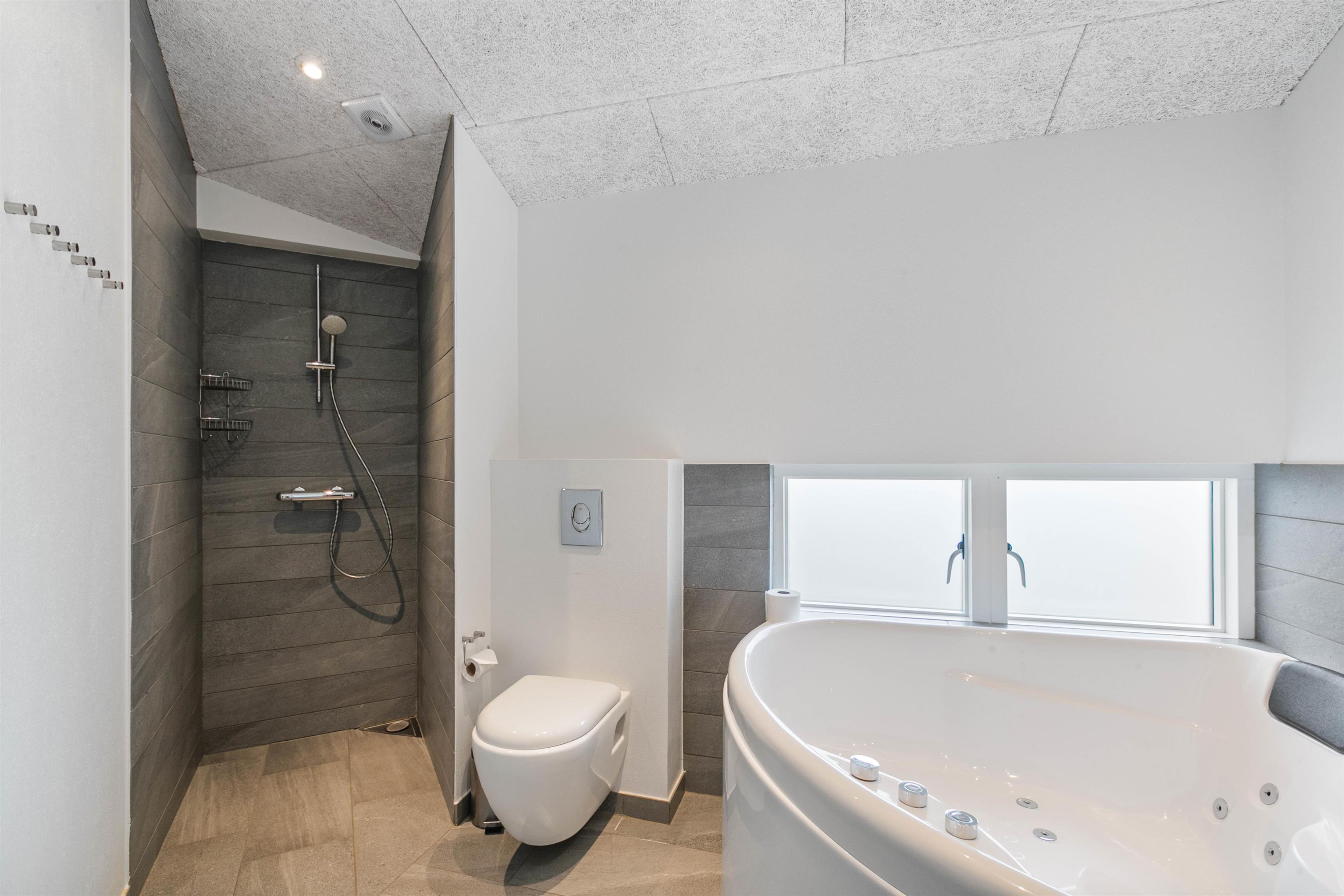 De fire soveværelser er fine og sommerhuset råder over hele tre moderne og lækre badeværelser og for de, der elsker at lave mad, står det veludstyrede køkken klar til brug, og det er naturligvis med opvaskemaskine og en separat fryser på 90 liter.