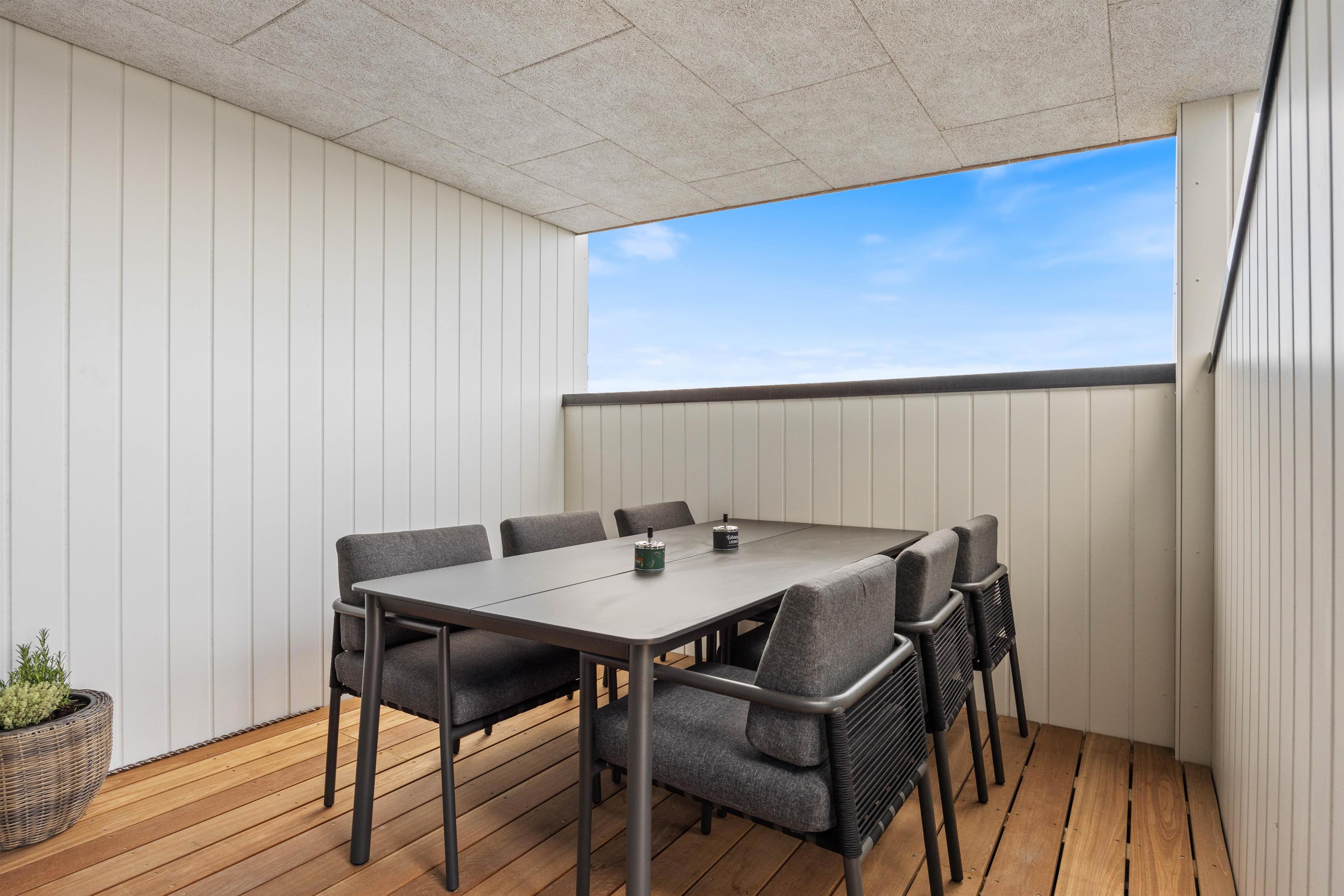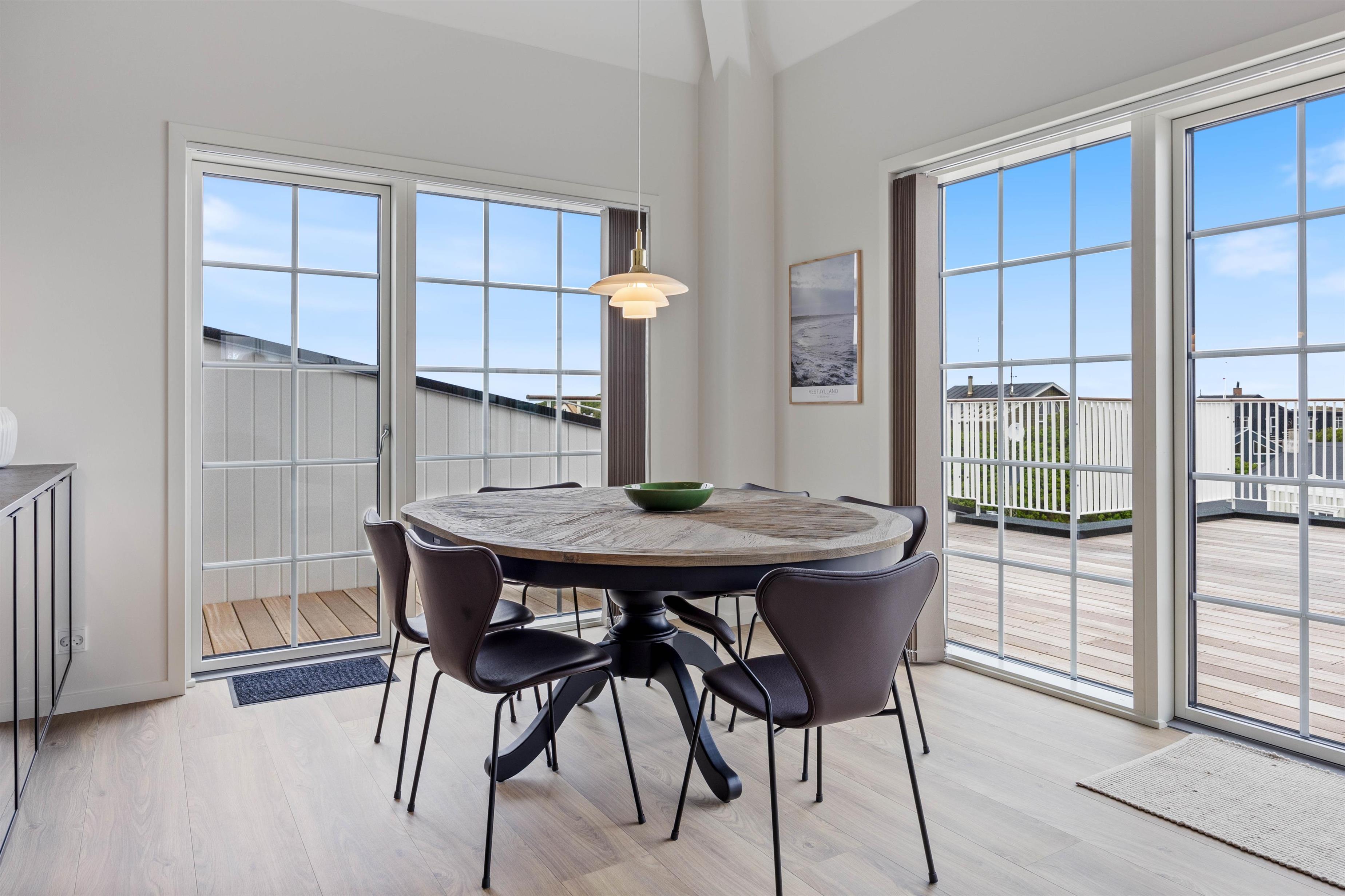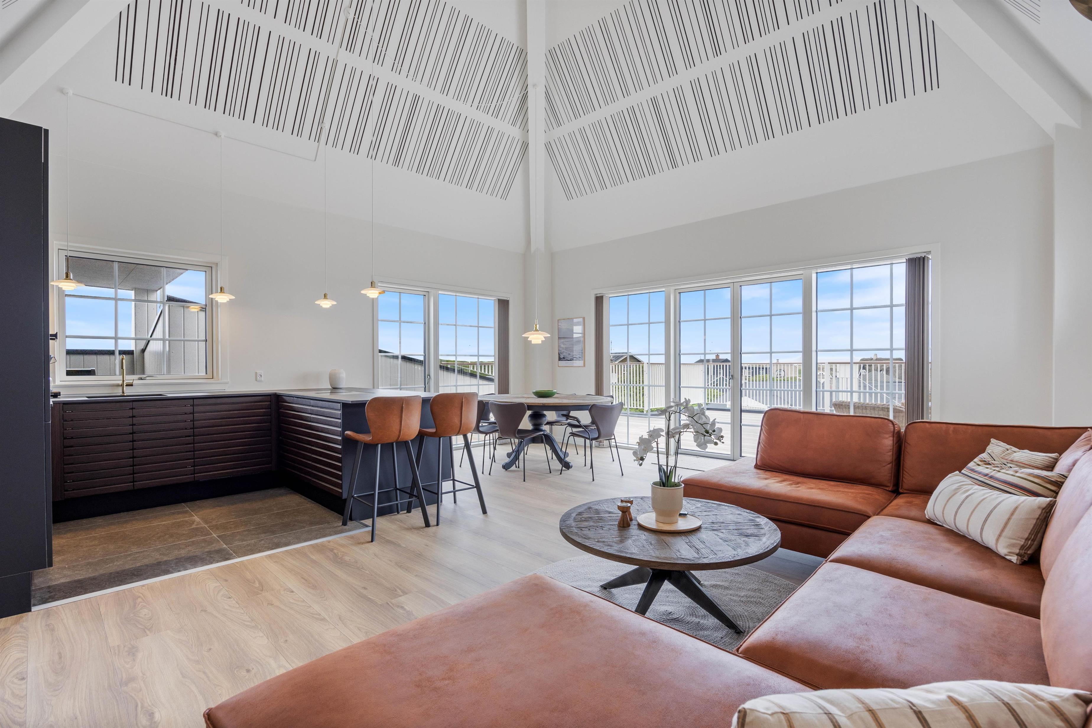 På den afskærmede tagterrasse på 212 m2 kan I hygge jer, selv når vejret ikke viser sig fra sin bedste side. Om I vil nyde et måltid mad, solbade eller tage et spil kort, så kan denne tagterrasse garantere jer de mest fantastiske rammer. Uanset vind og vejr, kan I finde et skønt sted at sidde og samles udendørs, mens I har den mest fantastiske udsigt ud over Vesterhavet og klitlandskabet. I kan bogstaveligt talt smage saltet fra Nordsøen, så tæt er I på vandet. Fra ferielejligheden kan I se både Vesterhavet, Søndervig by samt Ringkøbing Fjord med alle kitesurferne.