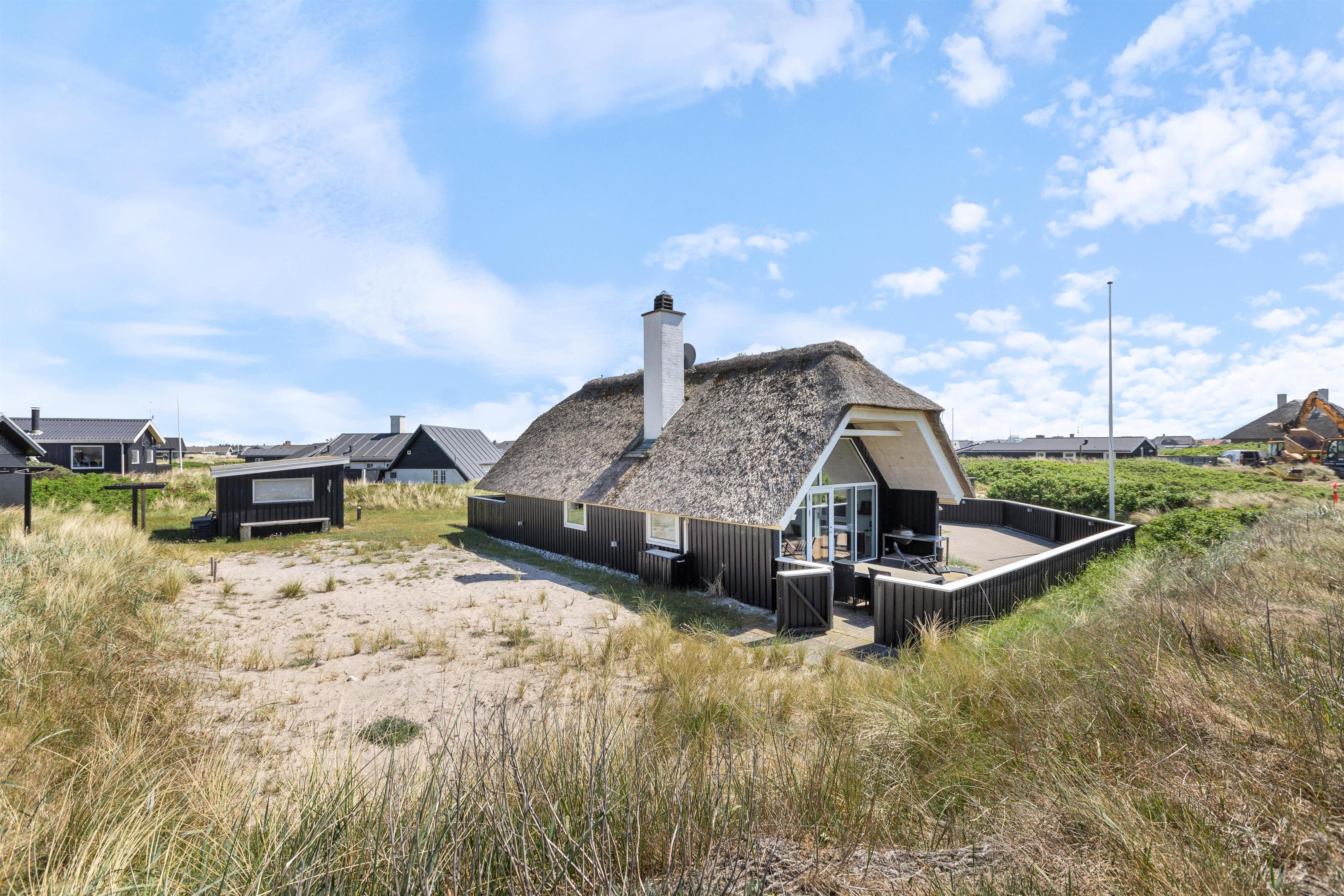 Det flotte stråtagshus på Hafavej 103 udstråler en ægte sommerhusstemning og er samtidig rigtig lækkert indrettet med wellnessafdeling. Her kan I holde en ferie kun 100 meter fra Vesterhavet og ikke langt fra Søndervigs hyggelige bymidte. Her er plads til 6 personer og jeres hund.