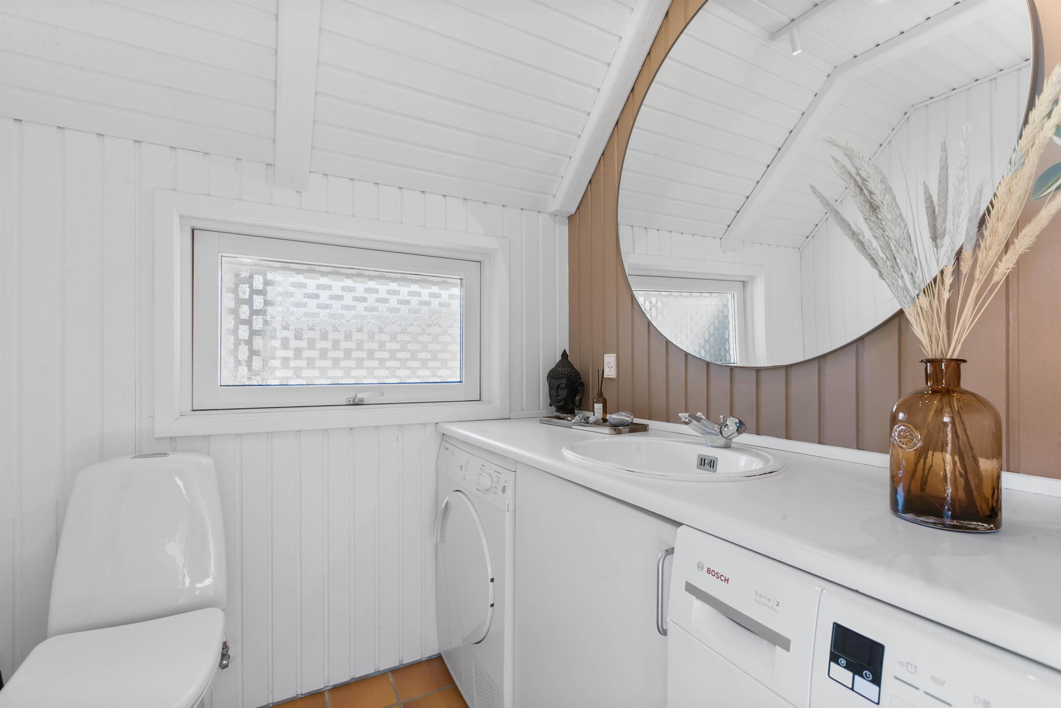 På de lidt koldere og blæsende dage, er det oplagt at tænde op for brændeovnen, som er placeret inde i stuen, og I vil straks mærke varmen brede sig i hele sommerhuset. Har I ikke gang i brændeovnen, kan i tænde for den energibesparende luft til luft varmepumpe, som vil bidrage til et behageligt indeklima.