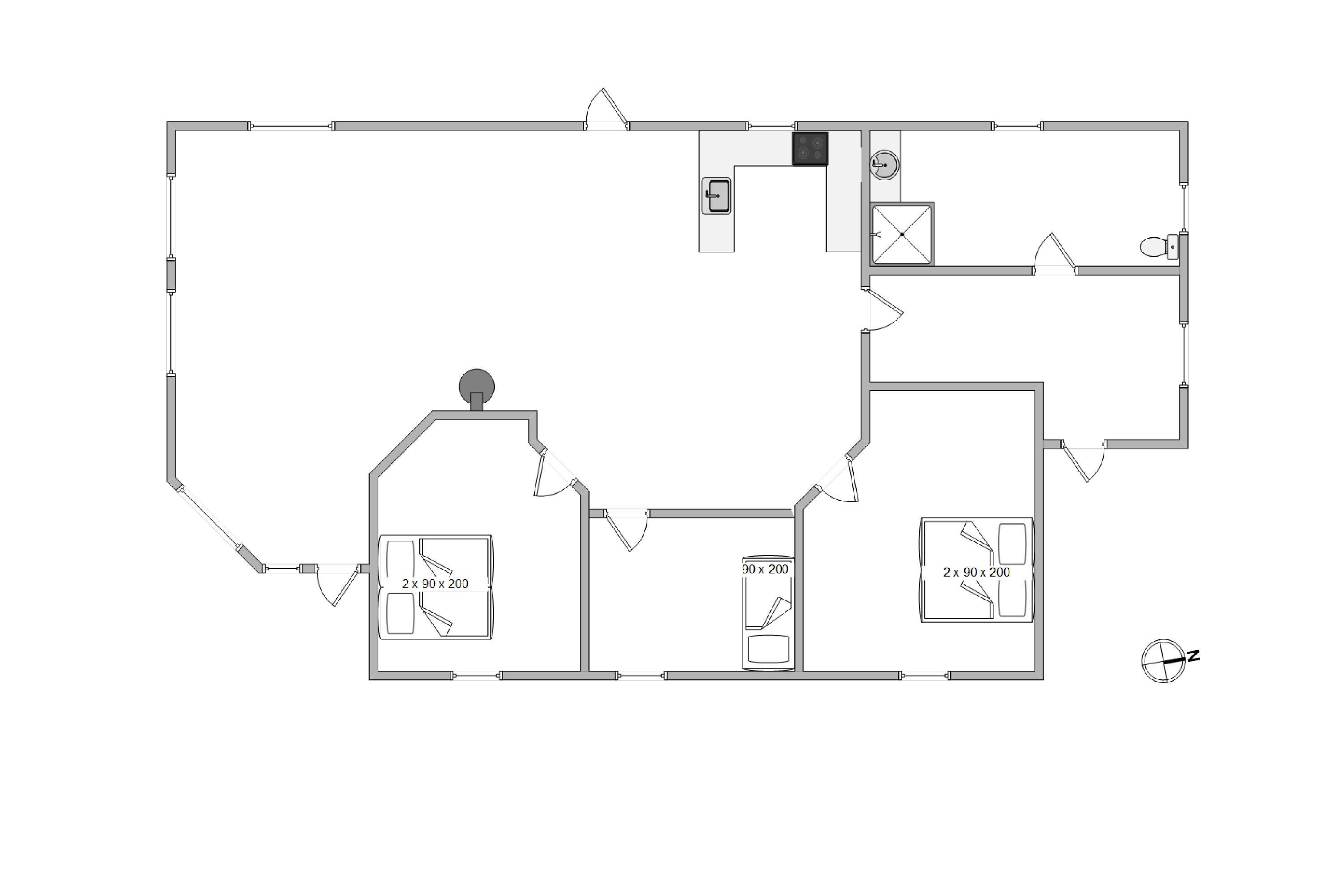 Lige så snart I træder ind i det 104 kvadratmeter moderne sommerhus, bliver i mødt af en lys og venlig indretning, hvor I straks vil føle jer godt tilpas og hjemme. I sommerhuset finder i 3 gode værelser, hvoraf to af soveværelserne er indrettet med en dobbeltseng, og det sidste værelse er indrettet med en enkelt seng. Feriehusets samlingspunkt er helt klart køkkenalrummet, hvor I alle kan være samlet og hygge jer sammen. Her er det muligt at madentusiasterne sammen kan stå i det store køkken og tilberede et lækkert måltid til resten af familien, og på samme tid have en samtale med dem der sidder henne i sofaen og slapper af.