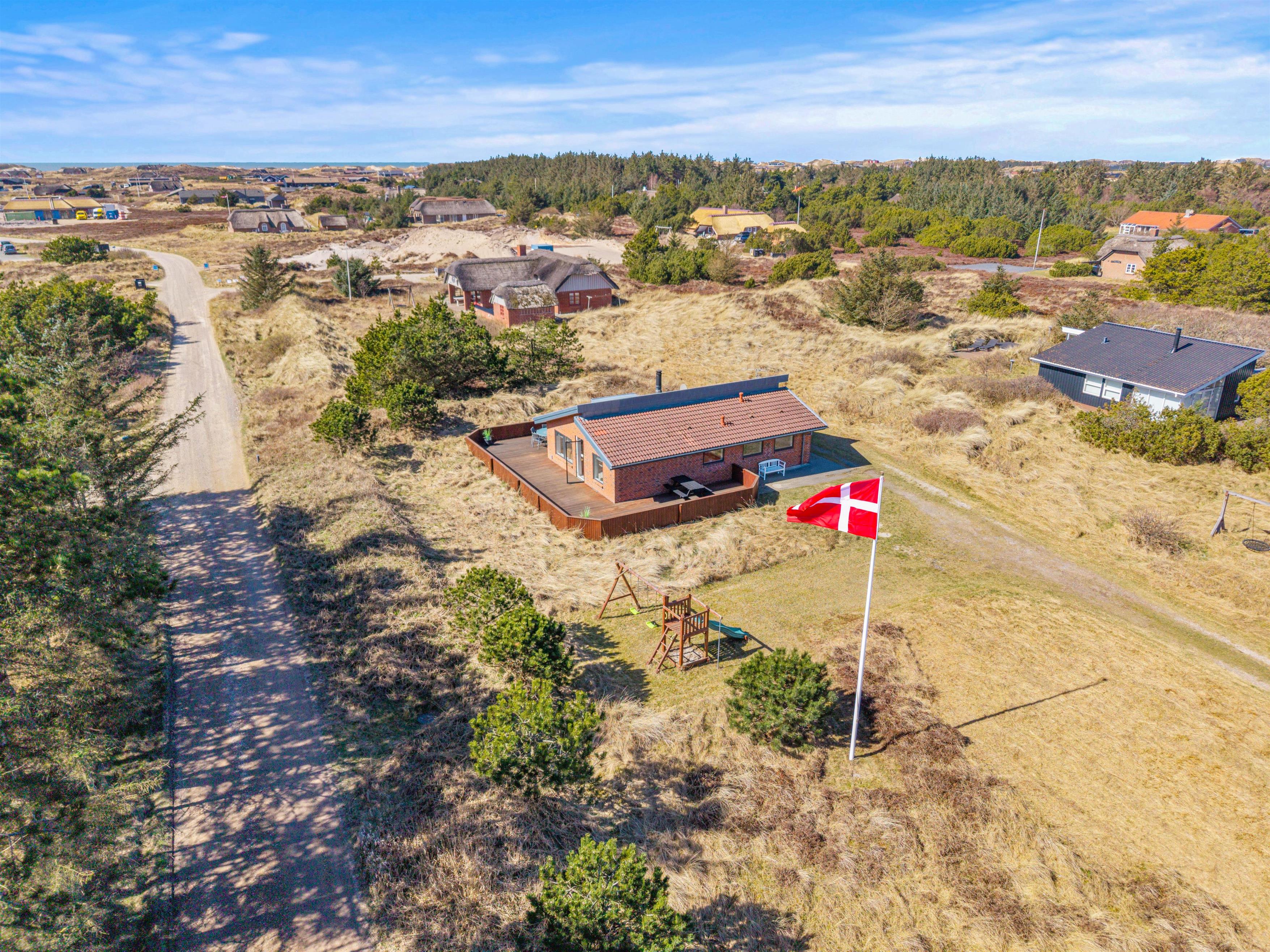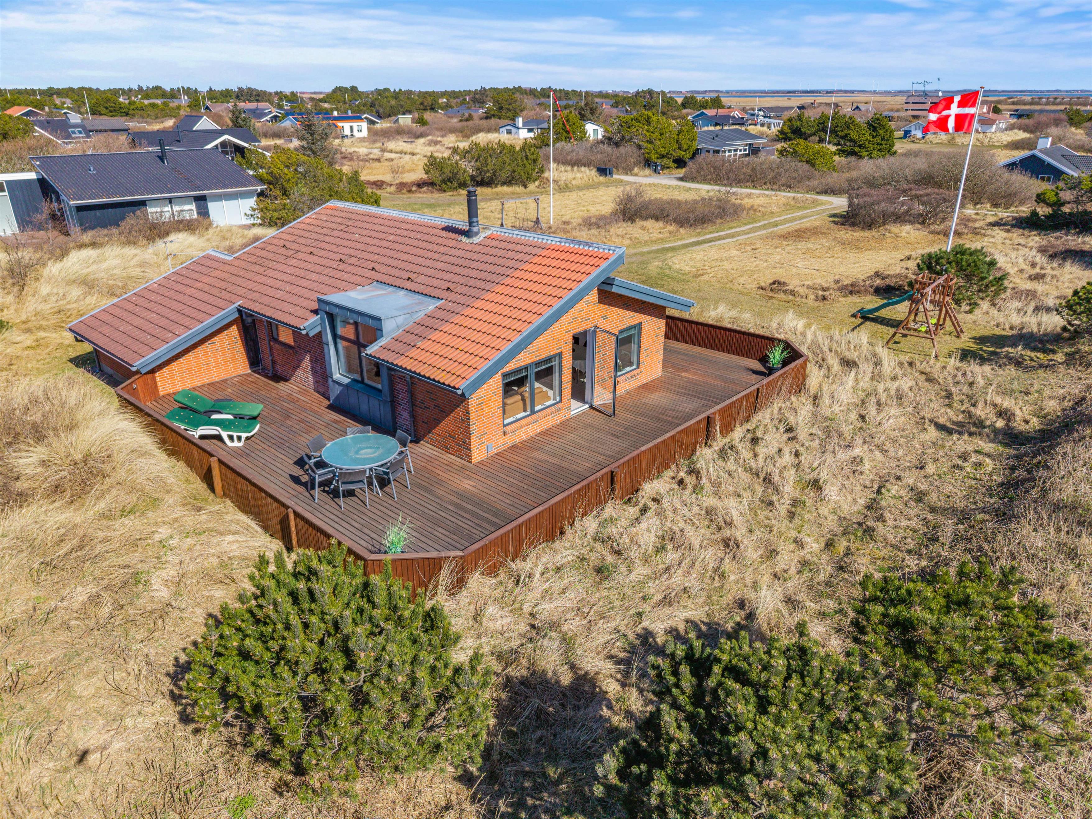 Sommerhuset er rigtig godt egnet til familier med børn, og familiens hund er selvfølgelig også velkommen. Sommerhusets gode størrelse, de moderne faciliteter og brændeovnen indbyder til ren hygge og afslapning med familien – især efter en dejlig gåtur til Vesterhavet. På husets naturgrund mod øst kan børnene hygge sig på gyngestativet og lege i sandkassen.