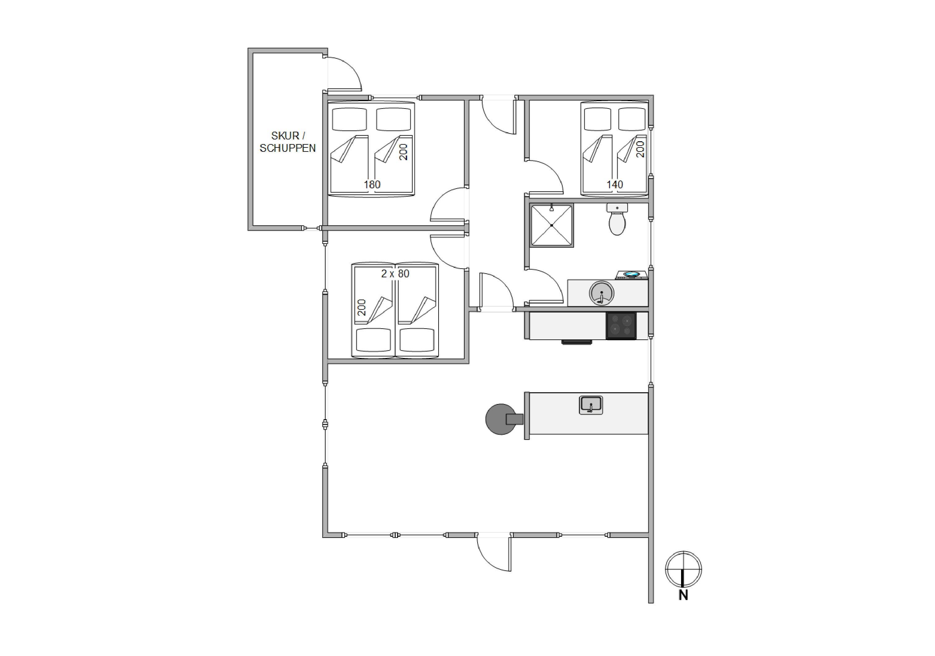 Sommerhuset kan huse op til seks glade feriegæster, og strækker sig i alt over 84 kvadratmeter. Sommerhusest seks sovepladser er fordelt på tre soverum, som alle er med en dobbeltseng. I er derfor mulighed for at nyde en god nat søvn efter en lang og begivenhedsrig dag.