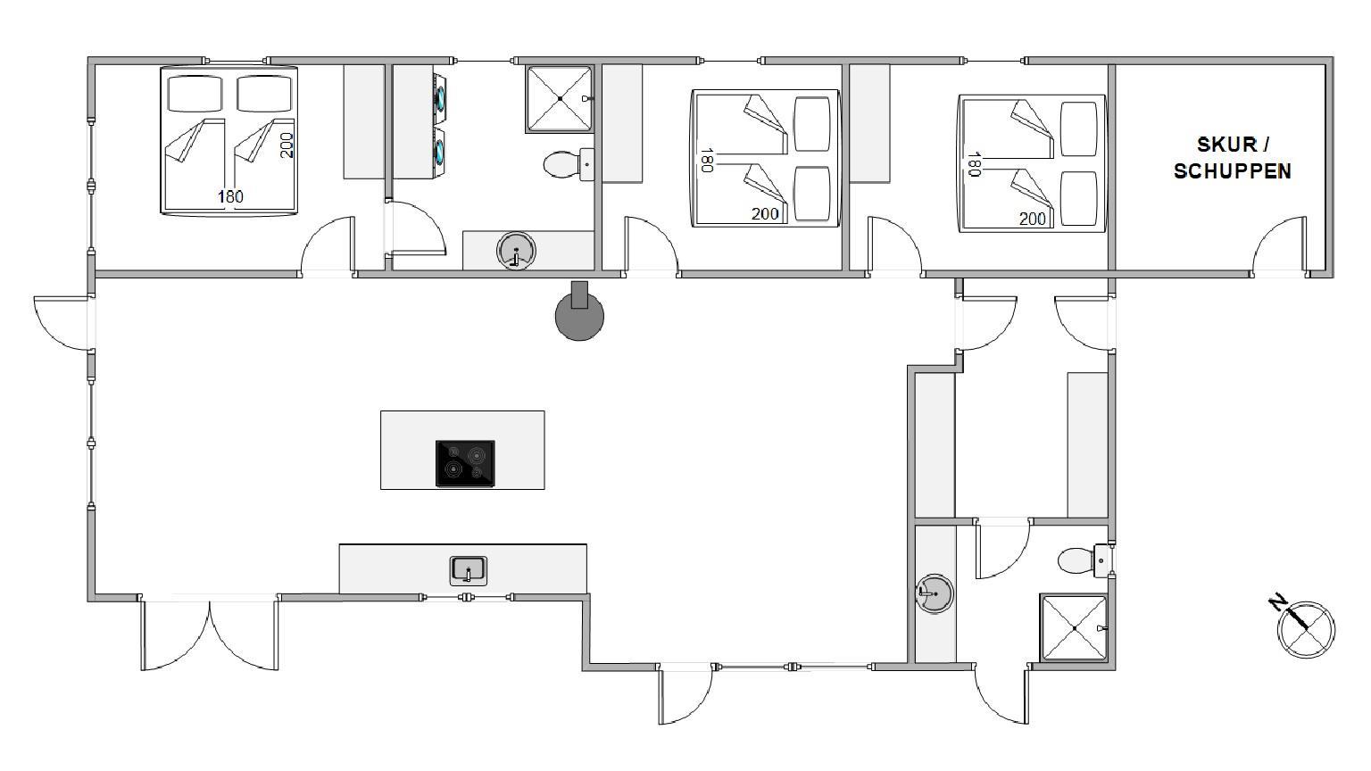 Med et husareal på 100m2 er dette sommerhus velegnet til op til 6 personer. Feriehuset indeholder tre soverum, der alle er udstyret med en dobbeltseng, hvilket sikrer en god nats søvn. Sommerhuset råder også over 2 store og gode badeværelser, der begge er udstyret med gulvvarme, som giver ekstra komfort på kølige morgener.