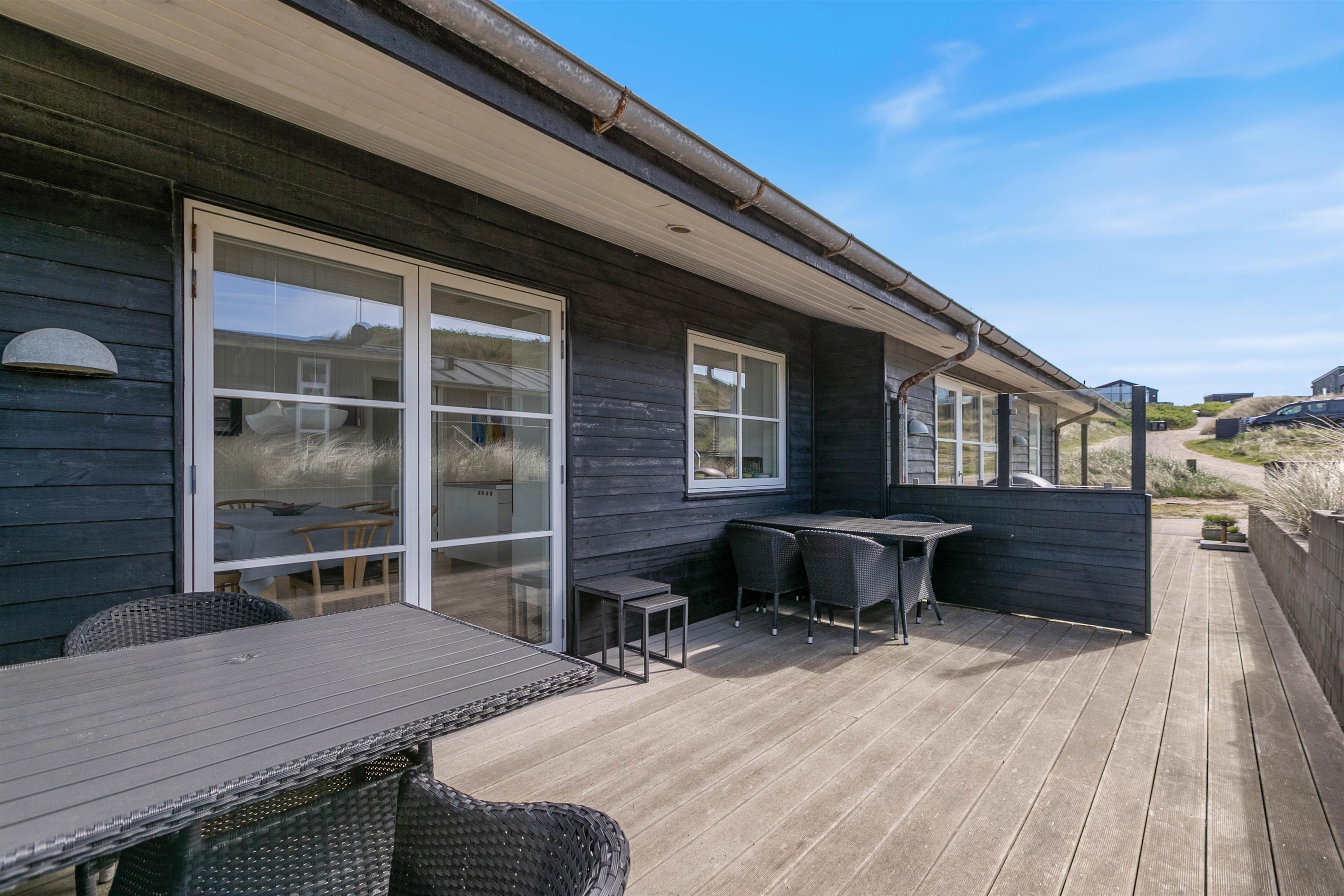 Den 1200m² store naturgrund og terrasser lægger op til udendørs afslapning, hvor I kan nyde en god bog eller tilberede et måltid på havemøblerne. Ved huset finder I flere fine terrasser og der er rig mulighed for at nyde de solrige dage, da både havemøbler og liggestole står klar til jer, så I har de bedste forudsætninger for at slappe af i det gode vejr og de flotte omgivelser. Den afskærmede terrasse er helt ideel til at nyde solens stråler i ro og mag.