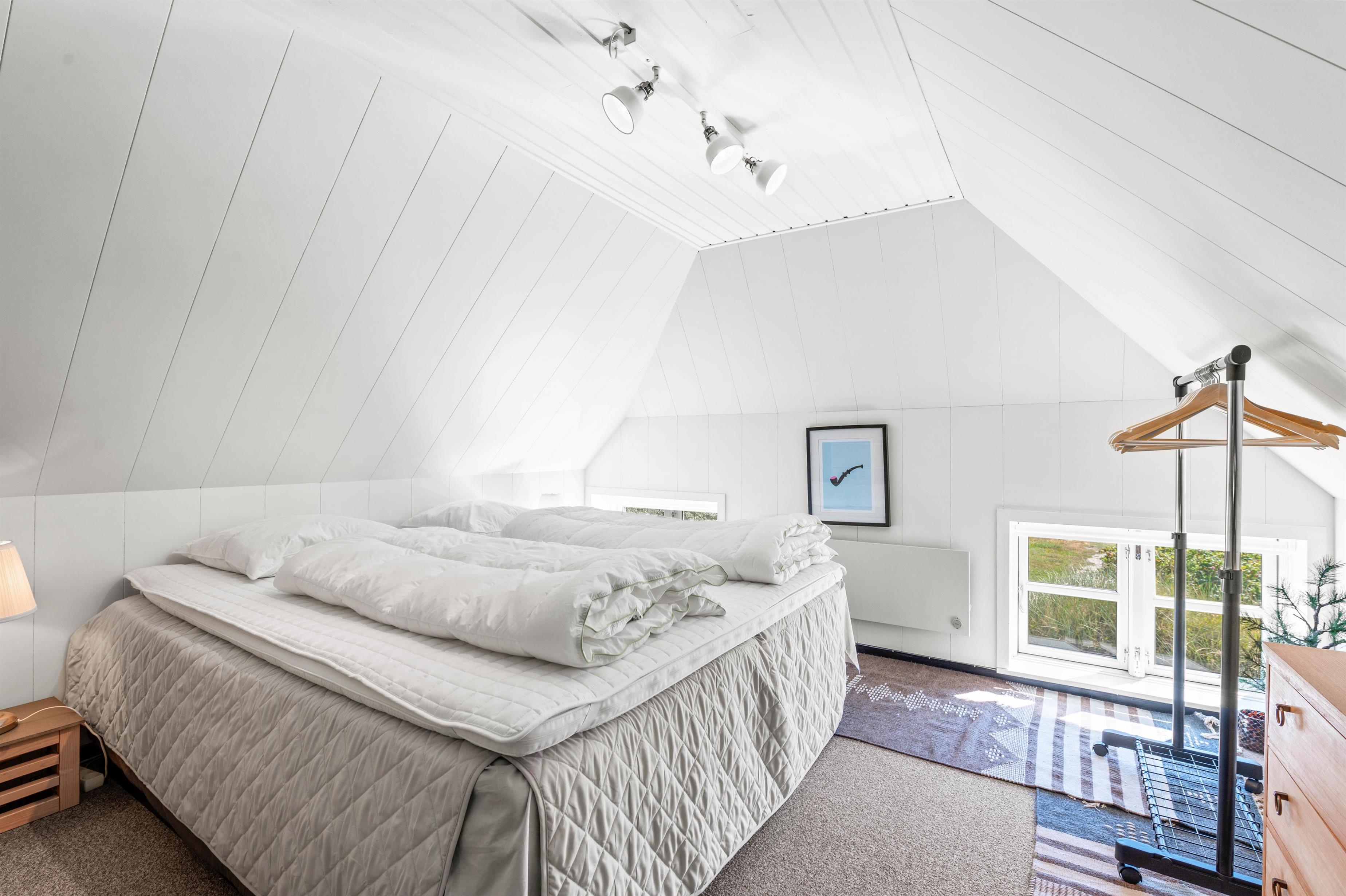 Holmsborgvej 35 har rigtig god plads til sine 6 gæster. I stueetagen er der 2 soverum og på 1. sal har I et ekstra soverum i form af en åben hems i forlængelse med en ekstra hyggestue, det giver mulighed for lidt ekstra privatliv.