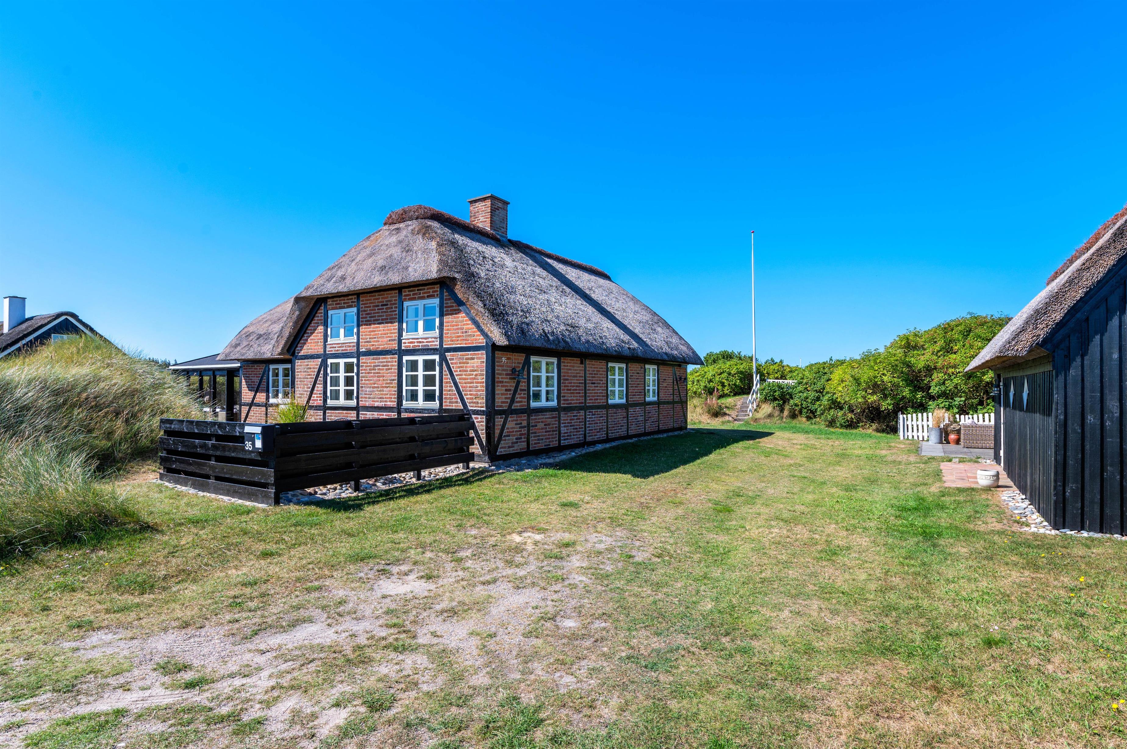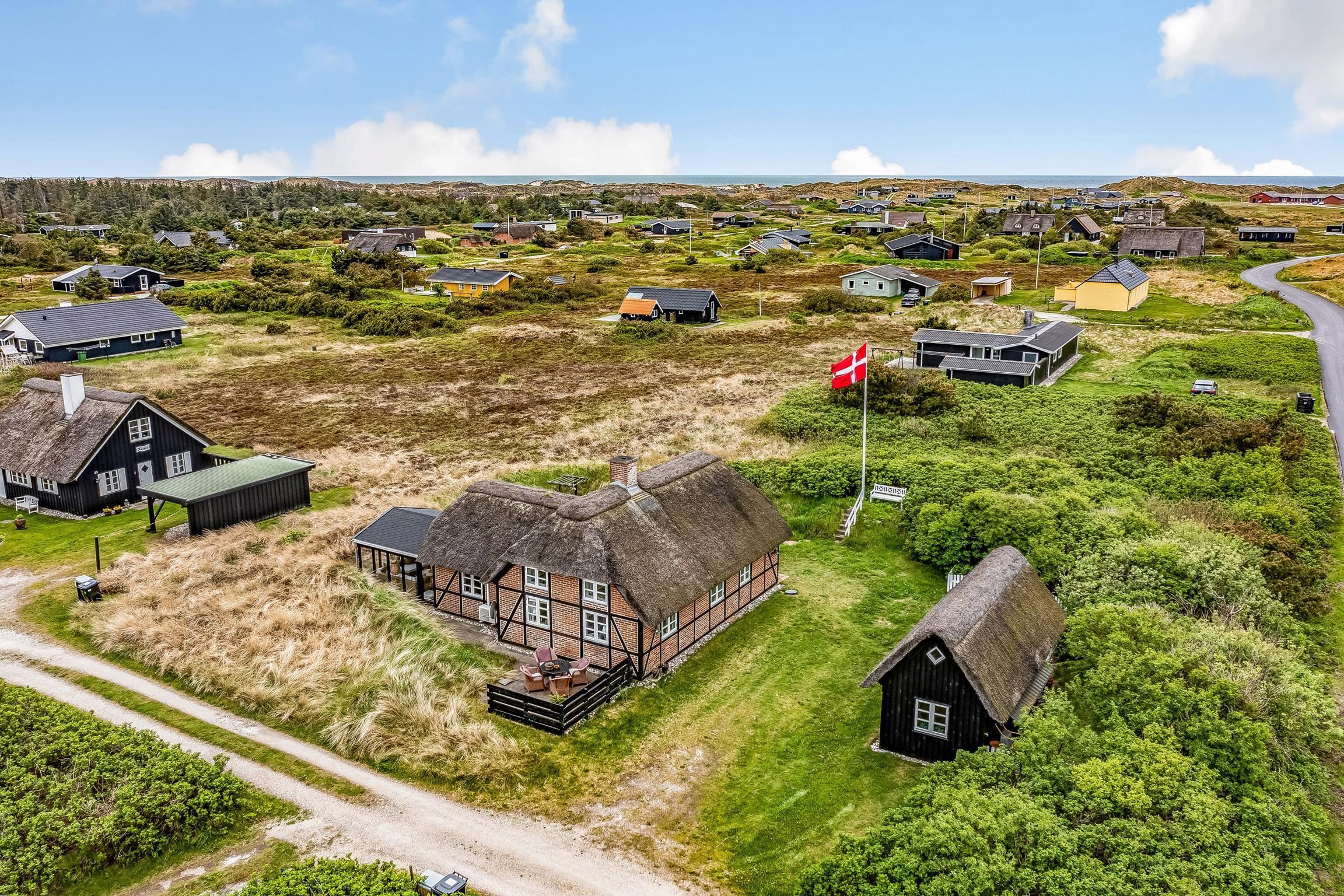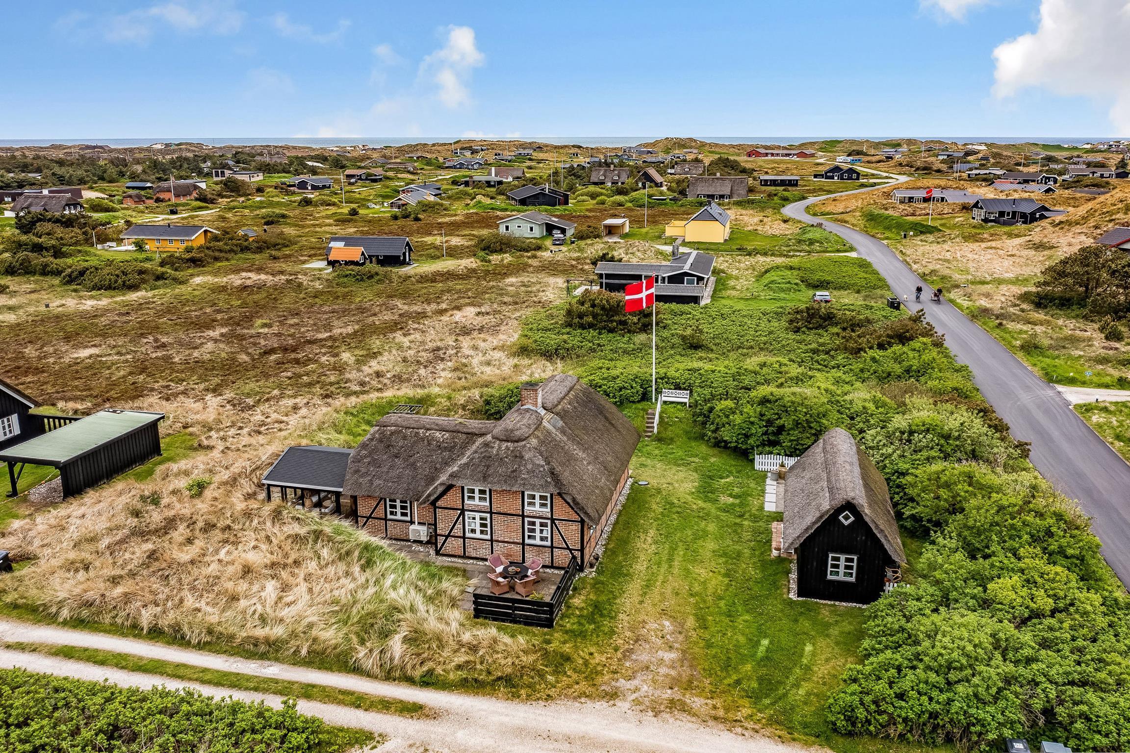 Her kan ferien ikke blive mere romantisk og smuk. På Holmsborgvej 35 i Søndervig står dette stråtægte feriehus klar til, at op til seks personer kan holde en dejlig ferie i de smukkeste rammer. Med en beliggendehed iblandt naturskønne områder, men samtidigt ikke langt væk fra feriebyen Søndervig, kan I her nyde en afslappende ferie, uden at være alt for langt væk fra massevis af aktiviteter og gode indkøbsmuligheder. Ankommer I med el-bil, har I mulighed for at lade direkte ved feriehuset. I skal blot huske at medbringe eget ladekabel.