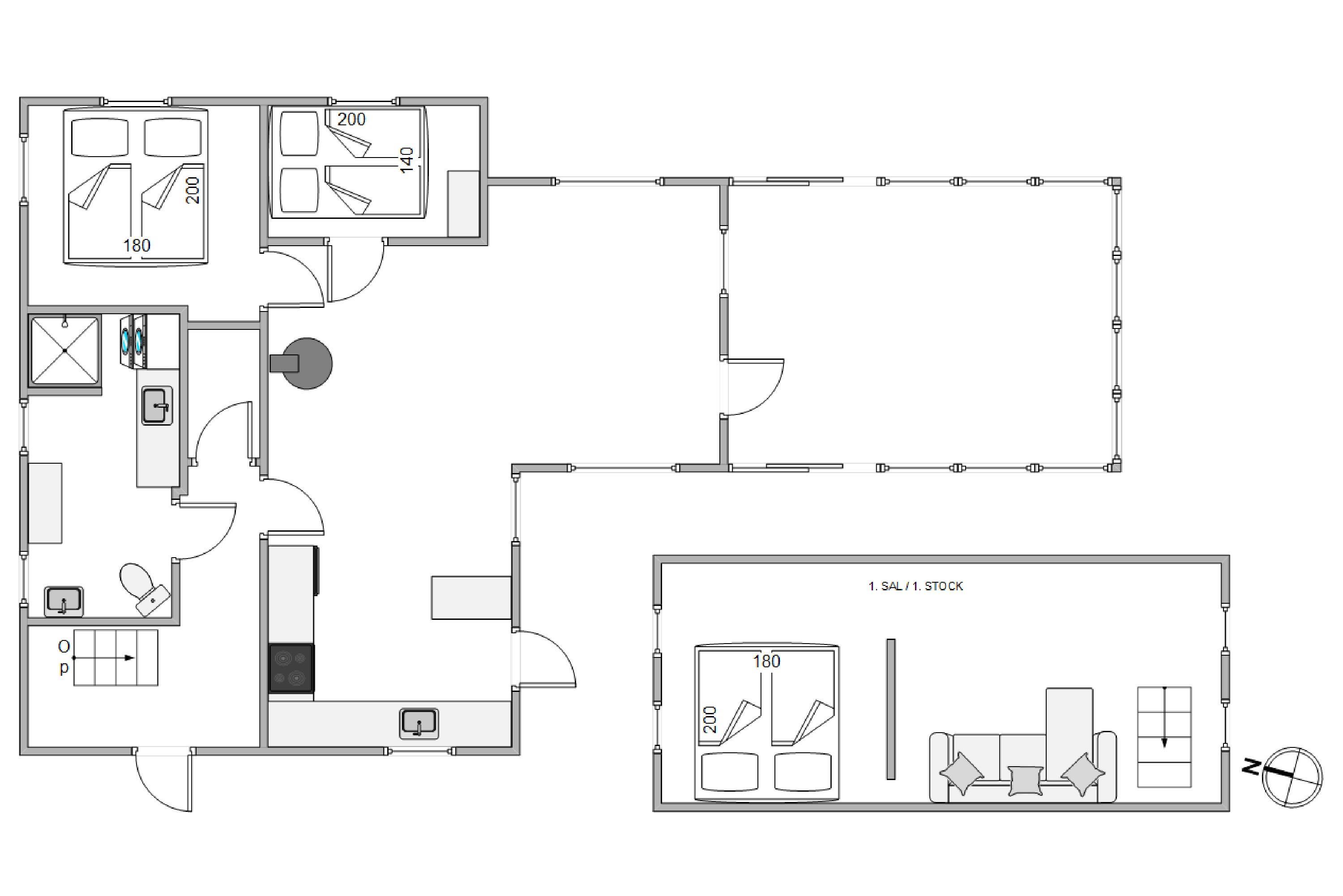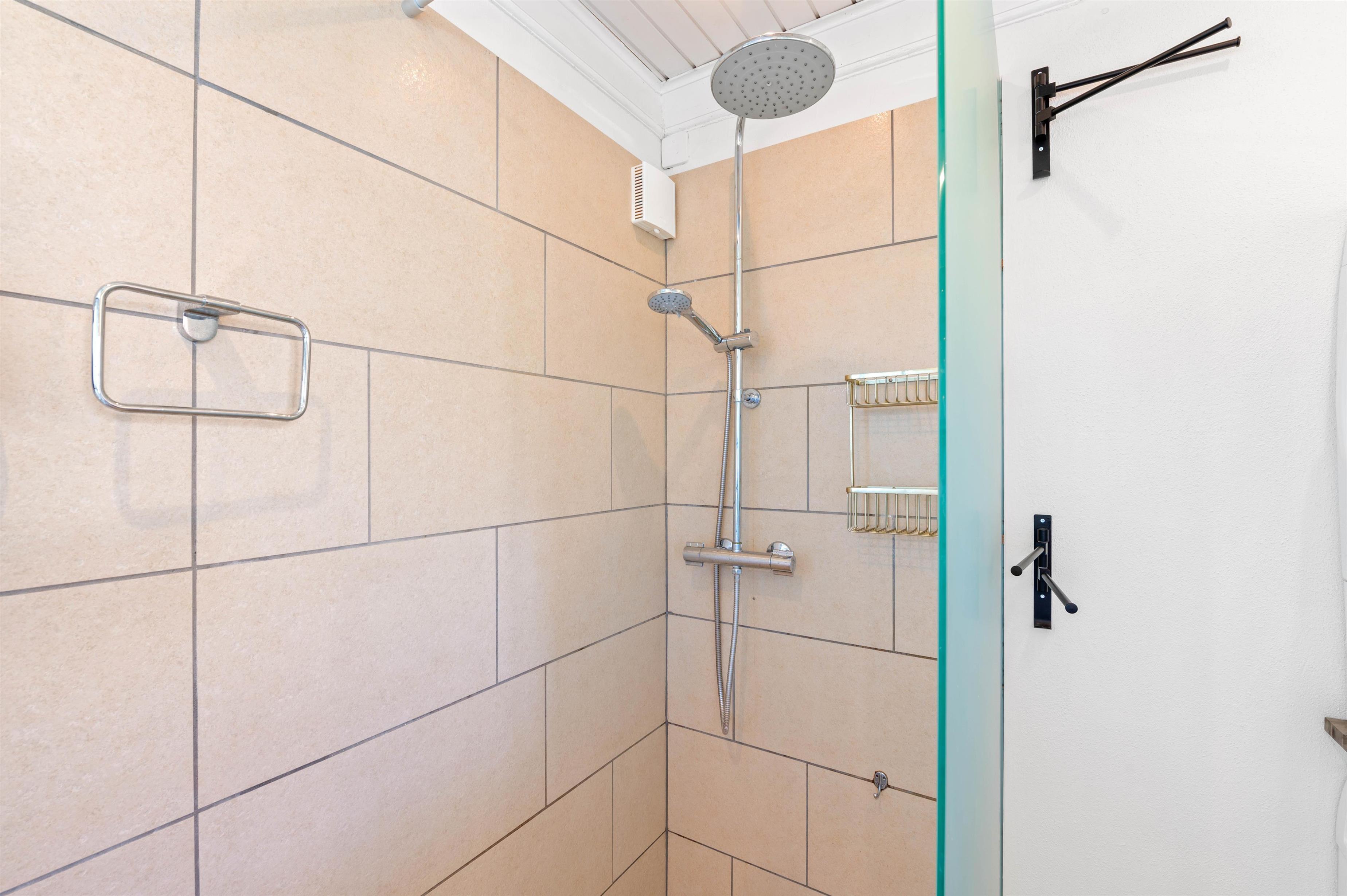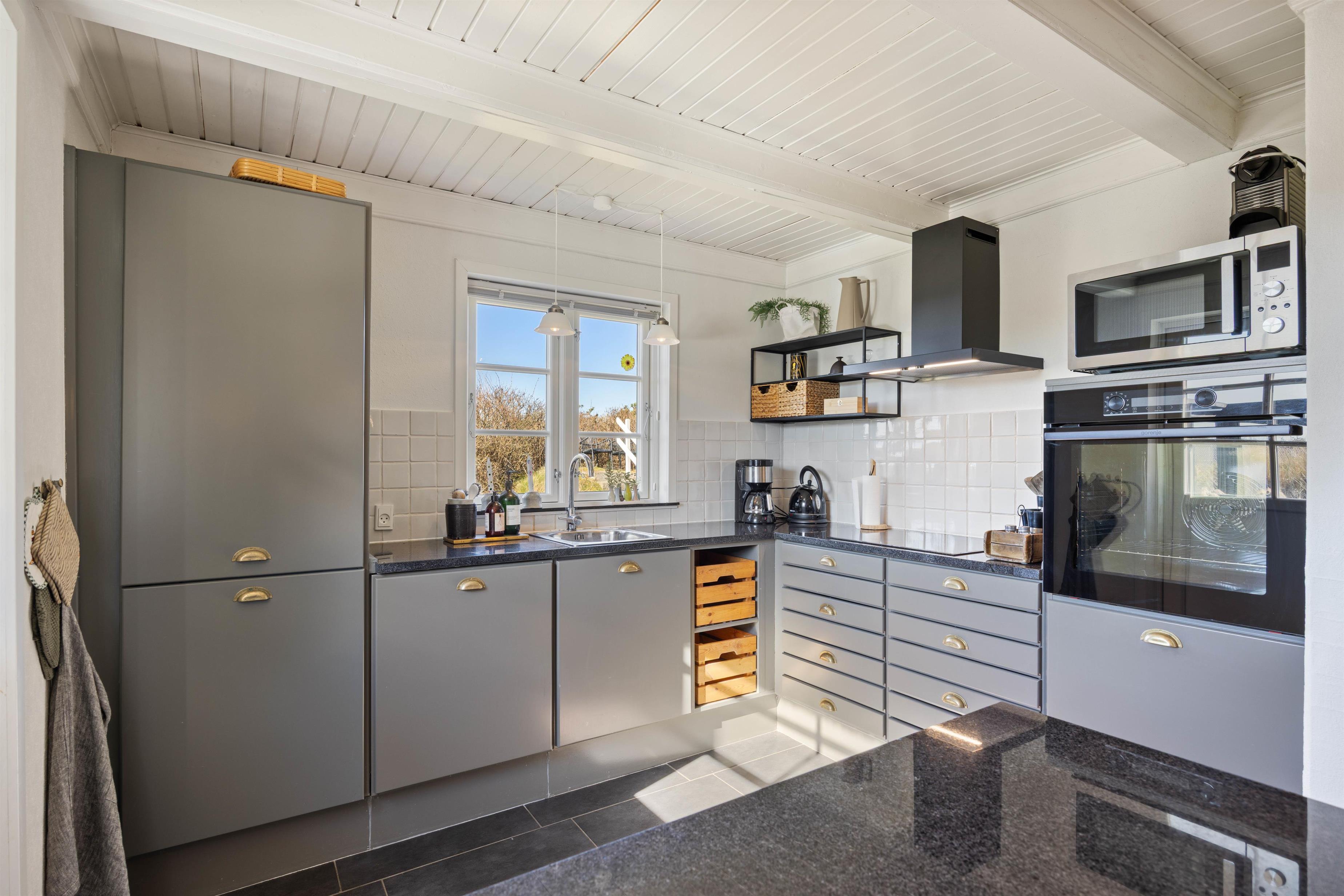 Køkkenet er moderne og velindrettet og der er også ekstra køle- og fryseplads i skuret. Køkkenet har naturligvis også med opvaskemaskine, så I straks efter maden kan hygge sammen foran det store fladskærms-tv. Dejligt er det, især i den koldere årstid, at der er gulvvarme i husets store lyse badeværelse. Sommerhuset har 2 soverum samt en stor åben hems med 2 ekstra sovepladser.