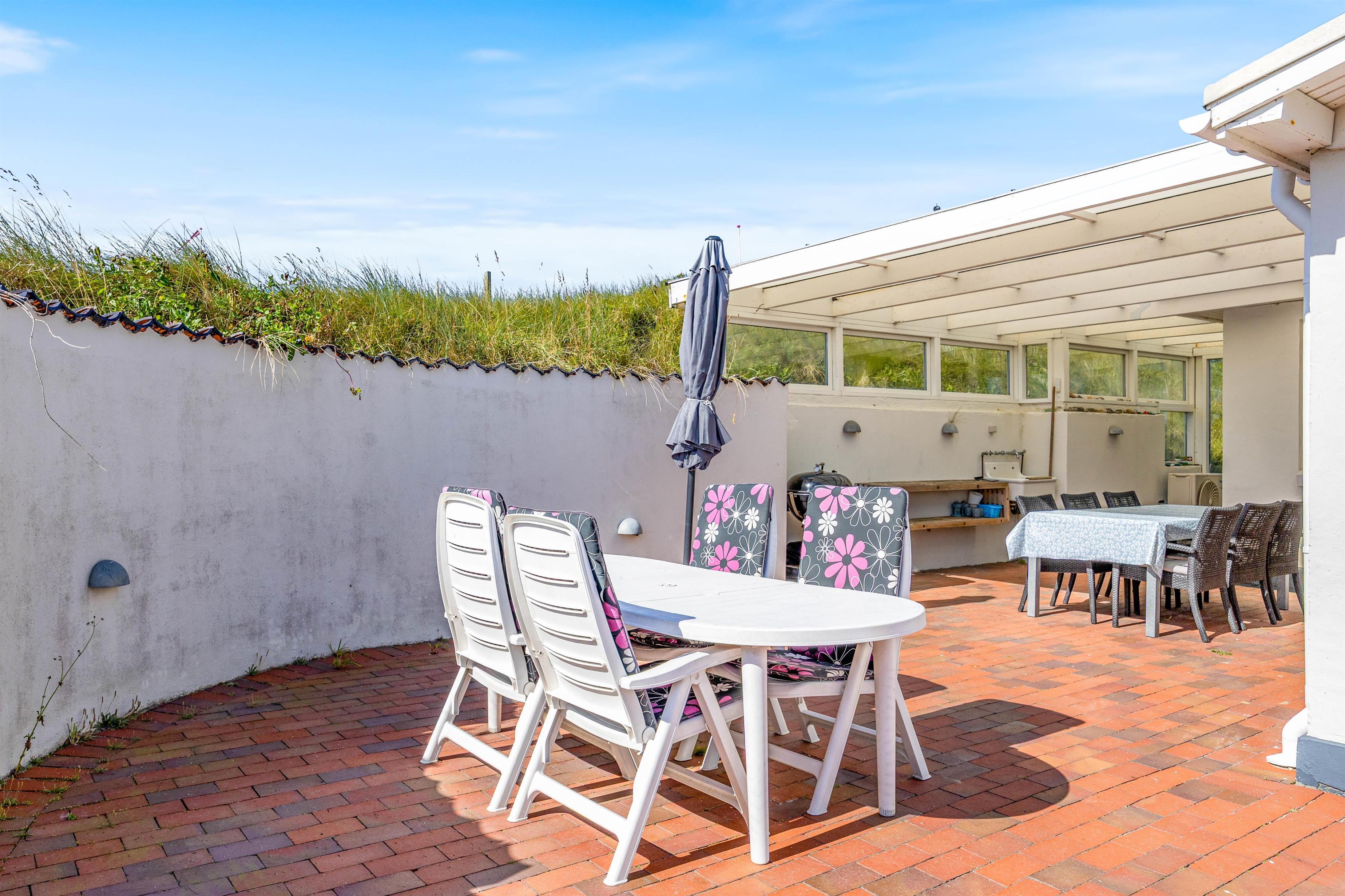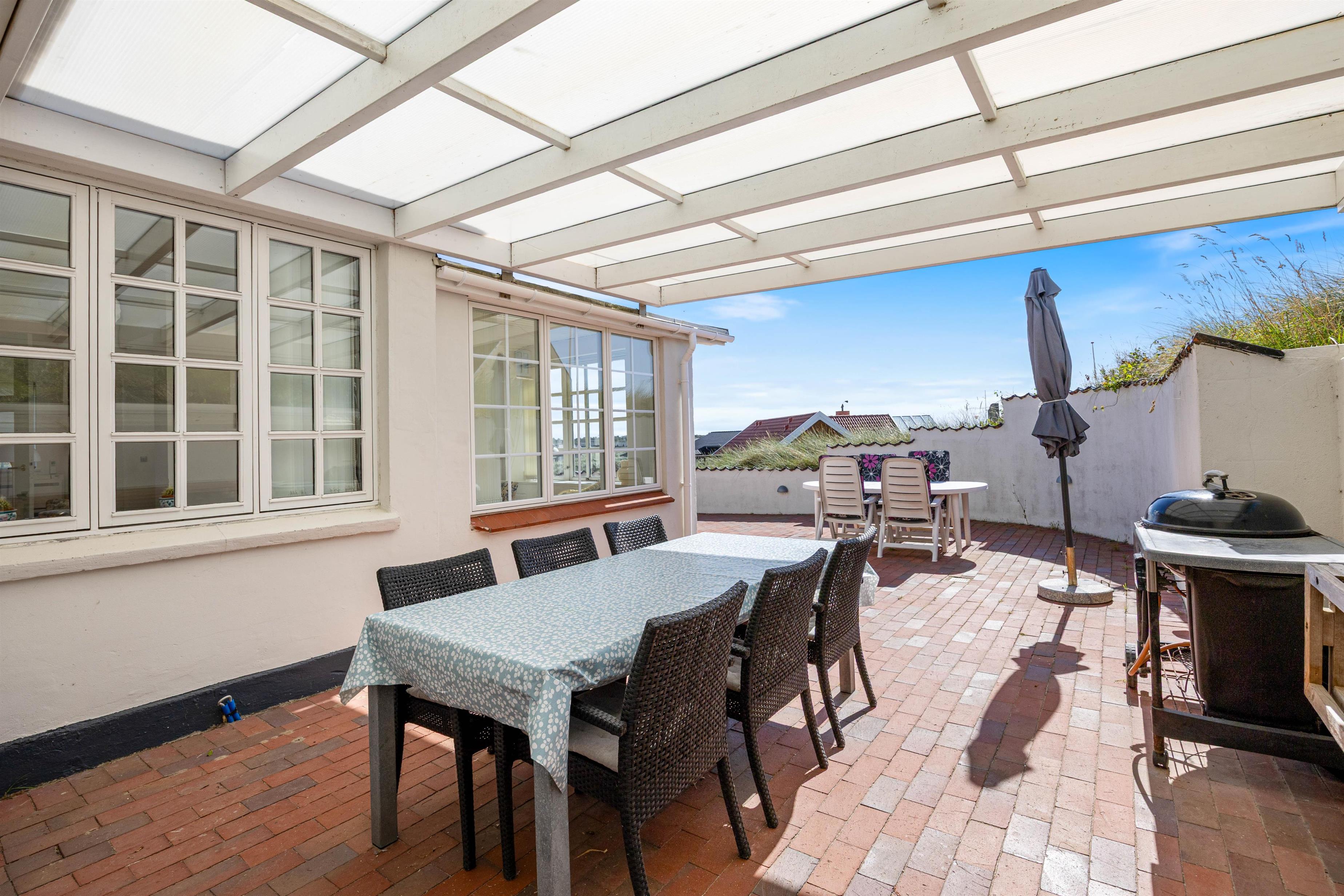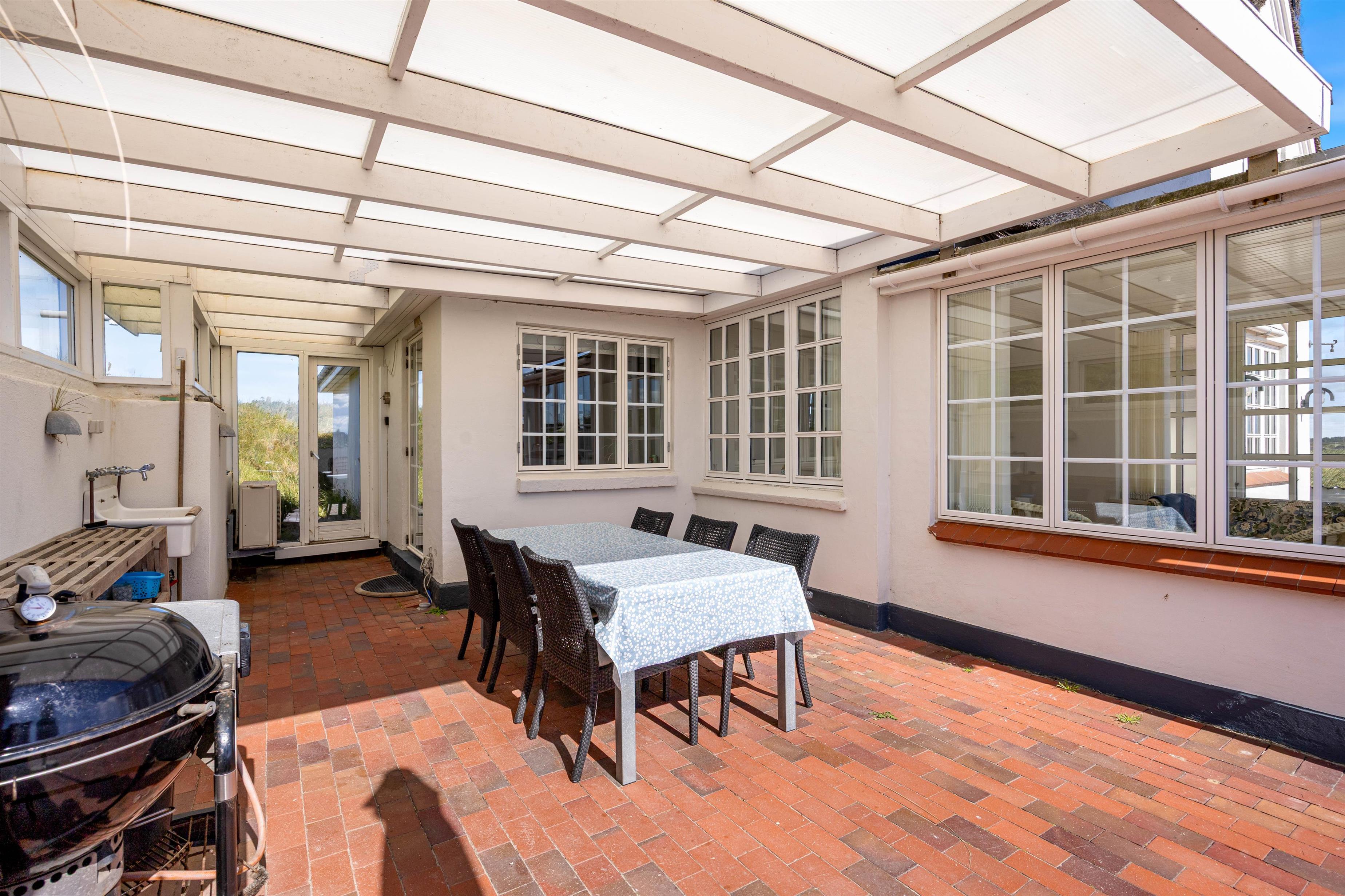 På terrassen kan I læne jer tilbage i havemøblerne på de varme solskinsdage, og under den overdækkede del af terrassen har I både skygge, når det bliver for varmt, og læ, når vestenvinden rigtig tager fat.