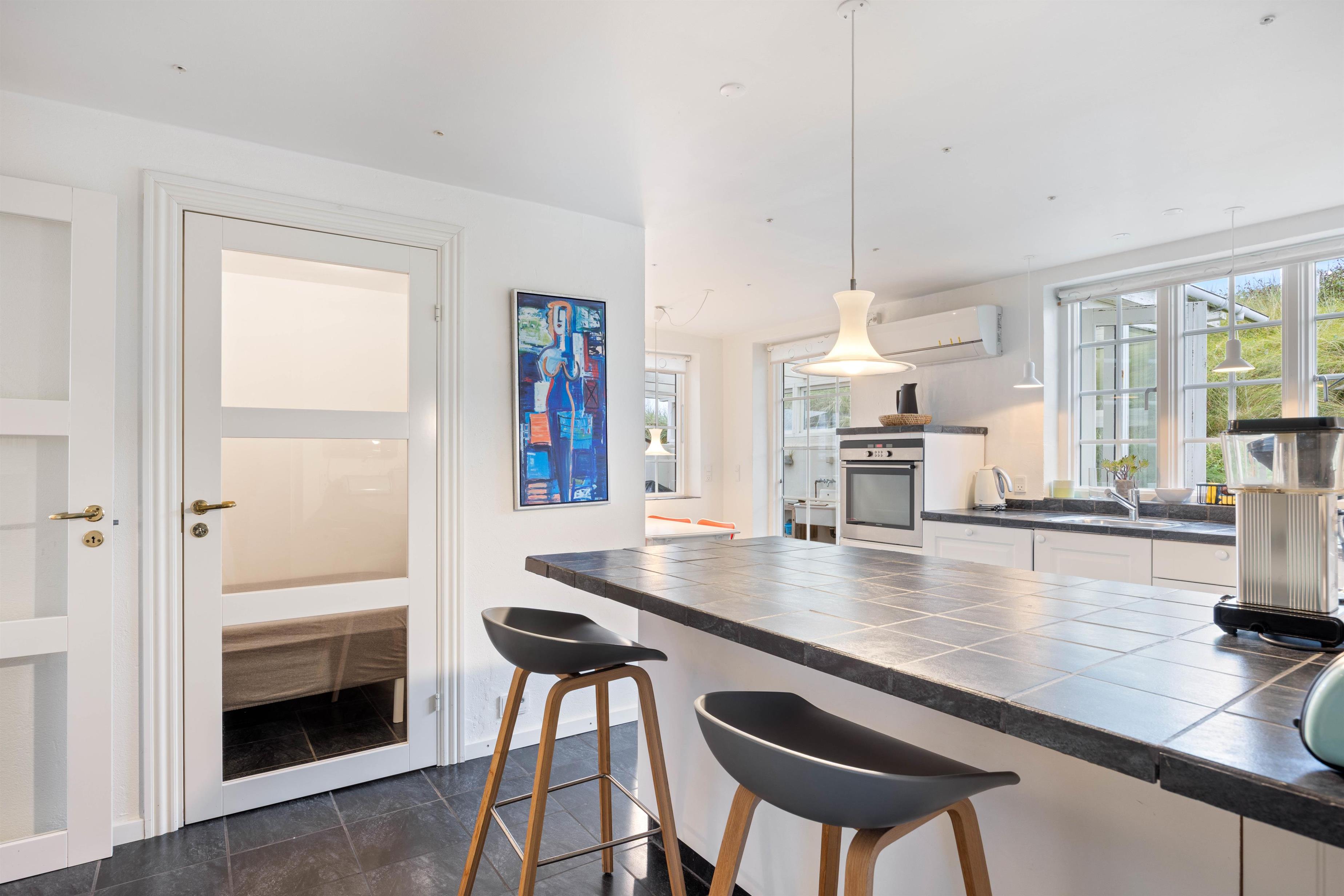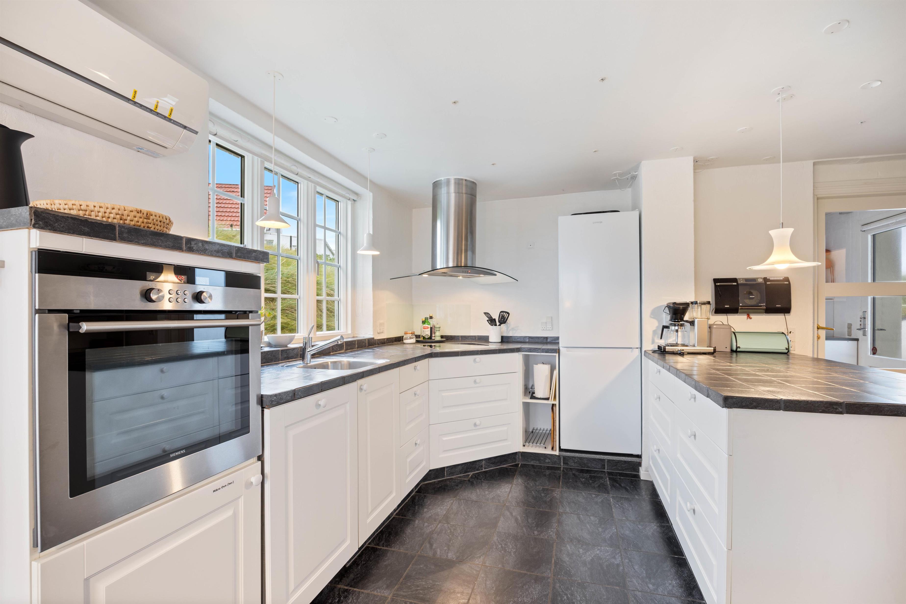 Den hjemlige og personlige indretning sætter rammerne for en stille og rolig ferie med mulighed for at slappe af og få et afbræk fra den travle hverdag, og i de små hyggekroge og sofaafdelingen kan I læne jer tilbage og nyde fridagene med en nybrygget kop kaffe. Derudover inviterer det lyse og skønne køkken på hygge og madlavning imens andre står for planlægningen af resten af ugens feriedage.