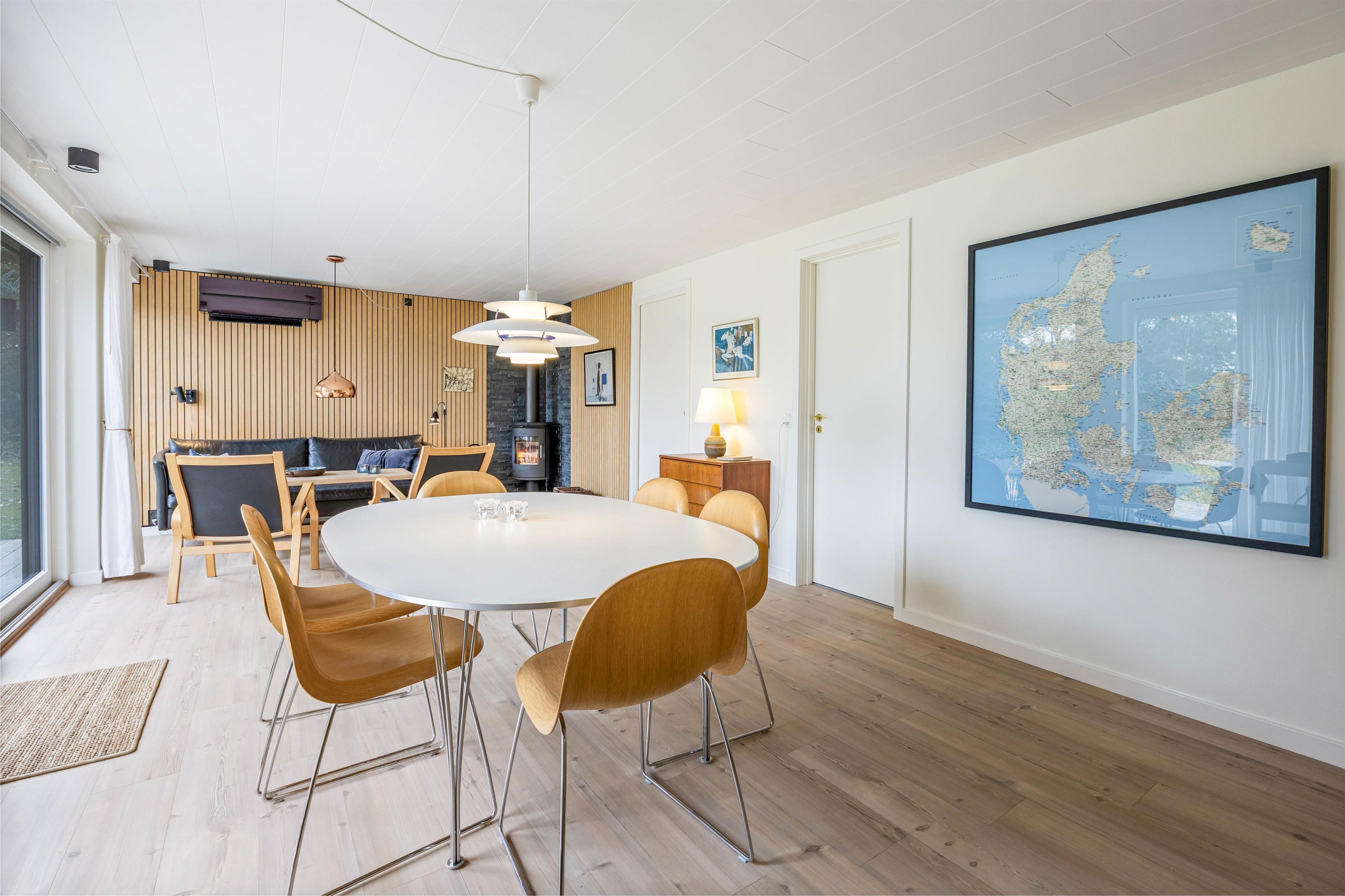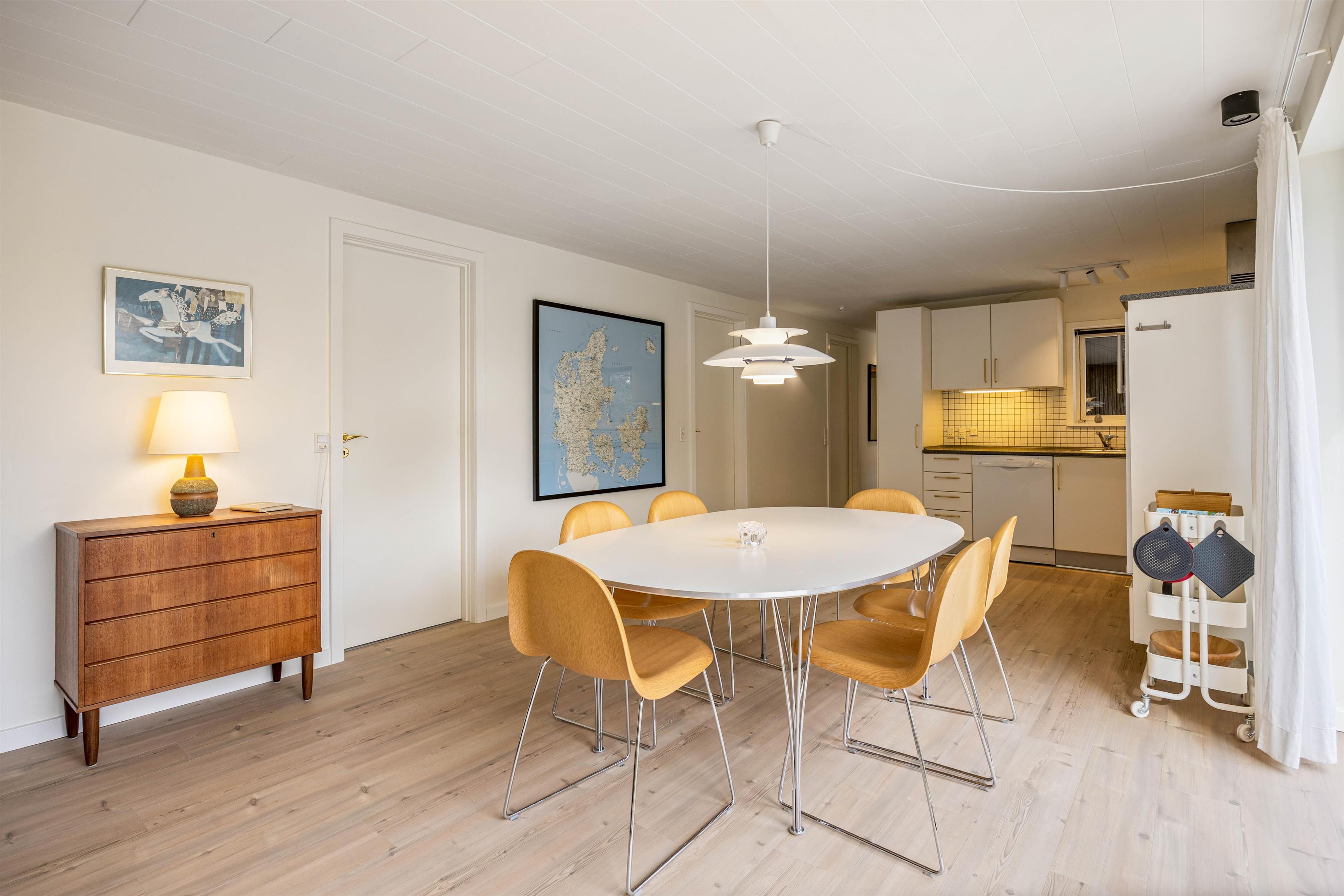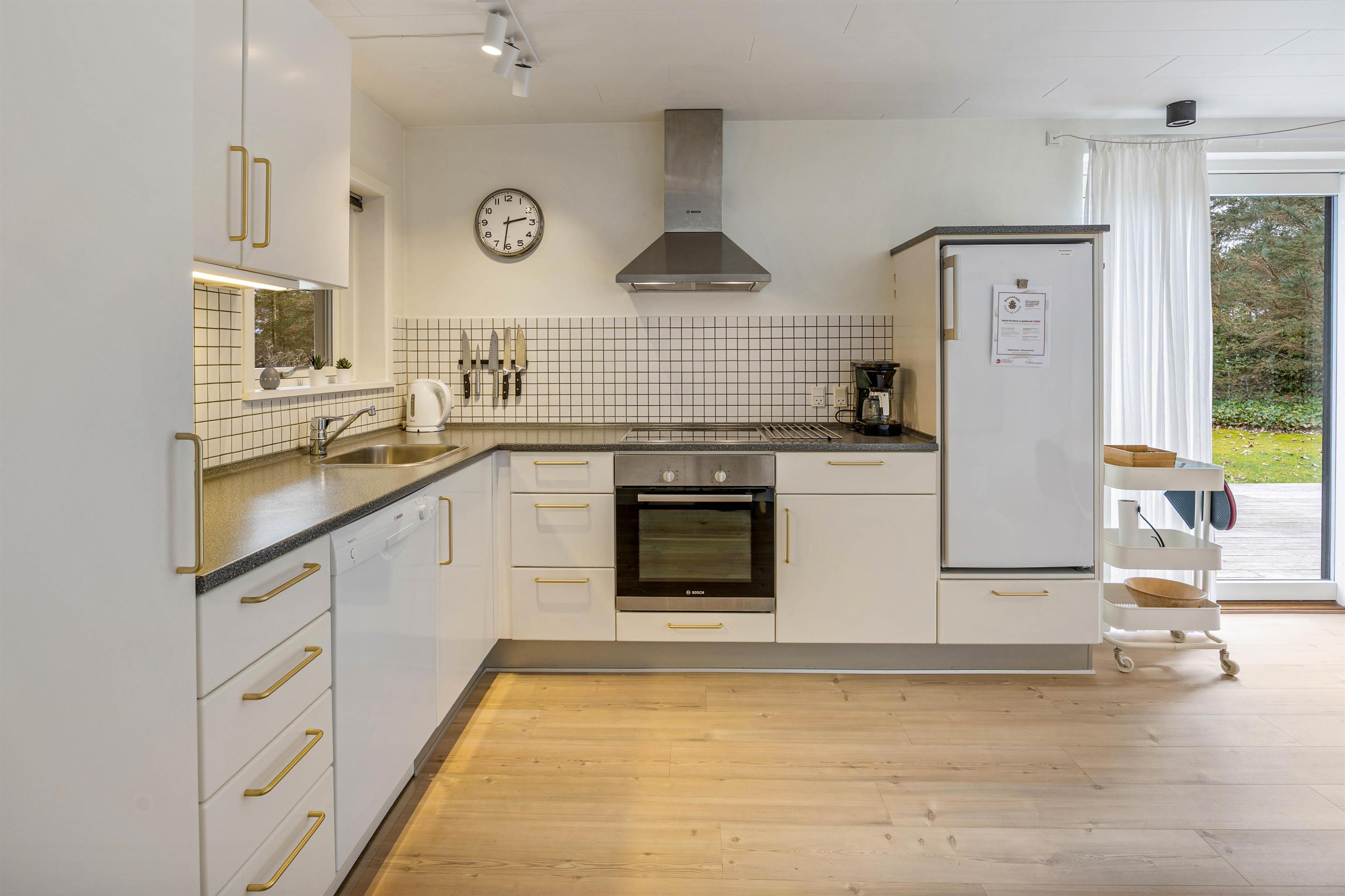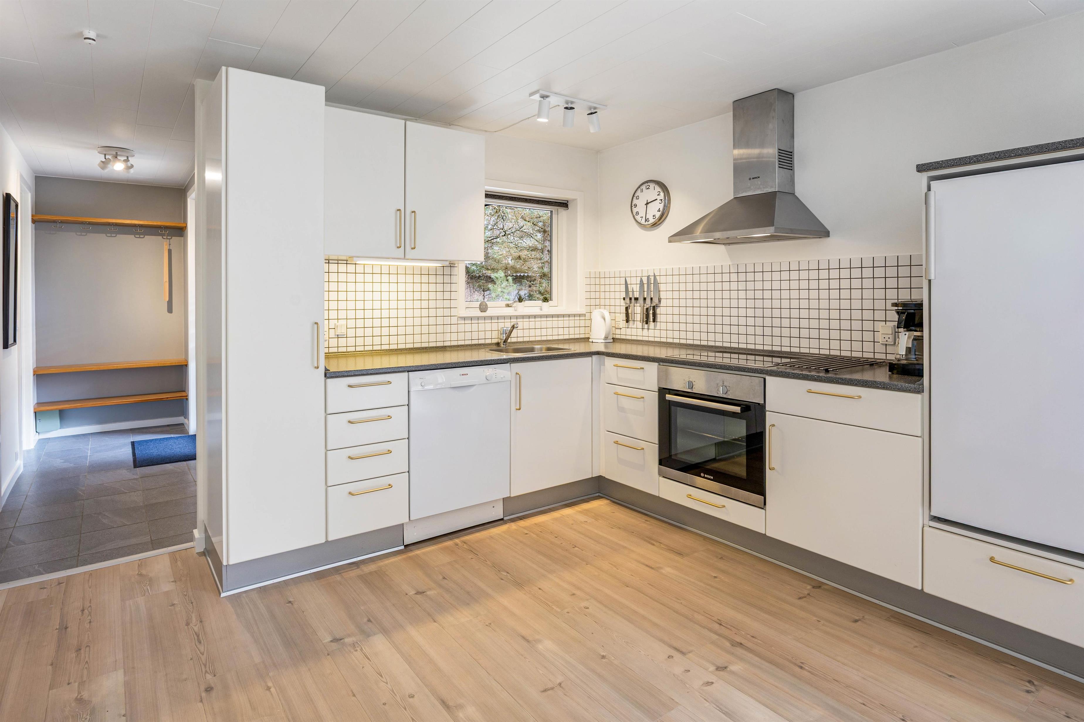 Husets hjerte er det åbne køkkenalrum og stuen, som lægger op til samvær og hyggelige feriestunder med hele familien. Her er moderne med flotte akustikpaneler der indretningen et flot og moderne twist, der i sidste ende fuldendes af den simple men pæne møblering og indretning. Køkkenet er veludstyret med alt, hvad feriekokken har brug for samt en opvaskemaskine, og derudover har huset både en vaskemaskine og en tørretumbler.