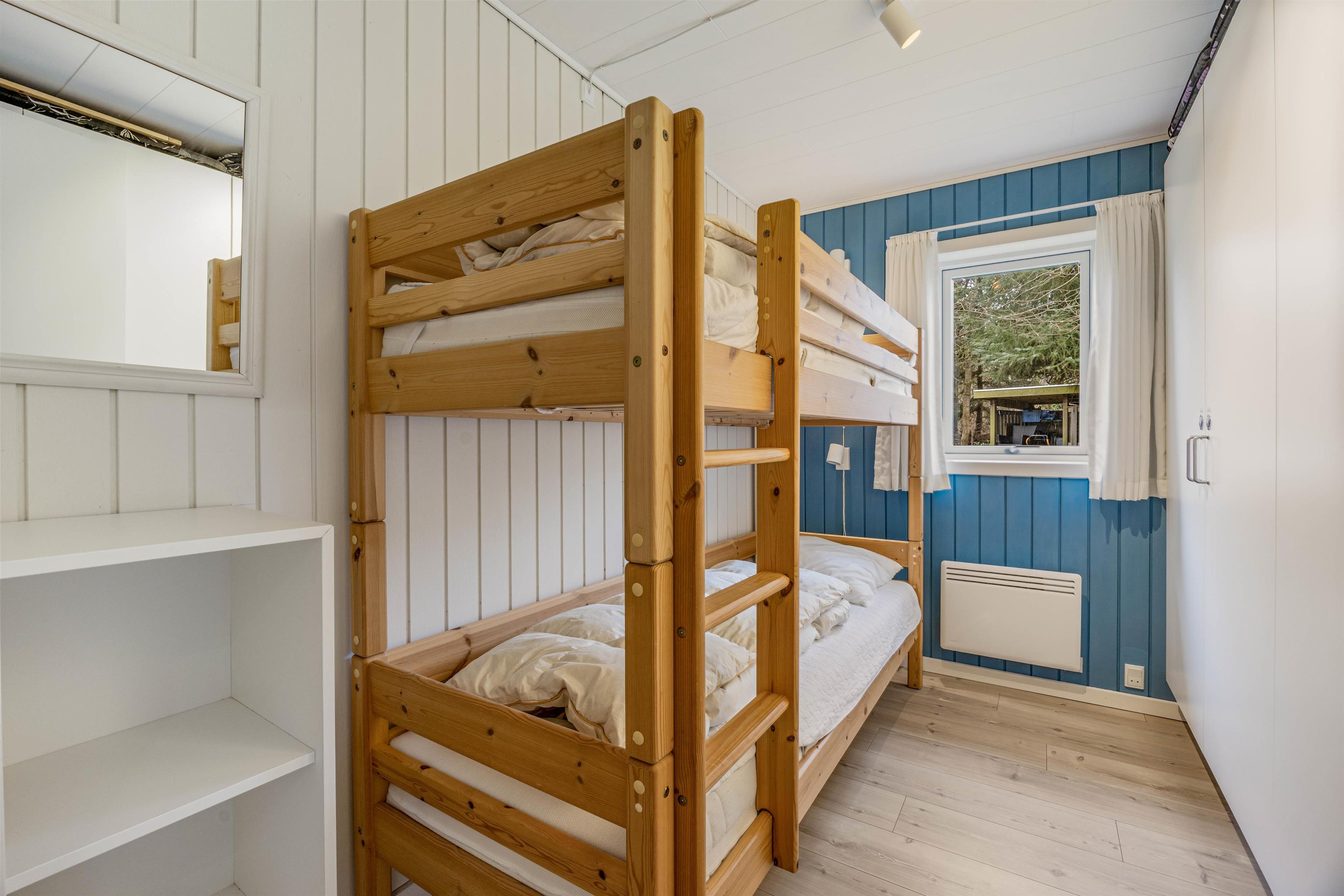 Det skønne feriehus på Plantagevej 4 kan rumme op til seks personer. Sommerhuset har i 2018 gennemgået en renovering, og det ses tydeligt på den moderne og stilfulde indretning med flotte detaljer, lækkert SMART-TV med danske, norske, svenske og tyske kanale. Feriehuset der i alt strækker sig over 91 kvadratmeter, er det helt oplagte feriehus for familien. Her finder I et enkelt værelse med dobbeltseng, et værelse med to enkeltsenge og til sidst et værelse med en køjeseng. Småbørn ville elske at hygge sig i køjesengen, hvor de kan bygge huler og rigtig hygge sig.