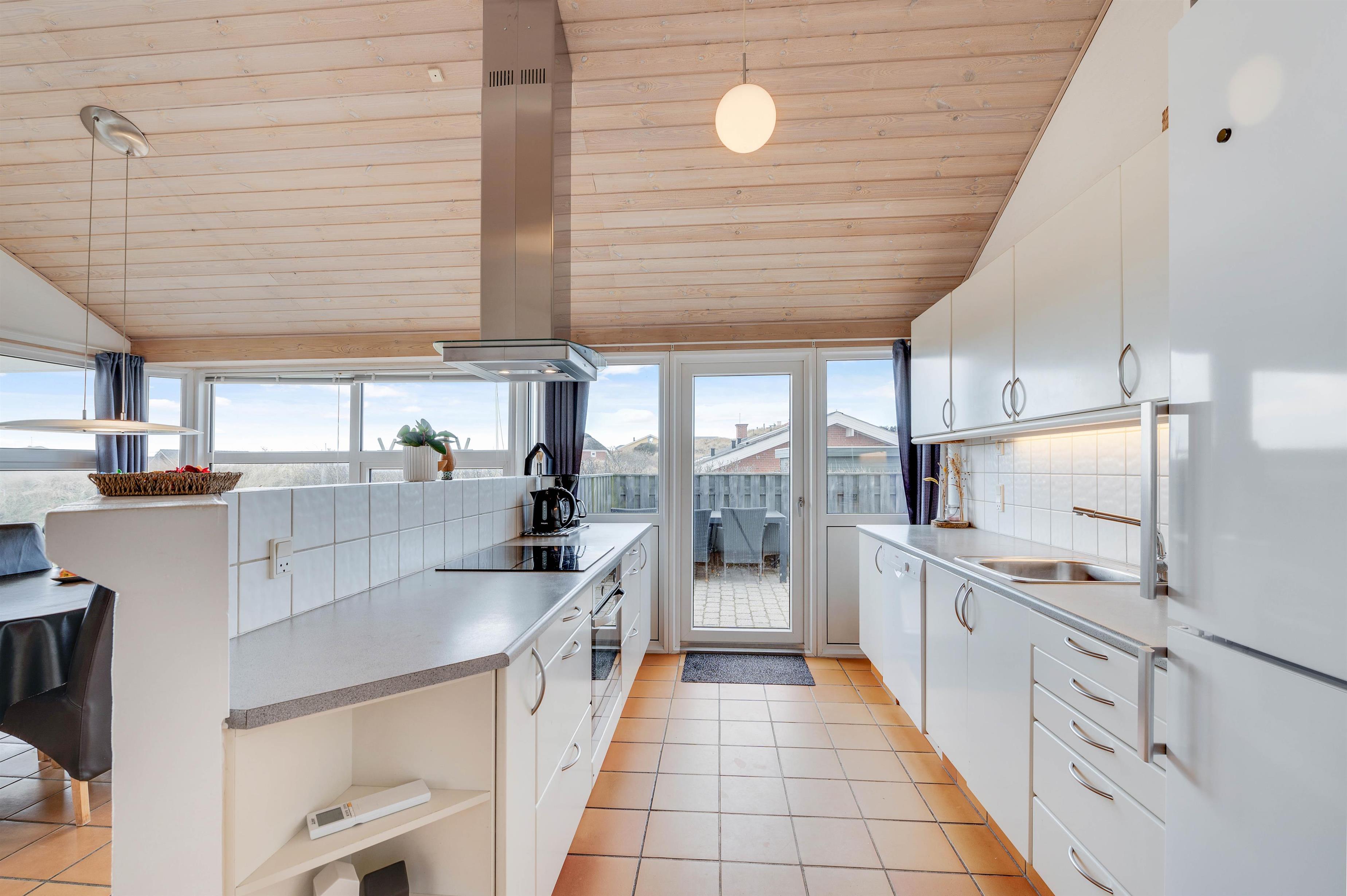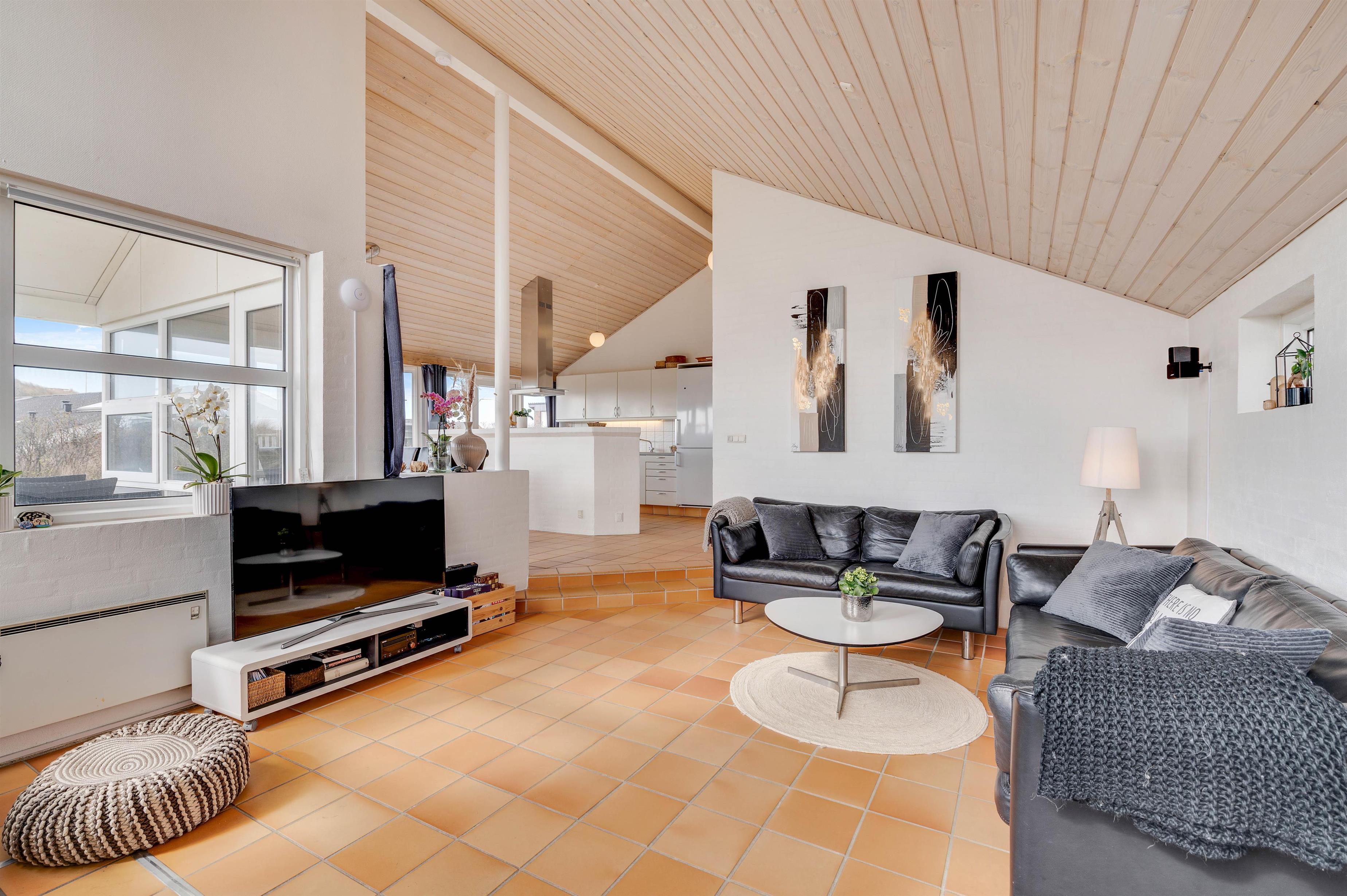 Feriehuset ligger på Holdvej 36 nord for Søndervig i et flot, kuperet terræn og bare 400 meter fra Vesterhavet og en rigtig god badestrand. Det brusende vesterhav er uanset vejret altid et besøg værd. I kan spise frokost på terrassen og sidde ude til sent om aftenen med tæpper omkring jer og bare nyde solen, der langsomt går ned over horisonten. Det er indbegrebet af dansk sommerhusferie.