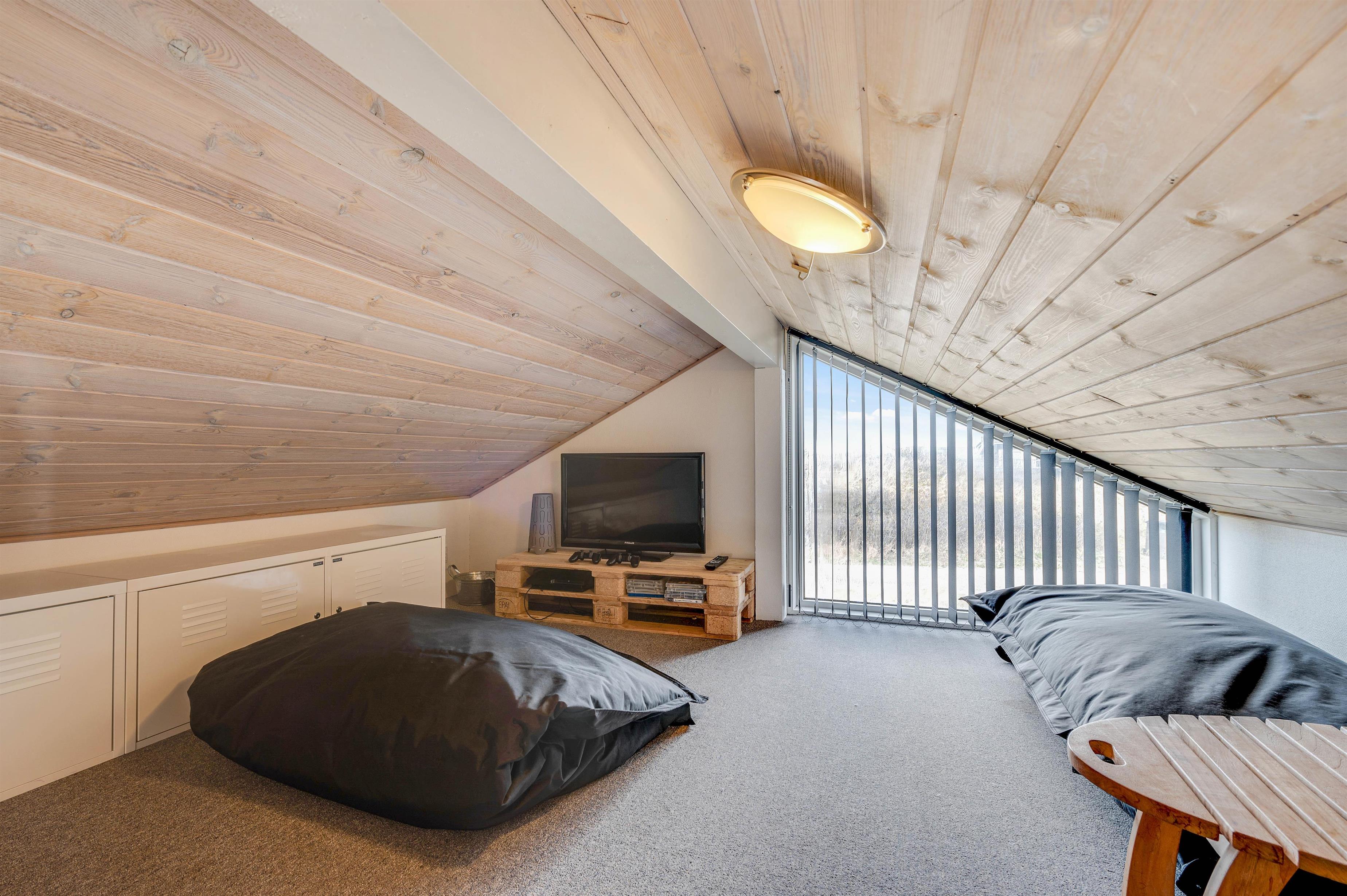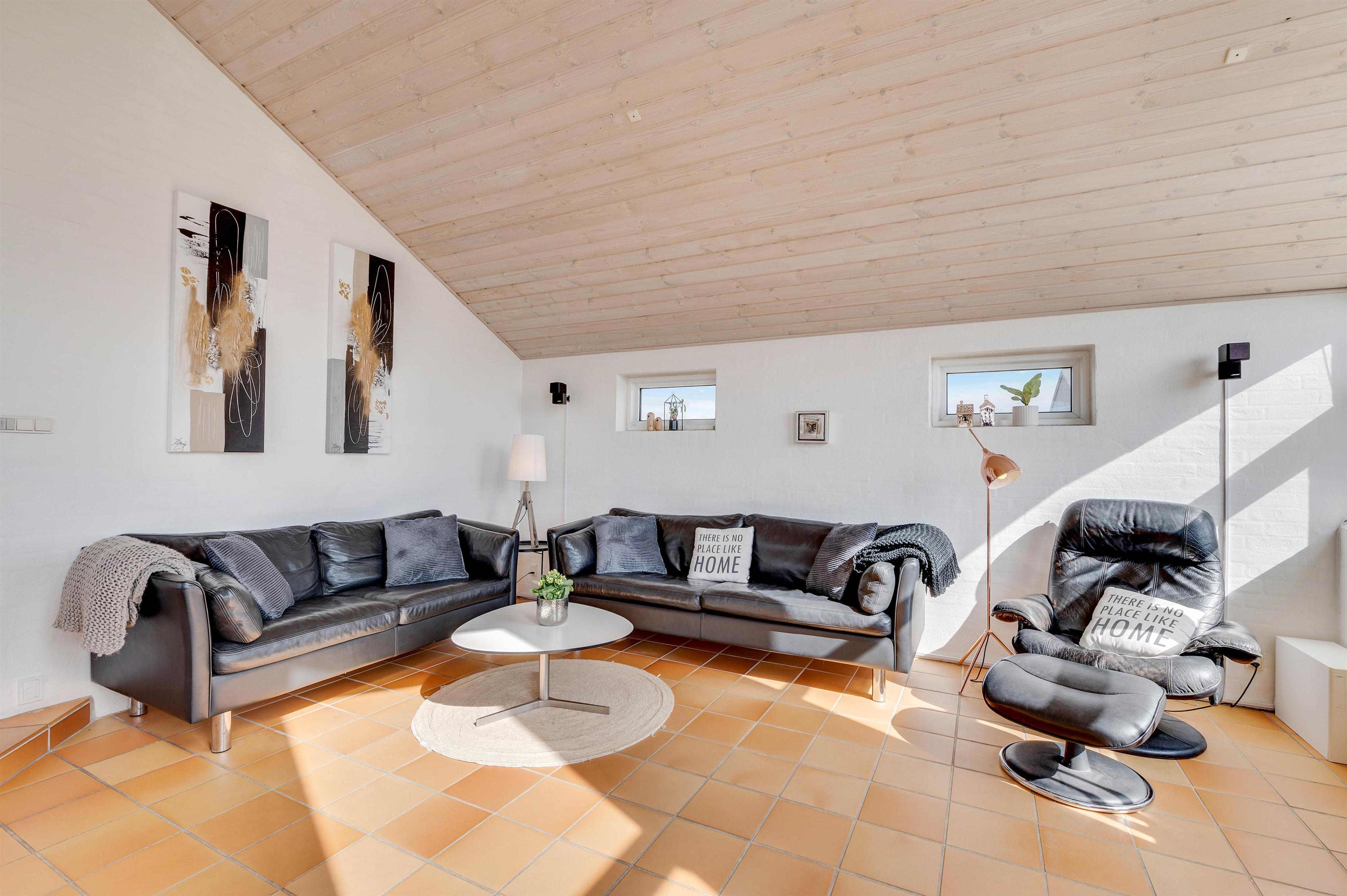 I alt består feriehuset af 122 m2 hvoraf 7 af de 122 m2 er en hems. Hemsen er helt perfekt for børnene og barnlihe sjæle, eftersom det er indrettet med 2 sækkestole, et 32" TV, Blue - Ray og DVD afspiller, Playstation 3, kasse med LEGO, bord med læselampe og en masse brætspil.
