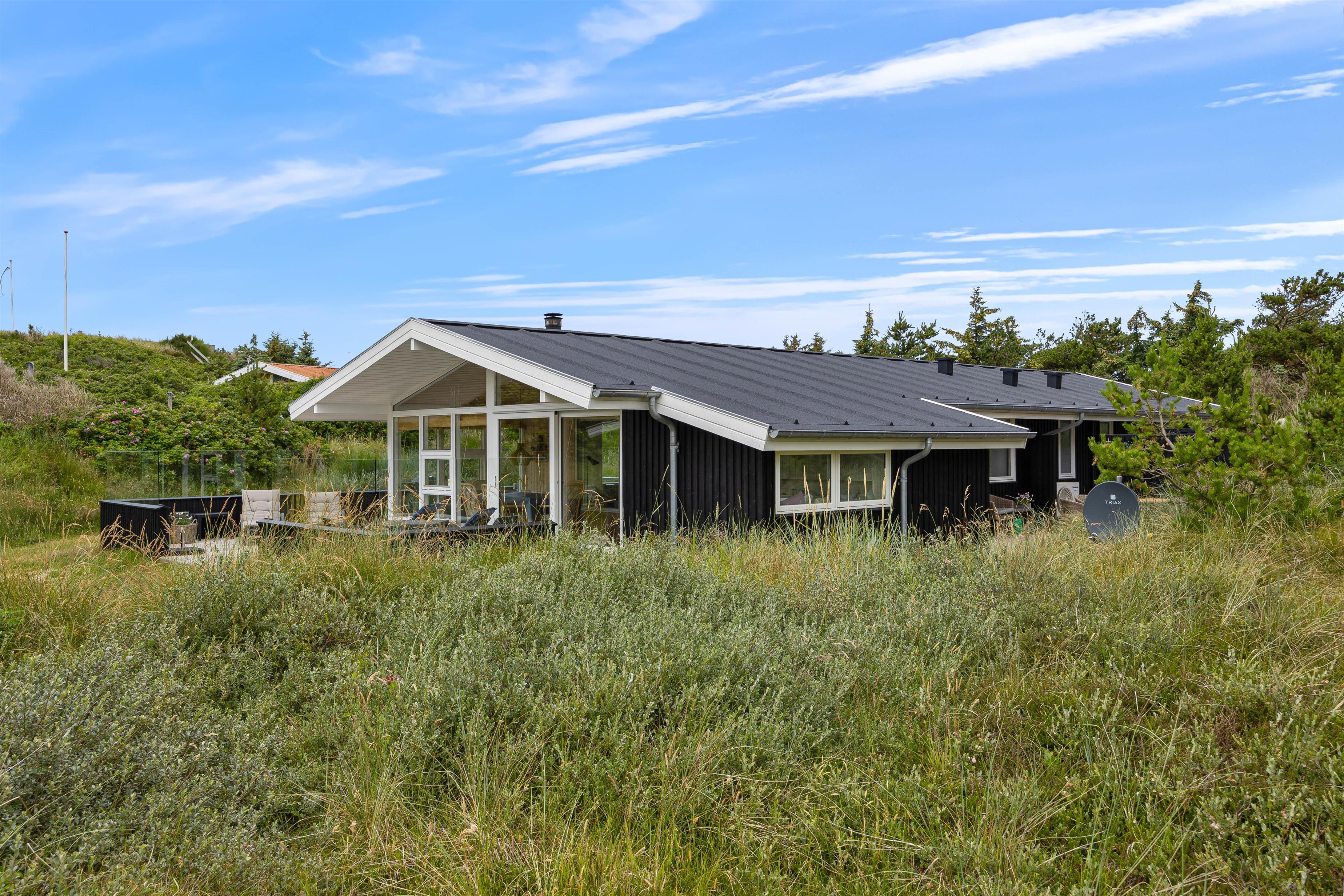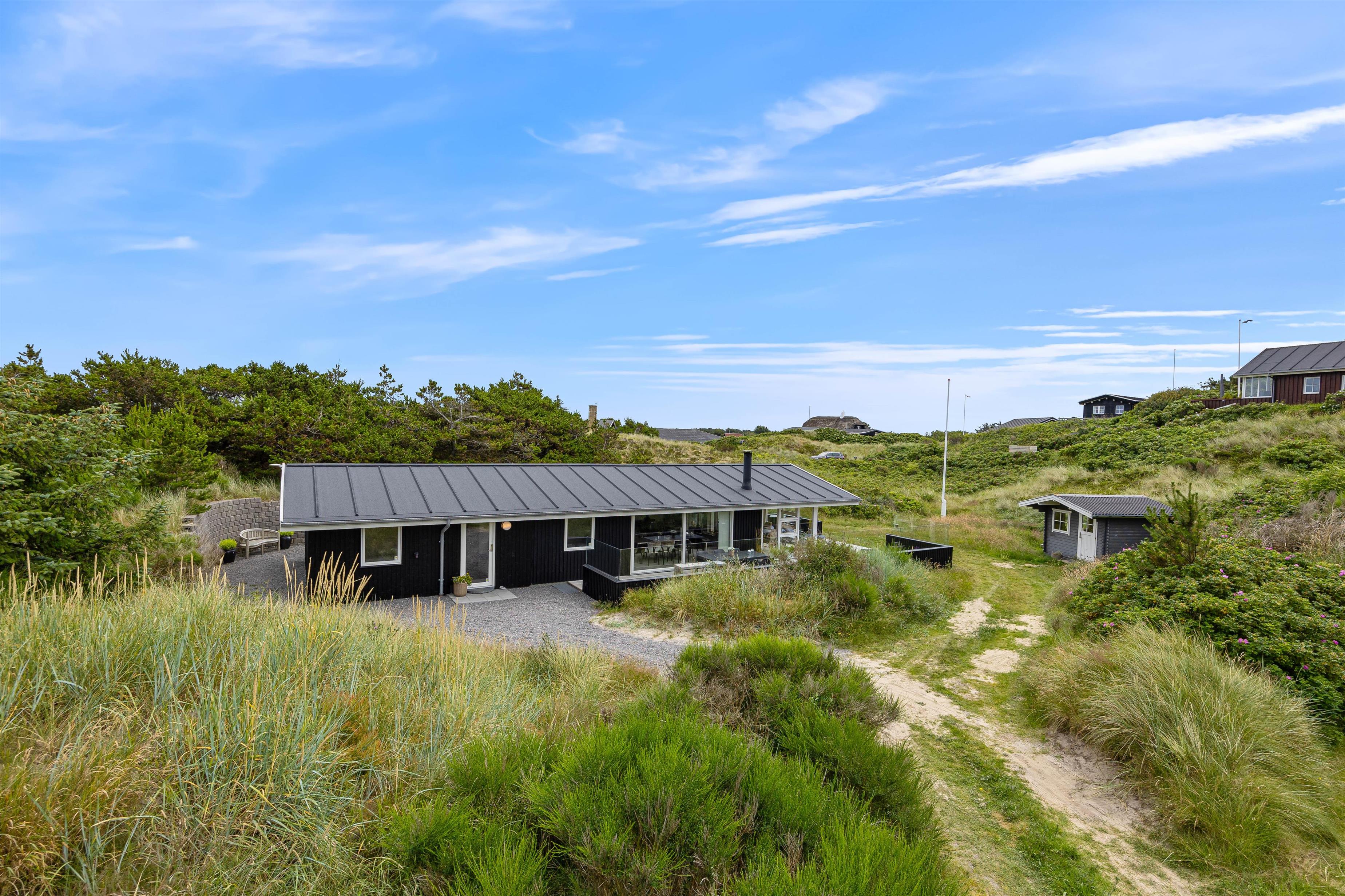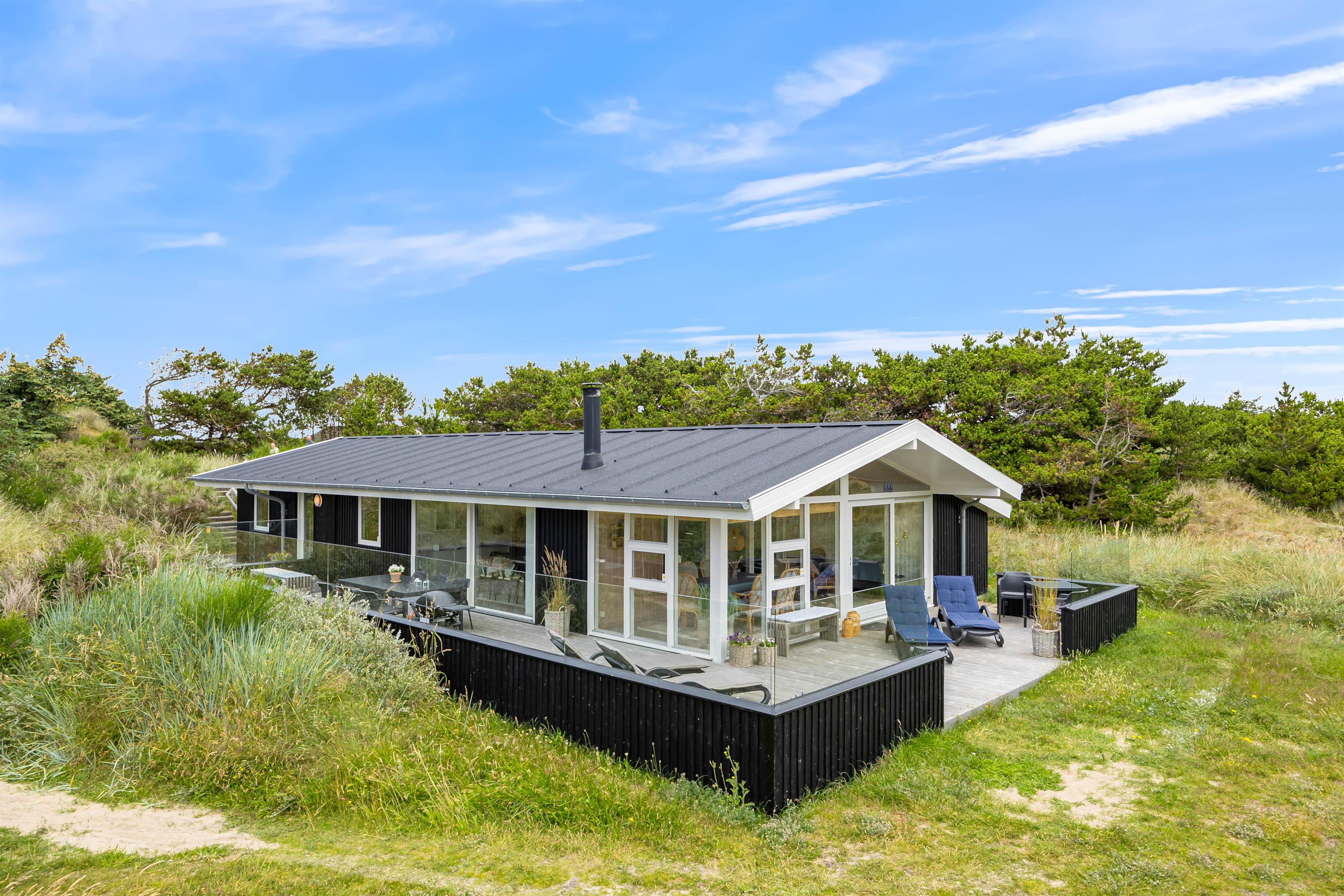 Leder I efter et dejligt, stilfuldt sommerhus få minutters gang fra stranden? Så er I landet det helt rigtige sted. Dette charmerende feriehus på Harbo Stages Vej 31 ligger kun 300 meter fra havet og er omgivet af Søndervigs smukke klitlandskab. Ferieboligen har med sin lyse indretning med bl.a. moderne køkken, hyggelig brændeovn, udestue og med den skønne beliggenhed fortjent sine fire stjerner. Der er tilladt op til seks personer og et husdyr. * Rejser I med elbil, har i mulighed for lade direkte ved sommerhuset. I skal blot huske at medbringe eget ladekabel.