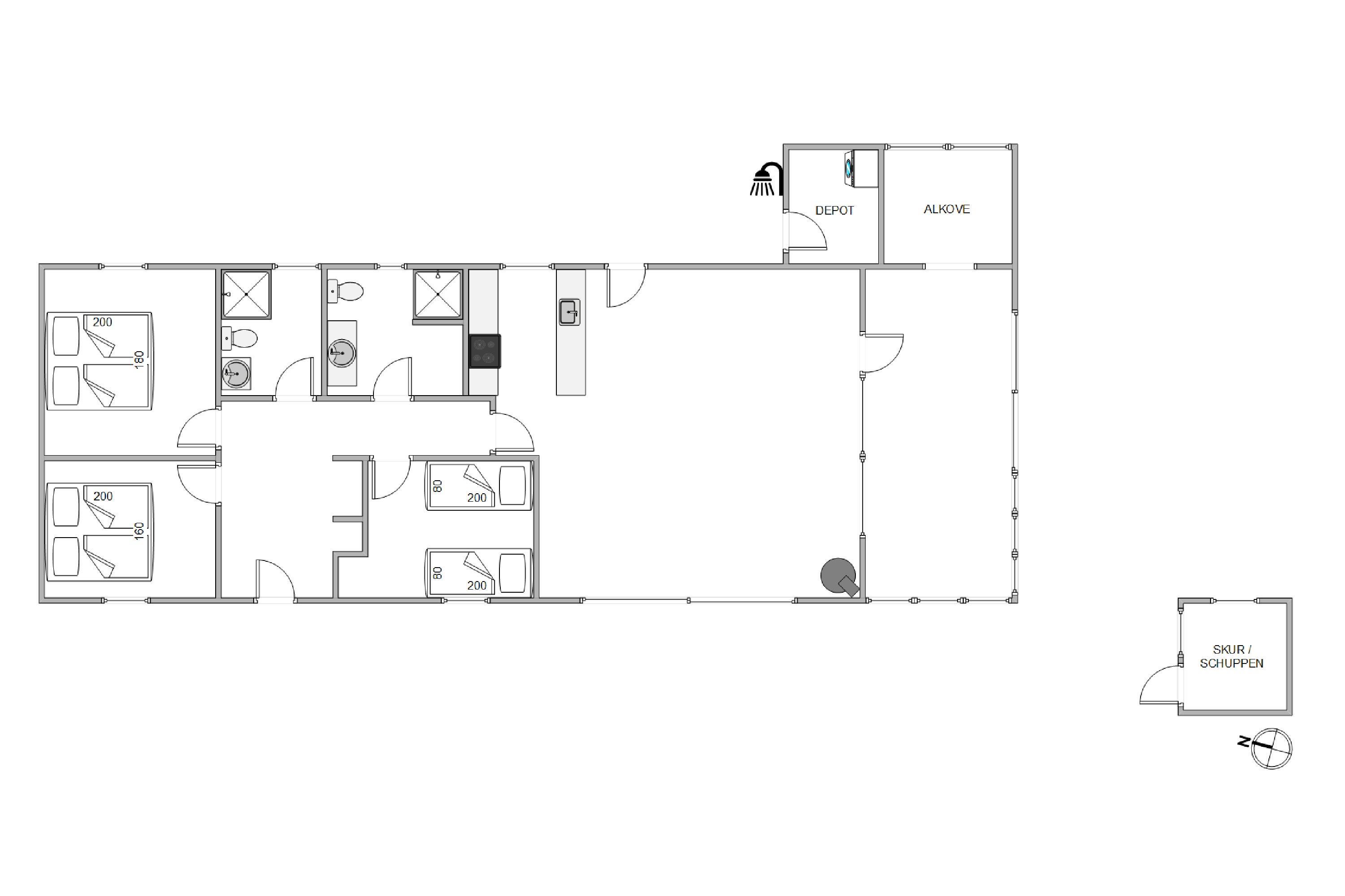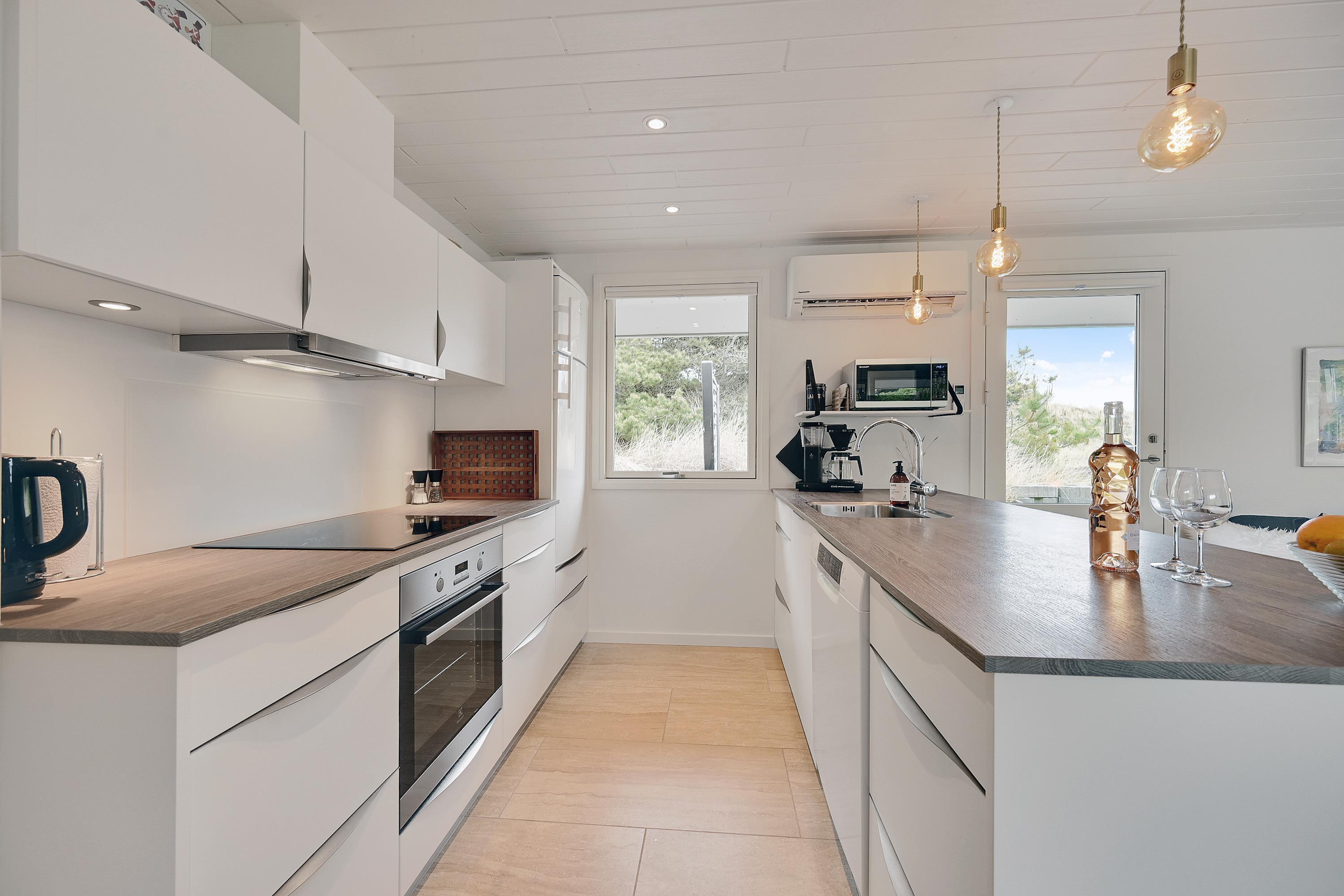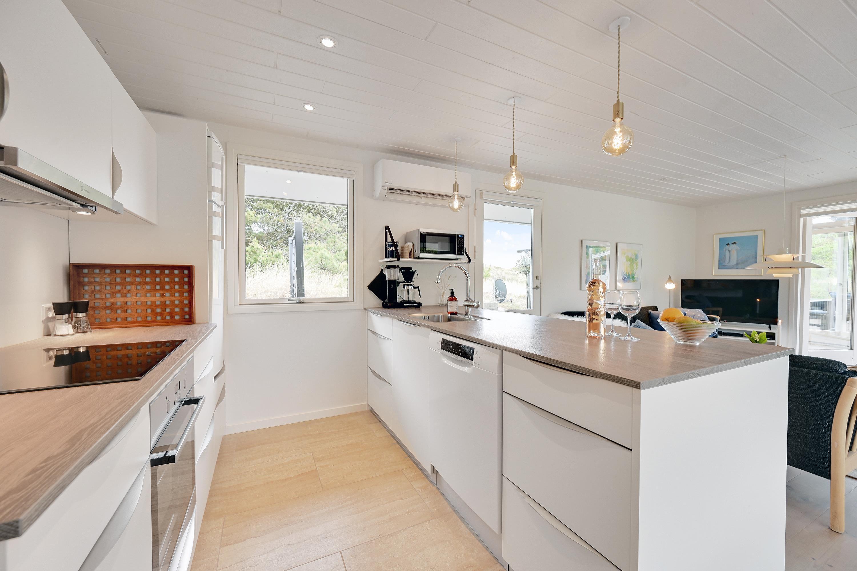 Sommerhuset blev renoveret i 2024 og det flotte køkken indeholder alt, hvad feriekokken har brug for. I kan med fordel benytte jer af opvaskemaskinen, der kan klare opvasken for jer. Køkkenet ligger i åben forbindelse med stuen og spiseafdelingen, og det giver masser af mulighed for at være sammen og nyde det gode selskab imens der kokkereres.