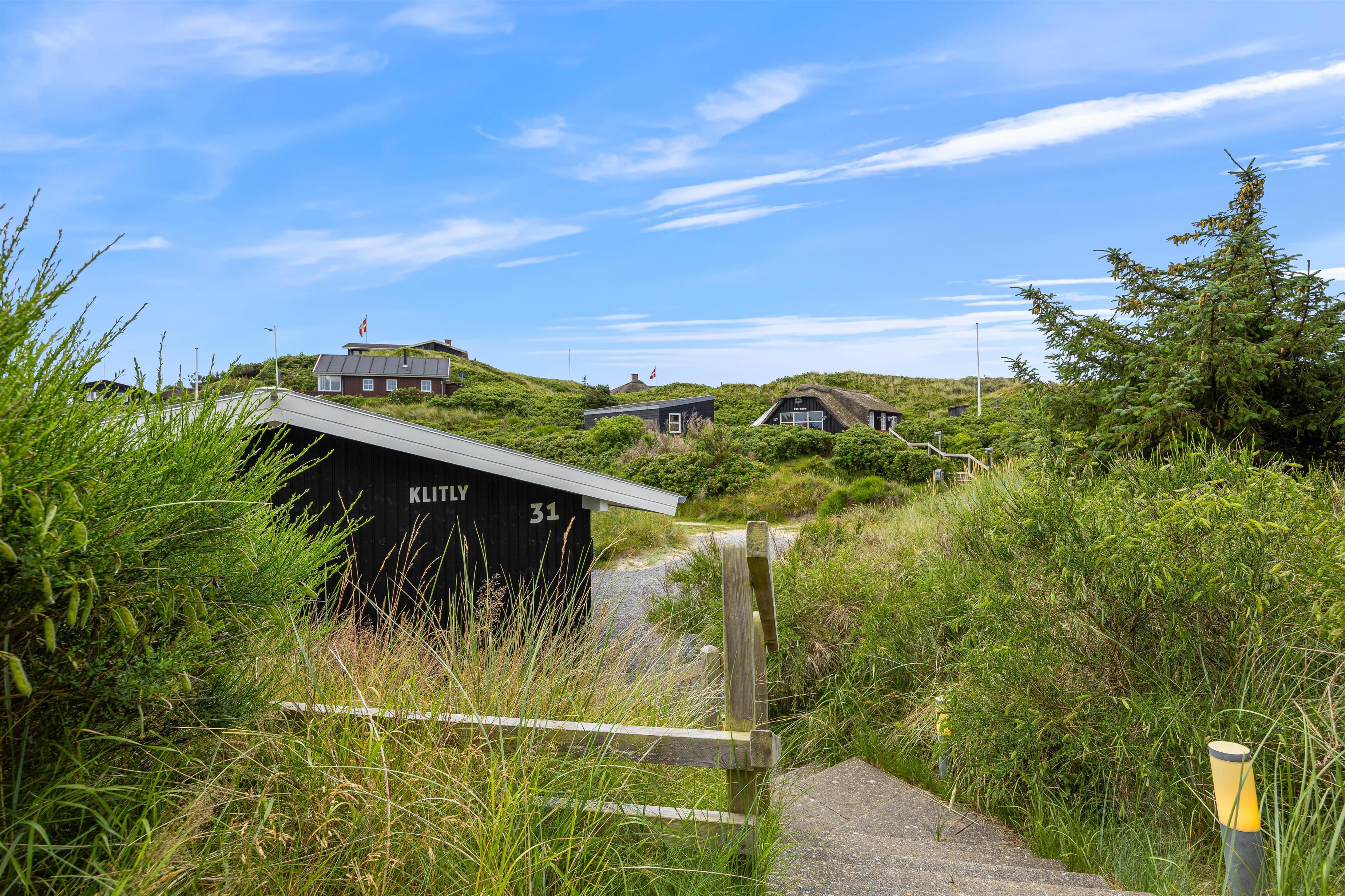 Beliggenheden fås ikke meget bedre end på Harbo Stages Vej 31. Sommerhuset er placeret på en flot naturgrund og er omgivet af lyngklædt klitlandskab hele vejen rundt. Kun 300 meter fra ferieadressen ligger det brusende Vesterhav, som hele året rundt er en fantastisk oplevelse – og både store, små og firbenede feriegæster vil helt sikkert elske en gåtur langs vandet!