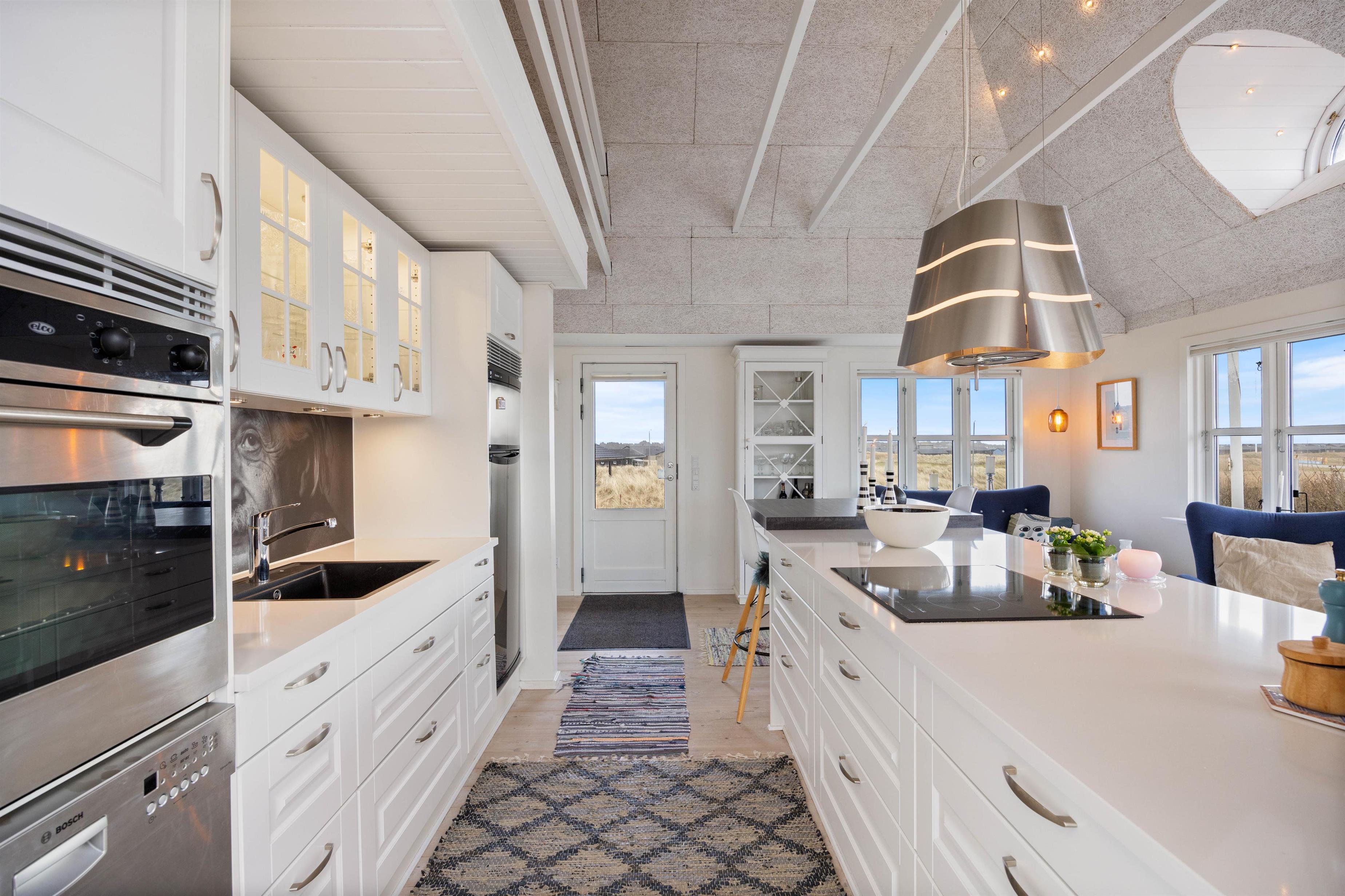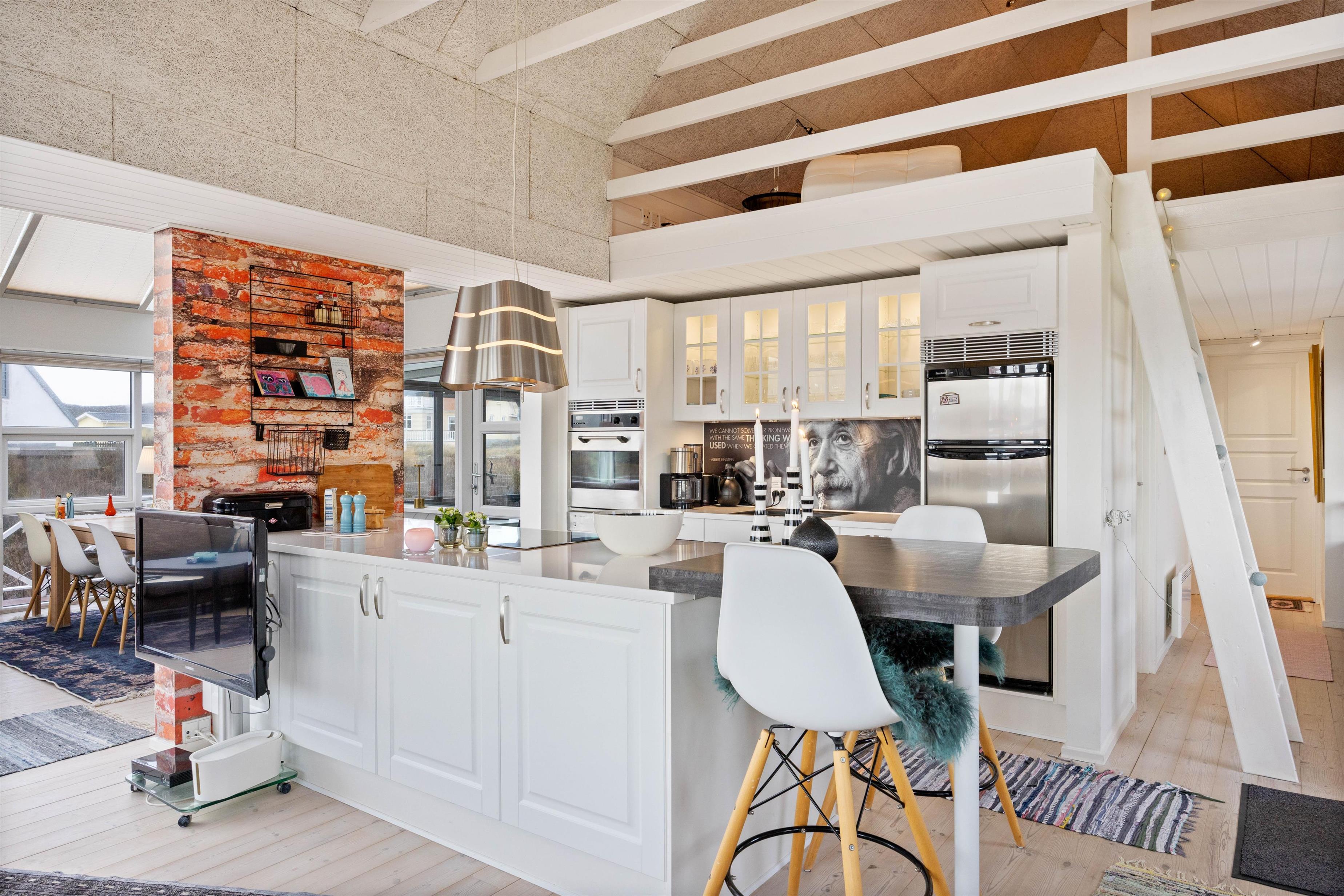 Dette dejlige sommerhus er bygget i gode materialer og fremstår lyst og smagfuldt. I Finder ikke mange andre sommerhus, som er lig denne perle på Lodbergsvej 363. Der er to soveværelser, begge med dobbeltsenge, samt en hems hvor der blandt også er to yderlige sengepladser. Badeværelset er lækkert indrettet, der er en bruseniche og der er gulvvarme. Køkkenet er veludstyret og er placeret midt i huset, og der er en opvaskemaskine og en mikroovn. Og med sine to barstole, kan I også holde feriekokken ved selskab, mens der bliver tilberedt et lækkert feriemåltid.