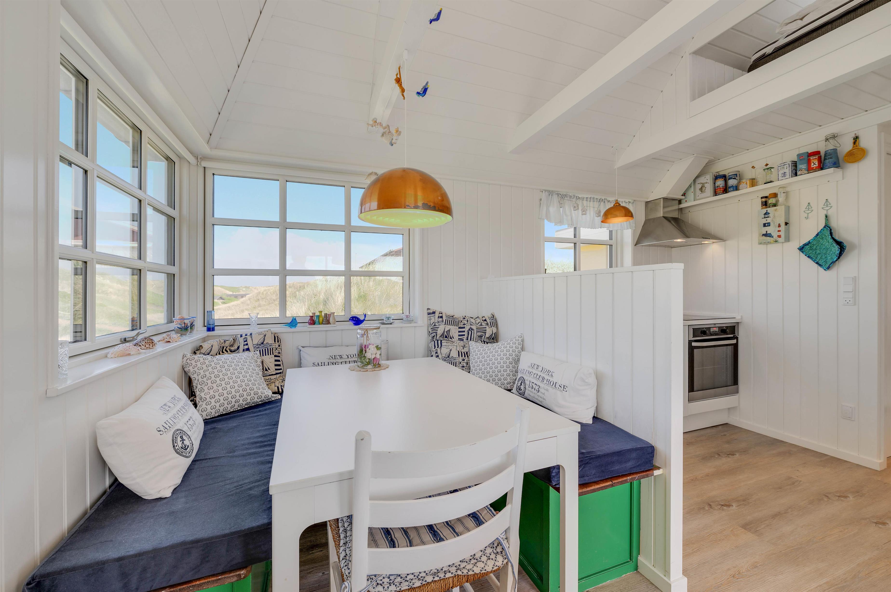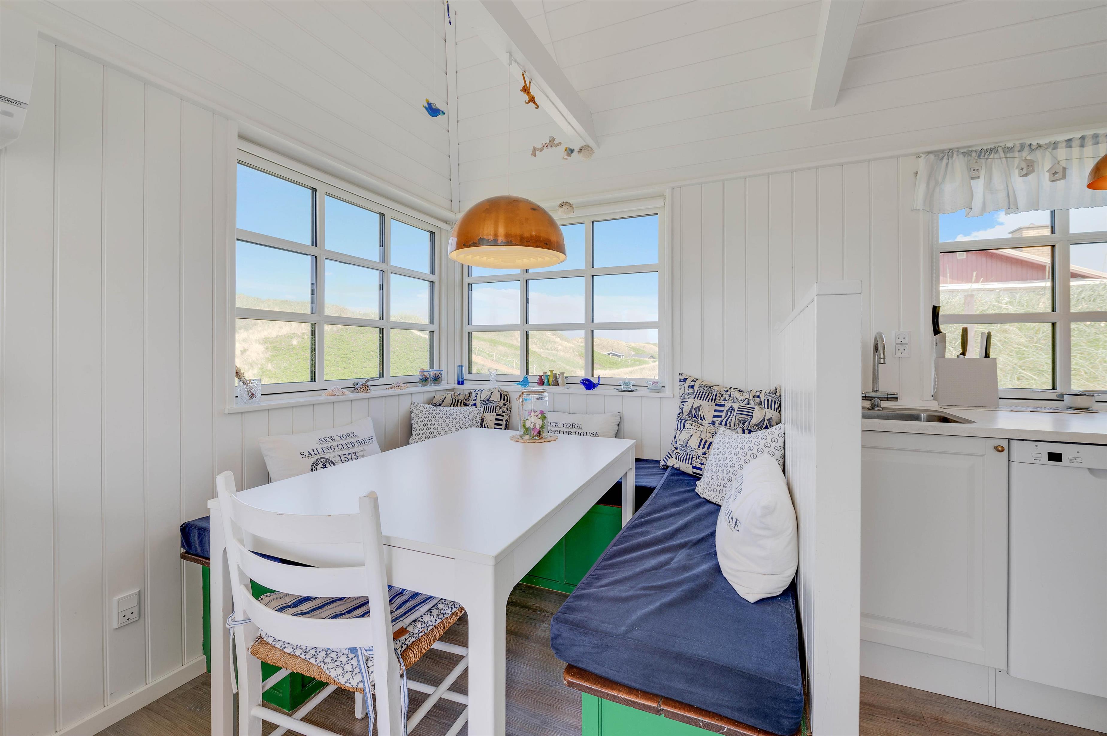 Sommerhuset har en rigtig fin størrelse til de maks 4 personer, og der er både plads til at komme hinanden ved og være sig selv. Over aftensmaden kan dagens forløb diskuteres. Aftensmaden kan også nemt tilberedes ved hjælp af både airfryeren eller elgrillen, som sikrer hurtigt og nem madlavning. Efter aftensmaden kan I slå mave, eller måske tage lille gåtur og udforske det flotte klitlandskab lige uden for døren, som især er smukt på solrige dage. I behøver ikke at bekymre jer om opvasken, for den skal opvaskemaskinen nok klare for jer.