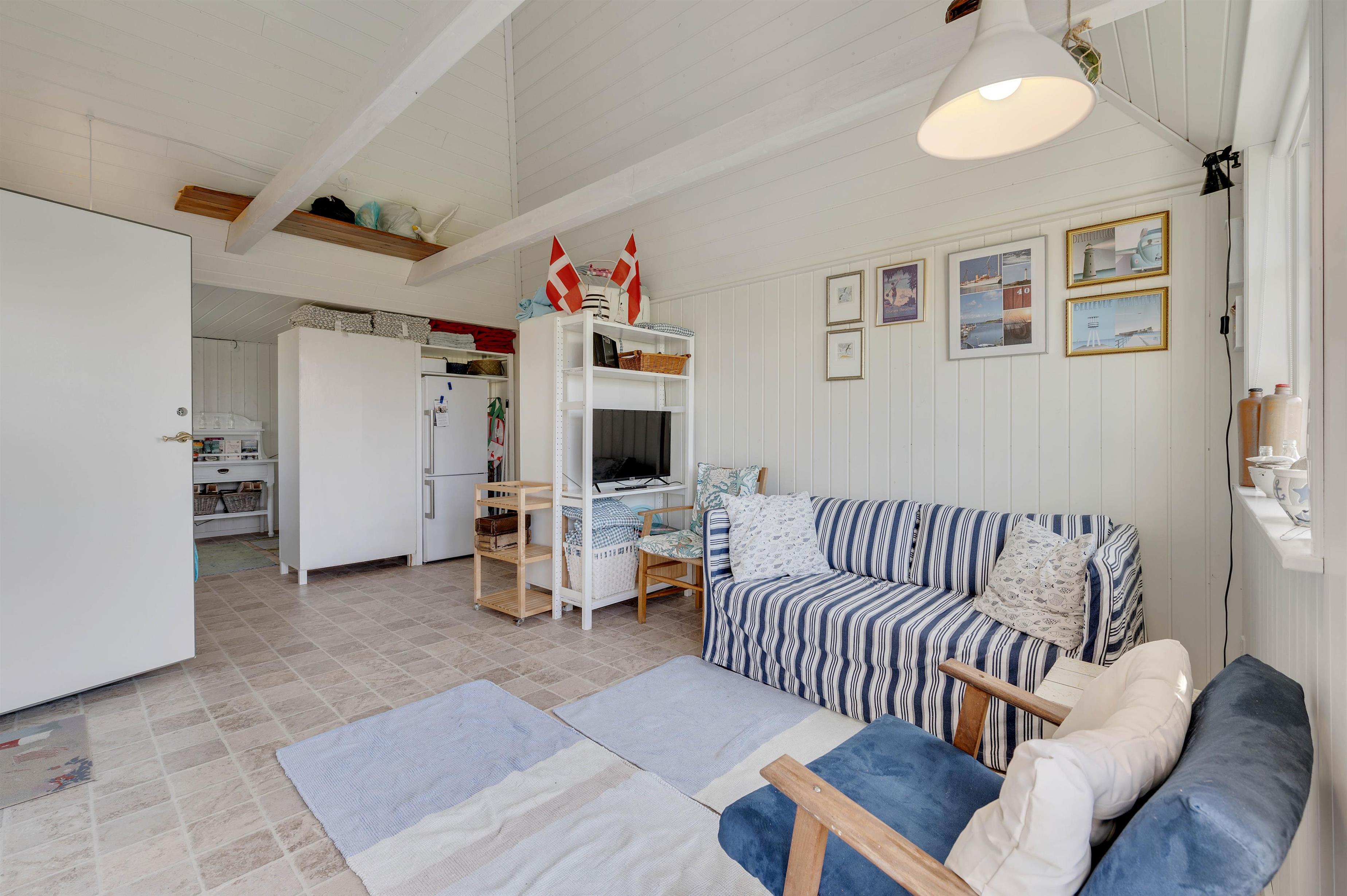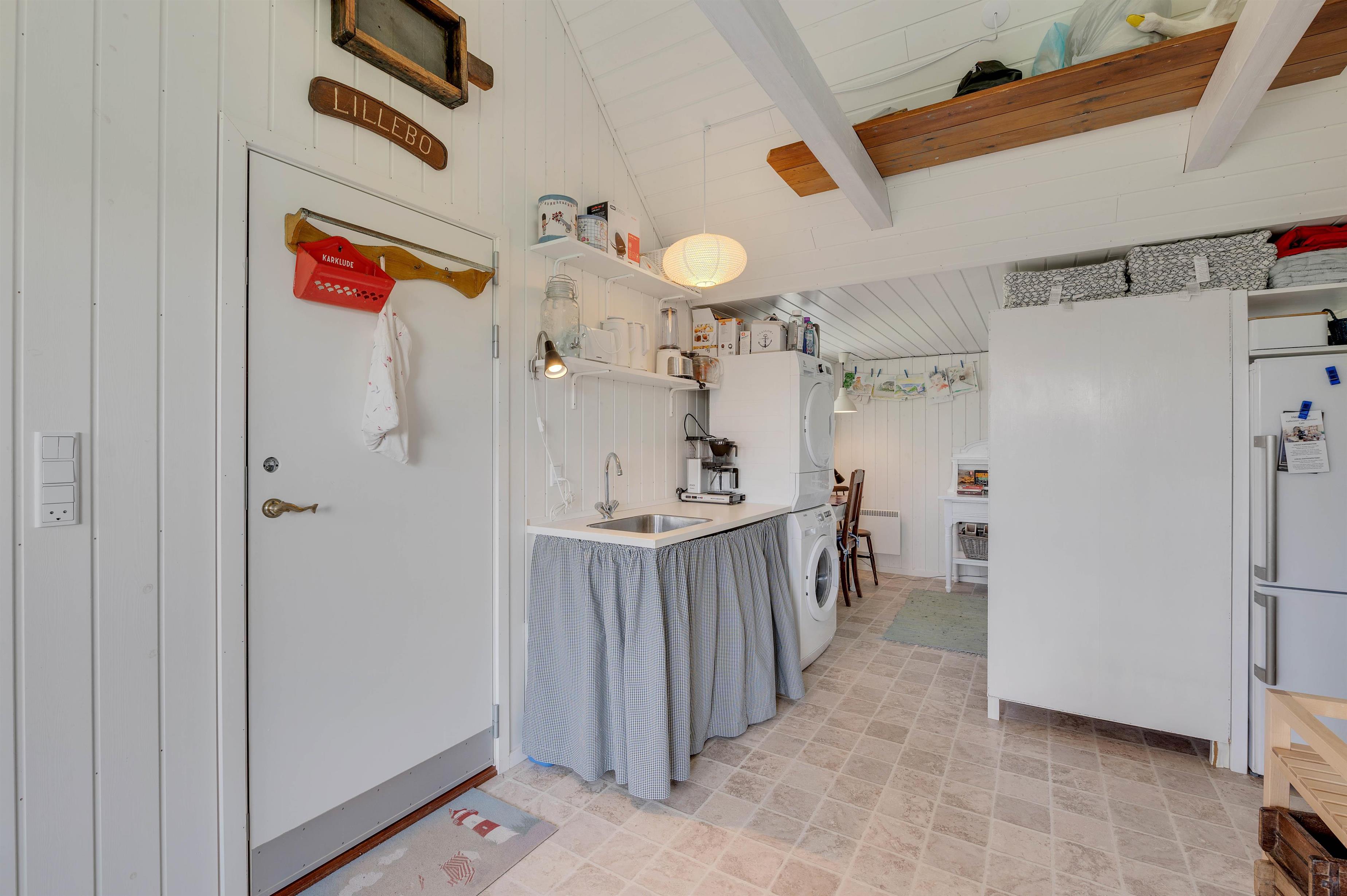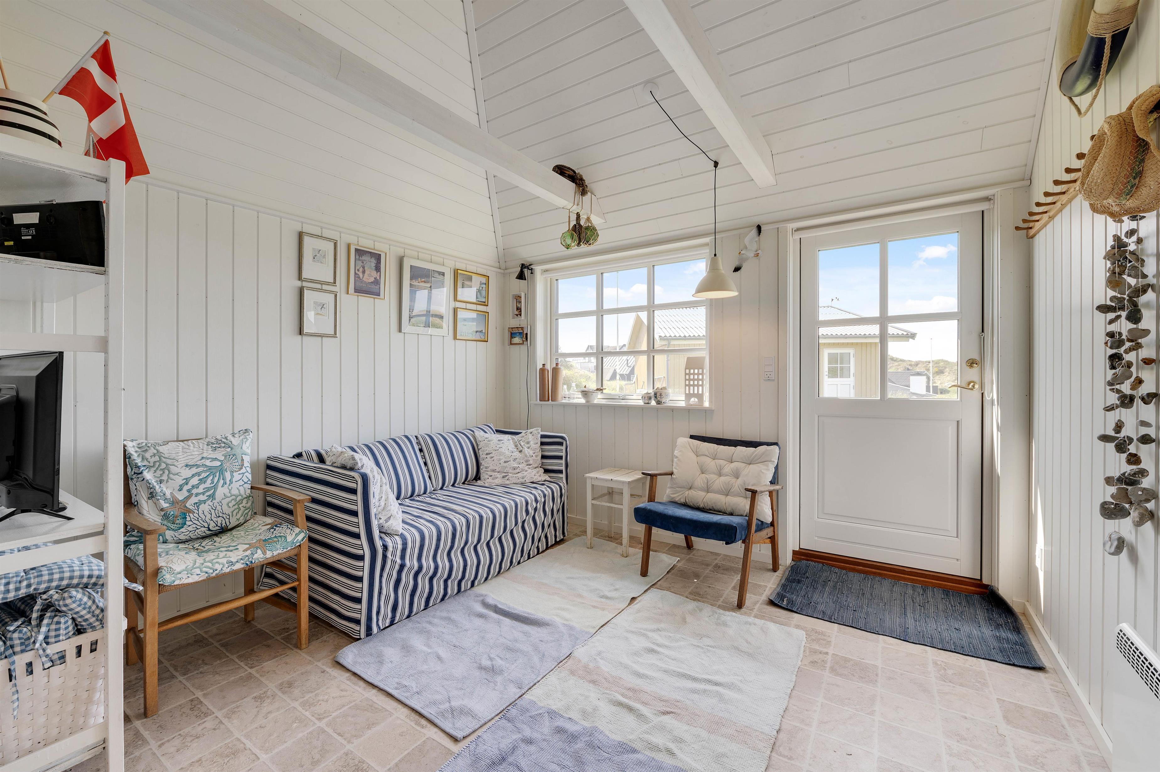 Sommerhuset er indrettet med personlighed og charme, og det kan mærkes med det samme. Den idylliske indretning indbyder til hygge med de nærmeste, og her kan I virkelig få tid til at nyde hinandens selskab.