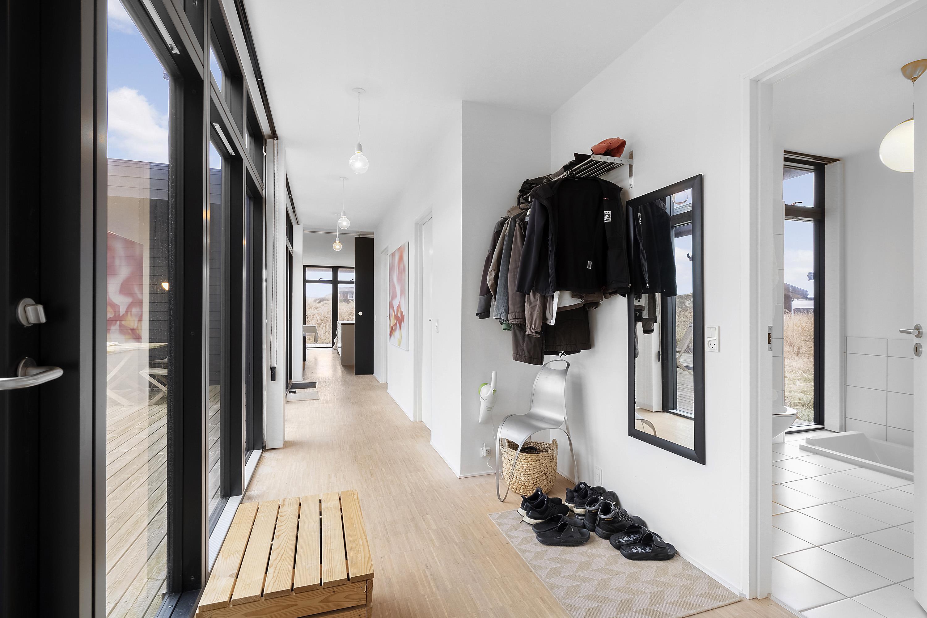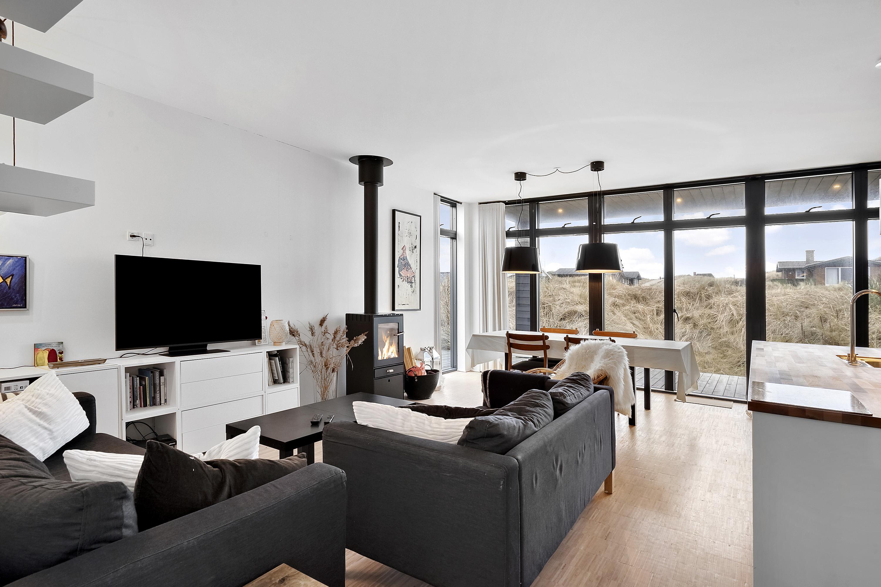 På Sand Holms Vej 64 finder I et indbydende feriehus, kun 300 meter fra Vesterhavet og tæt på de smukke klitter. Her får I en feriebase, hvor I nemt kan gå ned til stranden, mærke Vesterhavets friske luft og vende tilbage til varme, komfort og plads. Feriehuset er på 111 m² og indrettet til 6 personer, så I kan tage afsted som familie eller med venner og stadig have god plads til både fælles hygge og privatliv. Her er jeres hund også velkommen, hvis I har en.