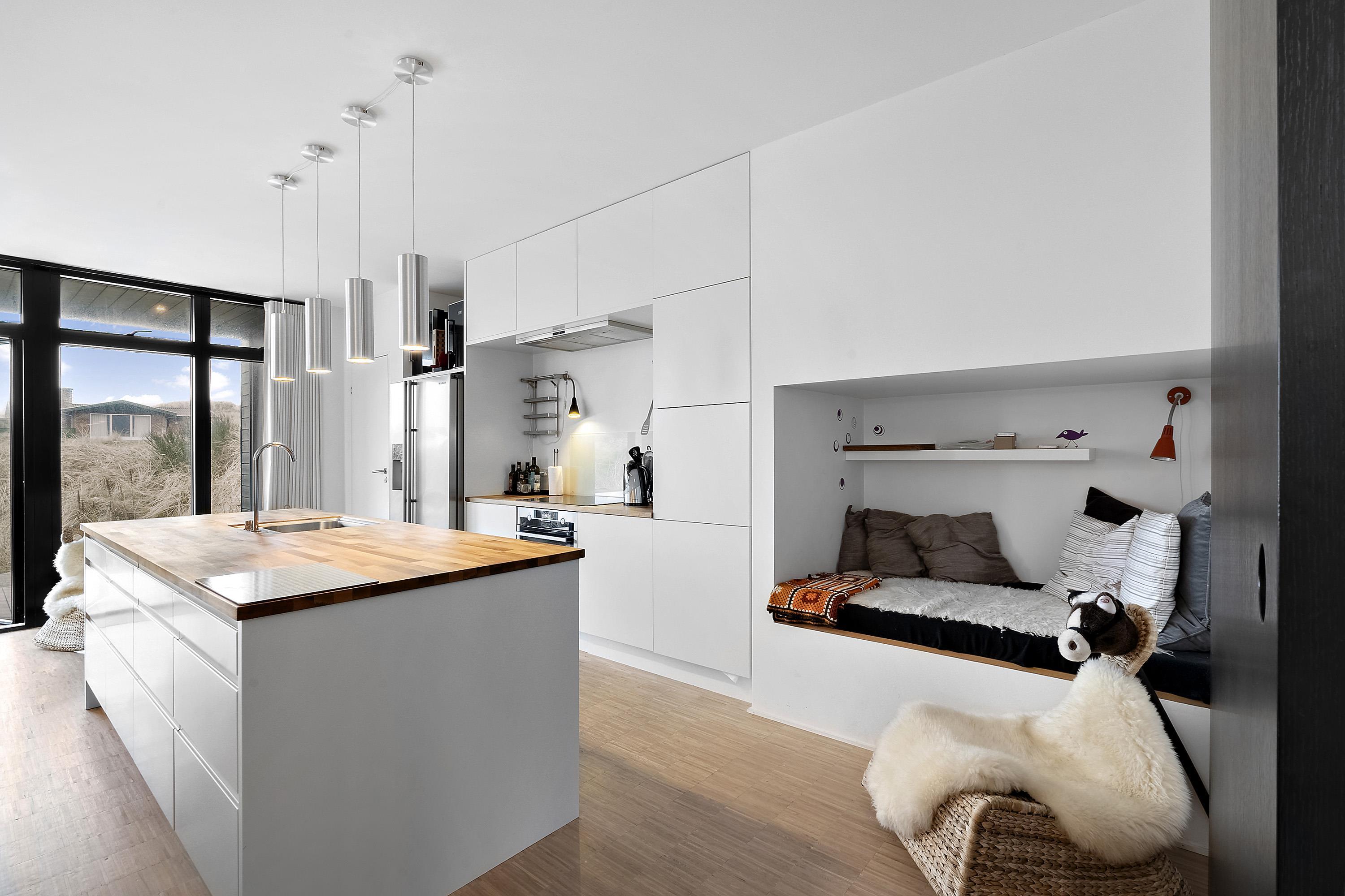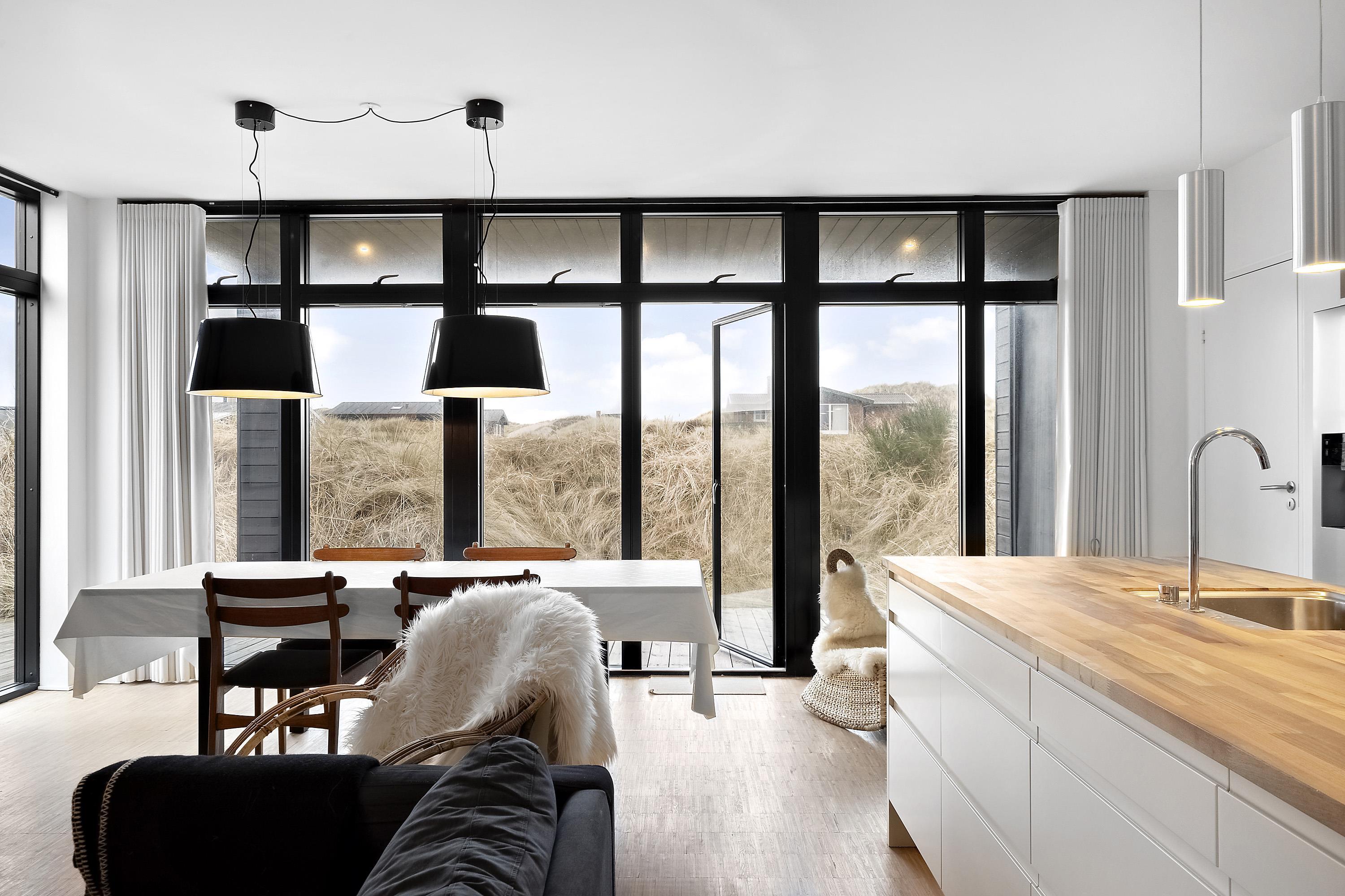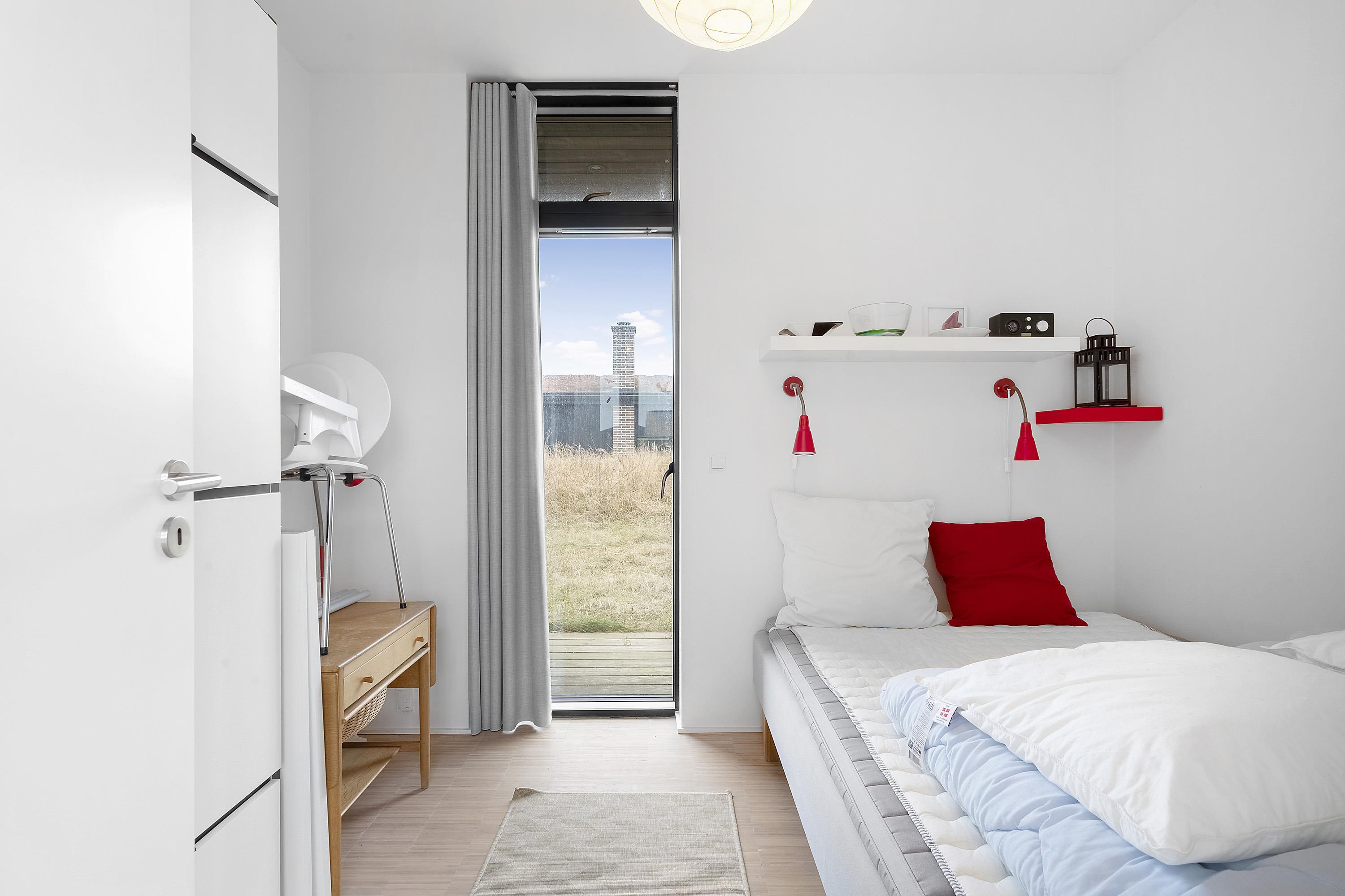 Når natten nærmer sig og det er tid til trække sig tilbage og få en god nats søvn, kan I fordele jer på feriehusets 3 gode og rummelige soveværelser. Alle soveværelser er indrettet med en dobbeltseng. Alle 3 soveværelser har direkte udgang til terrassen, og udsigt til de betagende klitter.