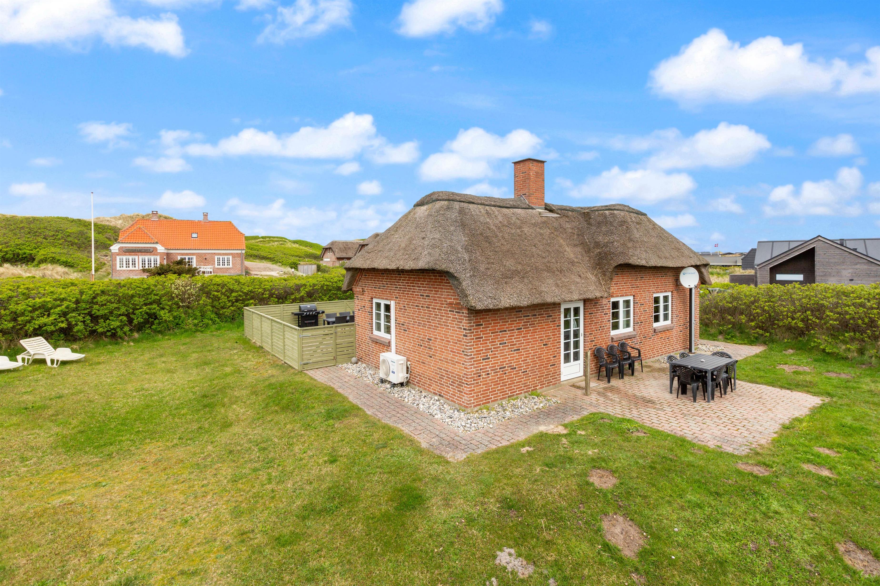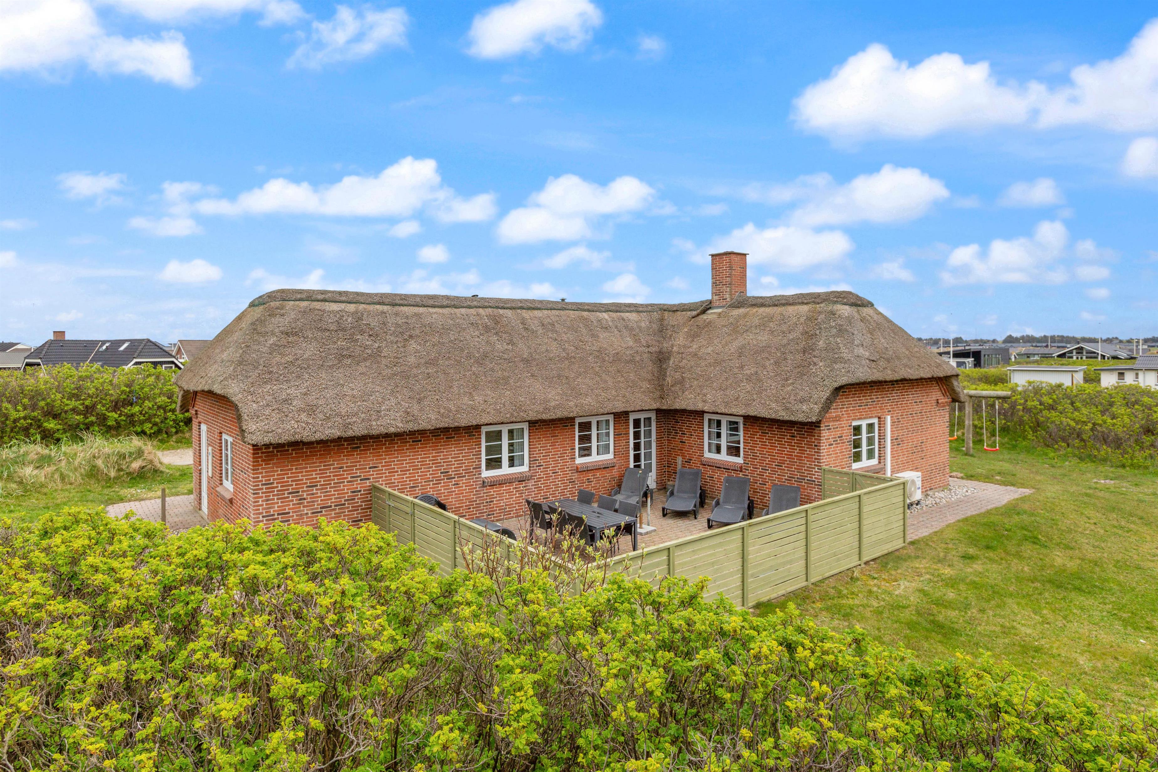Drømmer I om at holde ferie med Vesterhavet som nabo? Så tag et kig på det skønne stråtækte sommerhus på Hafavej 20 i Søndervig. Her går feriedrømmene i opfyldelse! Sommerhuset med plads til otte personer ligger kun 150 meter fra Vesterhavet, er hyggeligt indrettet og er ovenikøbet udstyret med spabad og sauna. Og hunden? Den tager I også bare med på ferie.