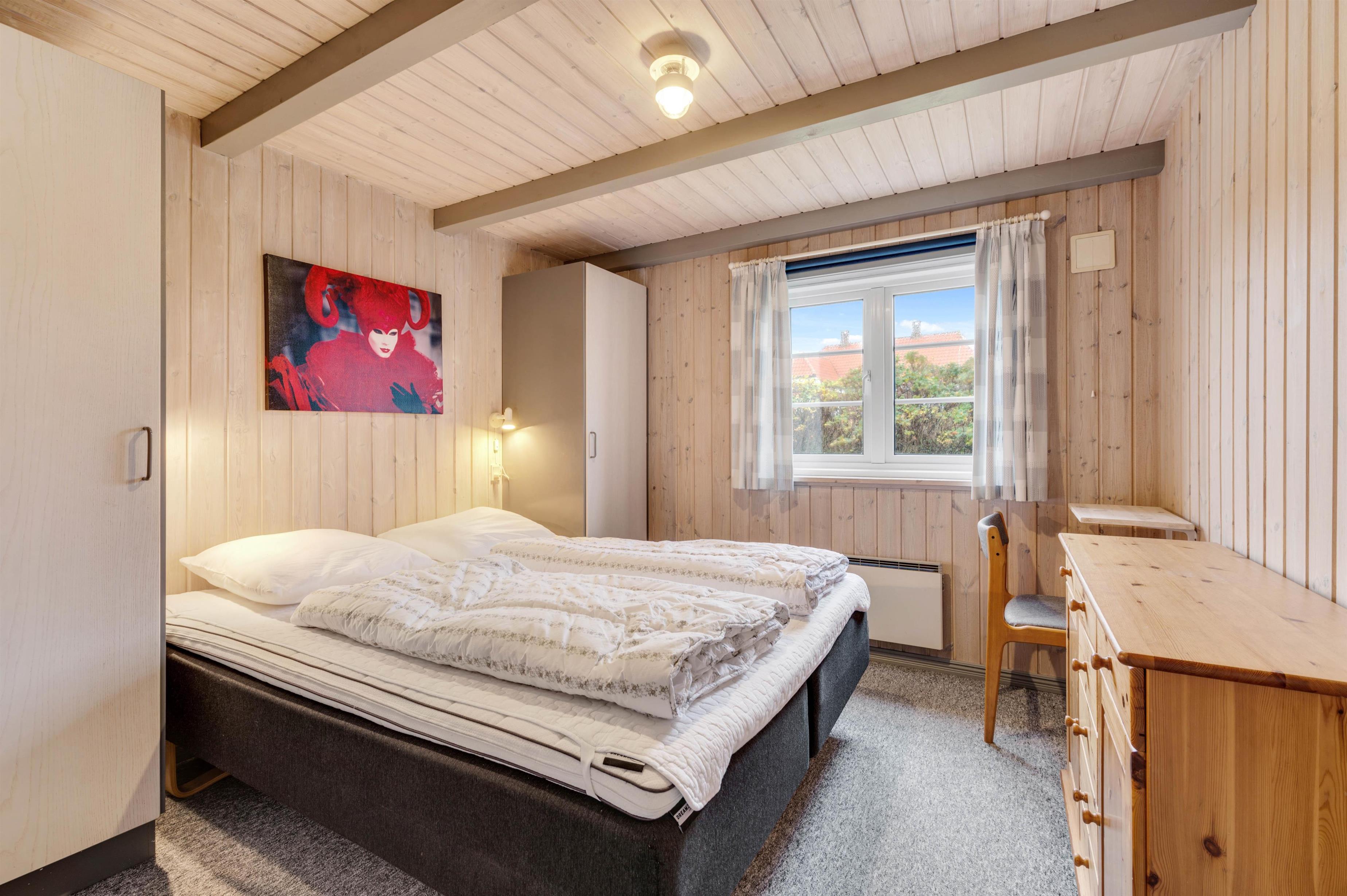 Der er i alt fire gode værelser i huset: to værelser med dobbeltsenge, et værelse med to enkeltsenge og et værelse med køjeseng. Der er derfor rigelige med sengepladser, så I kan sagtens invitere bedsteforældrene med på ferie. Eller måske skal familiens børn have deres legekammerater med?