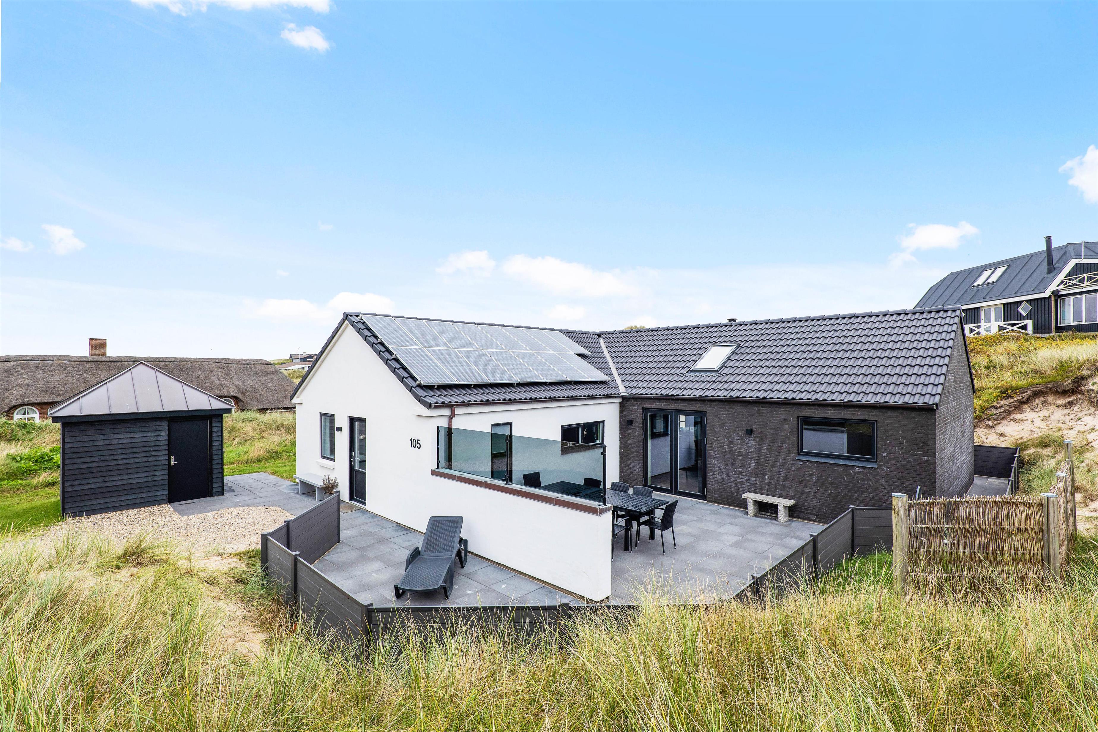 Dette lækre poolhus med sauna og standvandsspa har gennemgået en omfattende renovering i 2020. Huset ligger kun 350 meter fra stranden og er smagfuldt indrettet med fokus på kvalitet, hygge og plads til hele familien. Den fine aktivitetsafdeling ved stue-området er meget børnevenlig og har både en dartskive, bordfodbold og et airhockeybord. Desuden råder sommerhuset også over et legetårn med gynge til børnene, så de har rig mulighed for at få brændt krudt af. Der er ikke gået på kompromis med noget på Hvidbjergvej 105. Desuden finder I en ladeboks ved huset, hvis I skulle ankomme i el-bil.