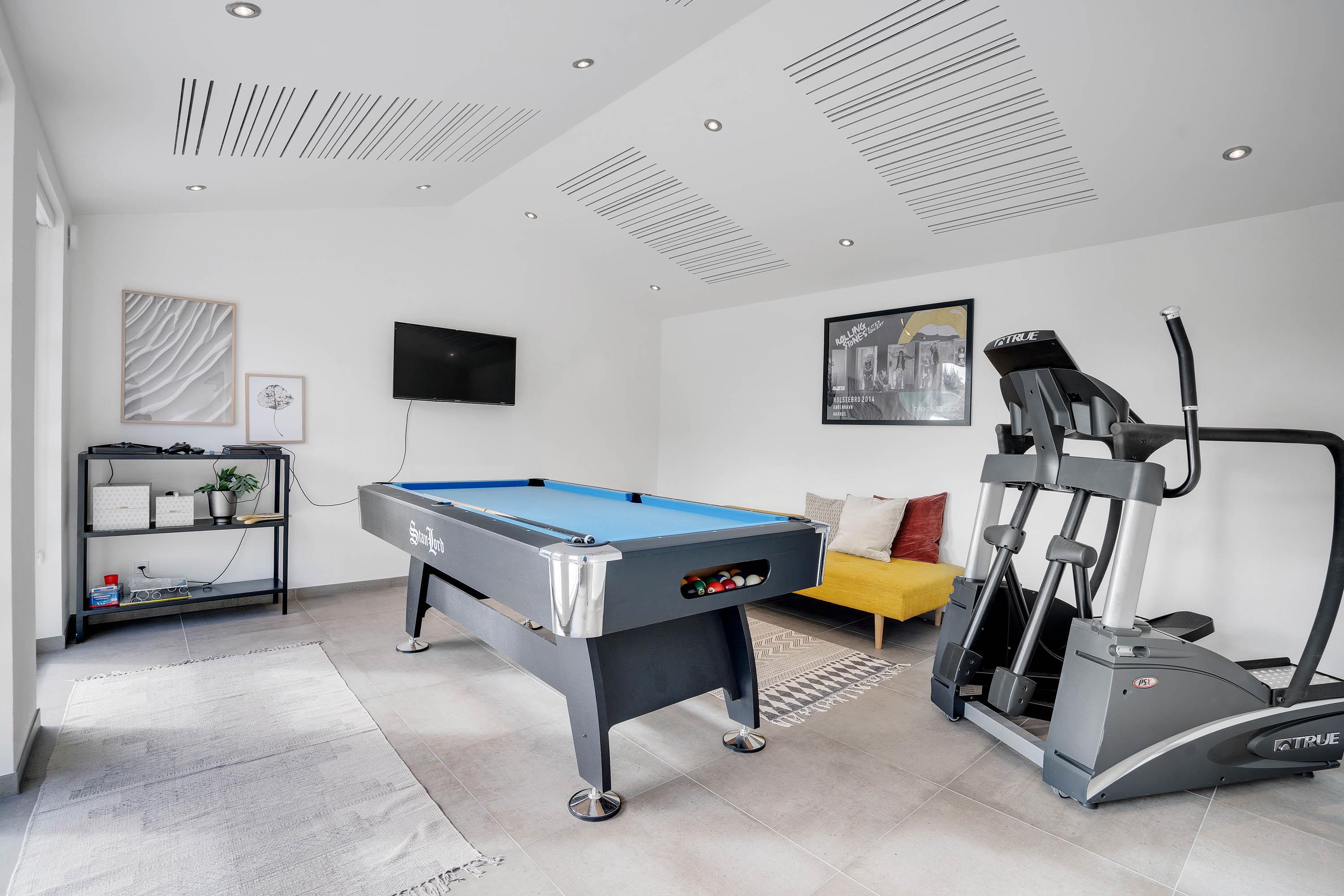 Endnu et feriehighlight er bestemt aktivitetsrummet, der er indrettet med både billardbord og crosstrainer. Her kan de aktive feriegæster rigtig få lov til at slå sig løs og bruge noget energi!