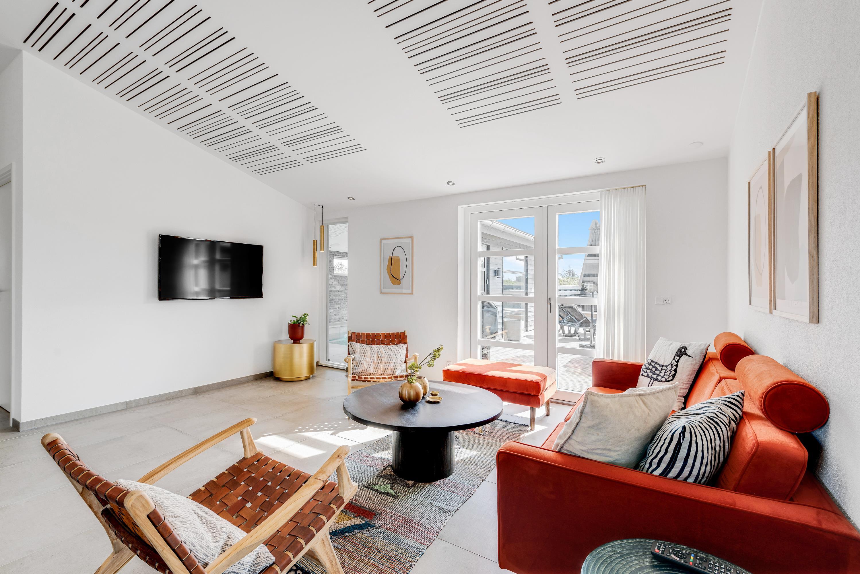 Feriehuset, der er 5-stjernet, er den perfekte ramme for en mindeværdig og afslappende ferie i skønne omgivelser. Det er moderne indrettet i et lyst og lækkert design. Her kan I få en masse gode timer til at gå, med svømmeture og leg i swimmingpoolen samt afslapning i saunaen og hygge i den skønne udendørs spa.