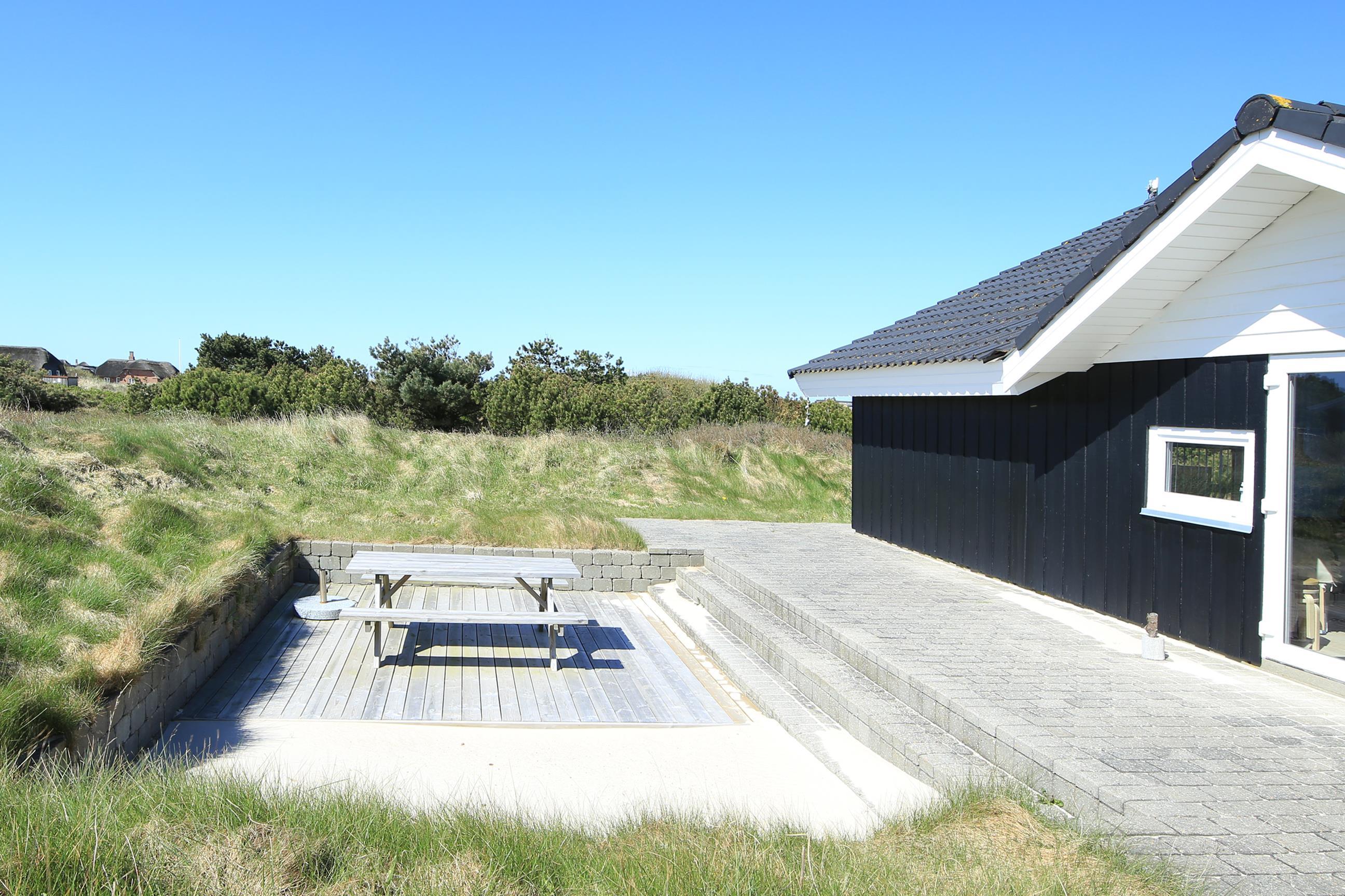 Sommerhuset ligger på en dejlig naturgrund i et attraktivt ferieområde syd for Søndervig, hvor I kan besøge lokale butikker og spisesteder. Stranden ved Vesterhavet er derimod perfekt for alle, der elsker kilometerlangt, hvidt strandsand, høje lyngbeklædte klitter og masser af frisk, salt havluft. Selv på en rekordvarm sommerdag er der her en lille ”hemmelig lagune”.