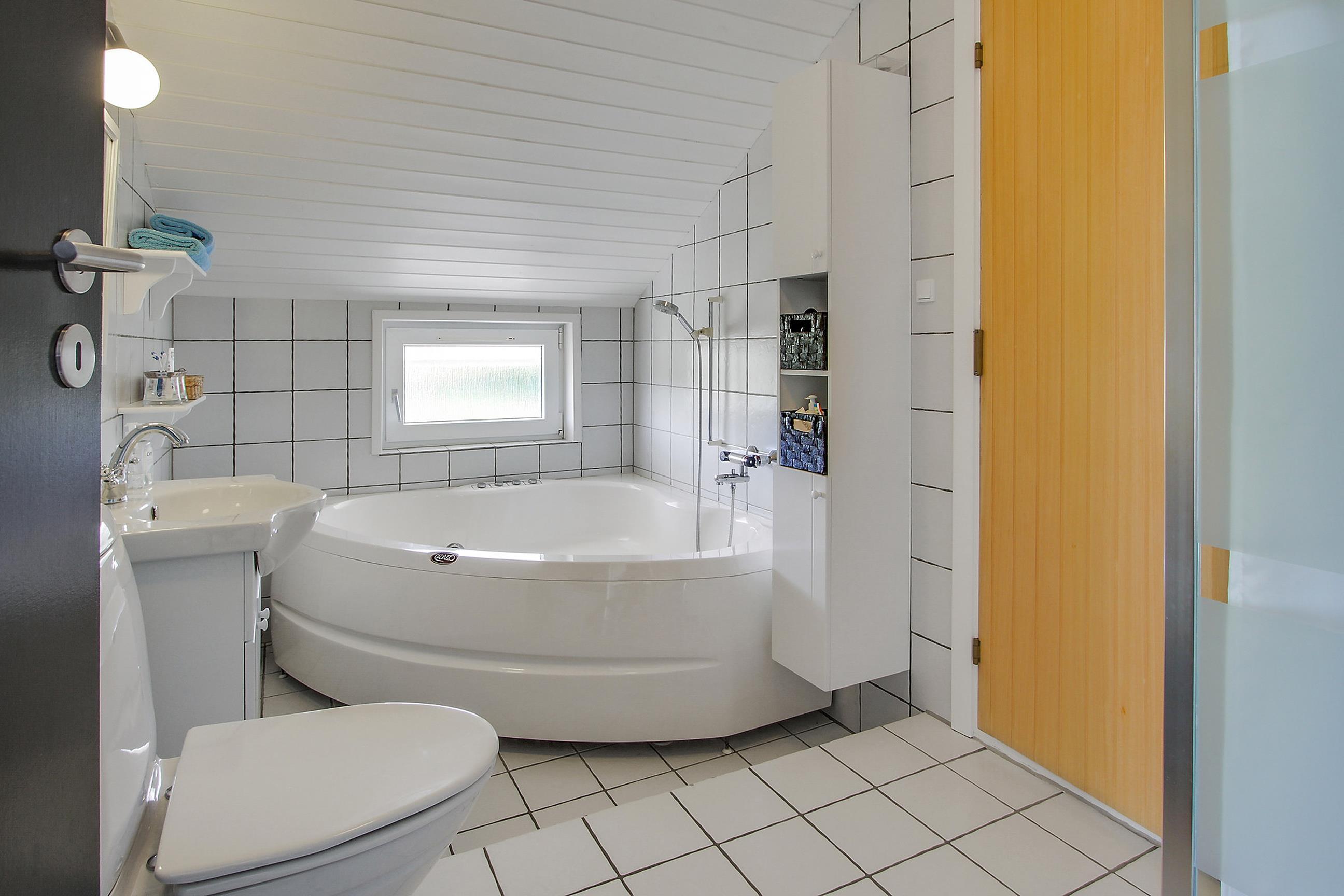 Og når talen nu falder på afslapning. Hvad er så bedre end at slappe af i et boblende spabad efter en lang dag ved Vesterhavet? Det behøver I ikke spekulere over. For også her er I heldige stillet, da husets største badeværelse nemlig er udstyret med en spa.