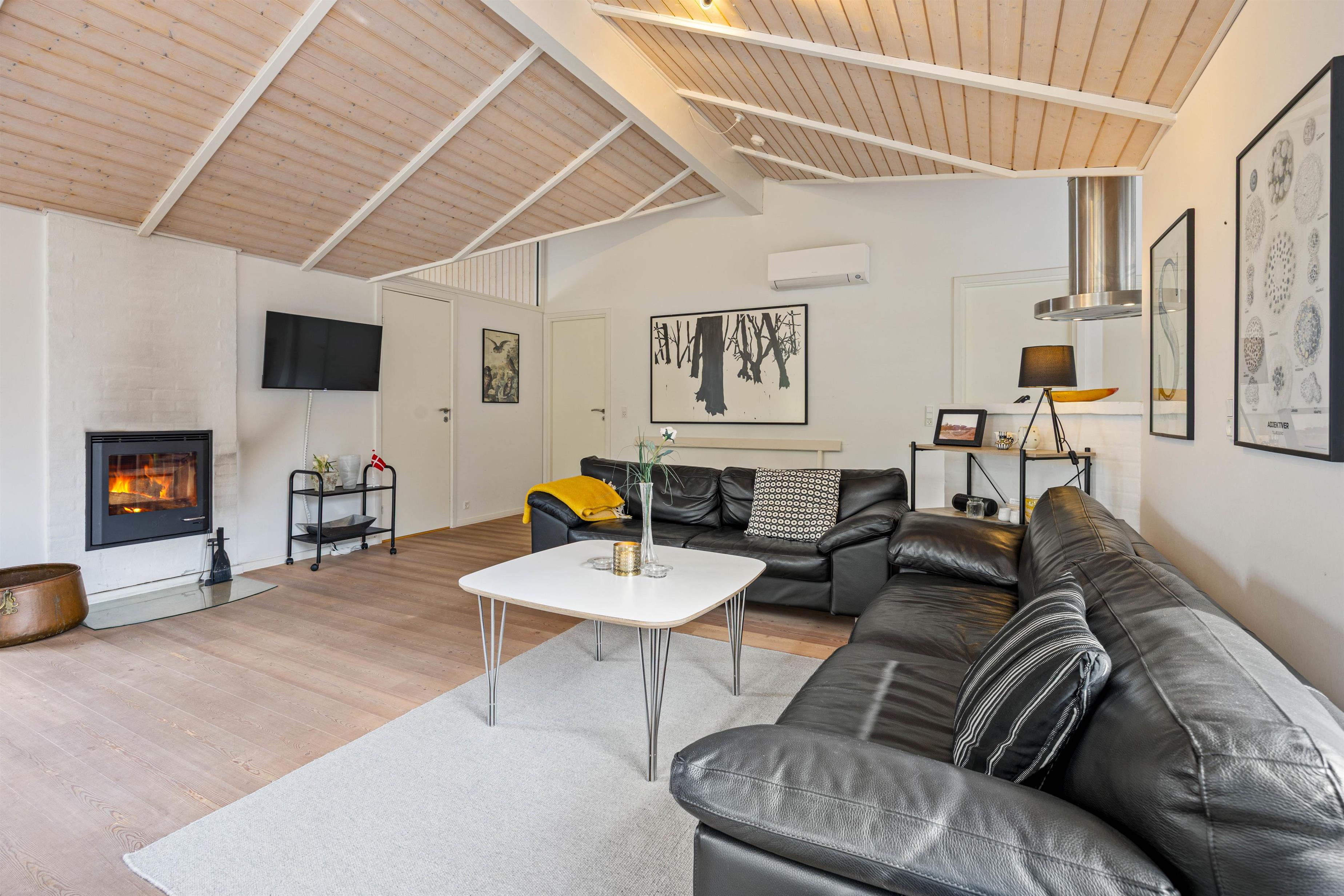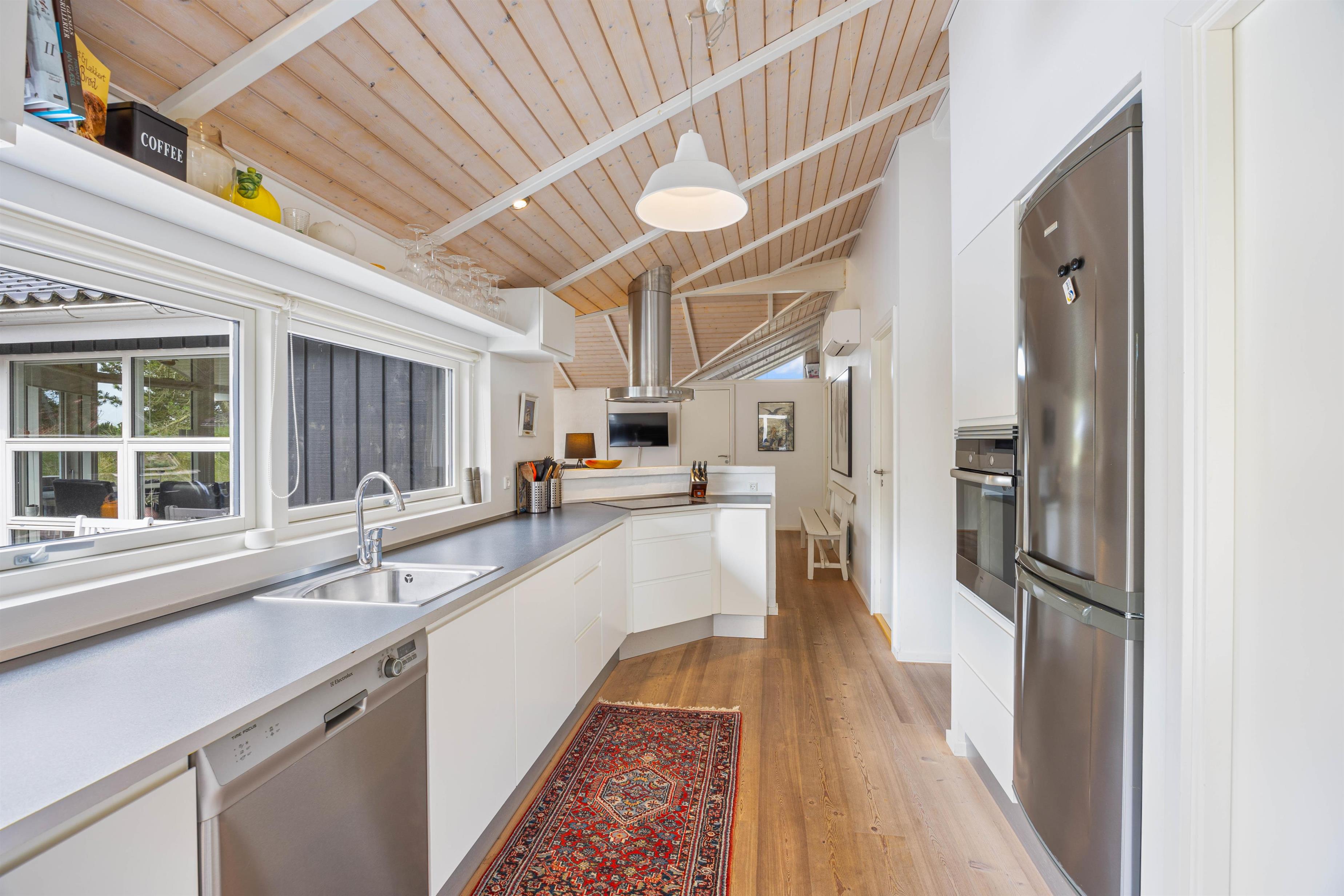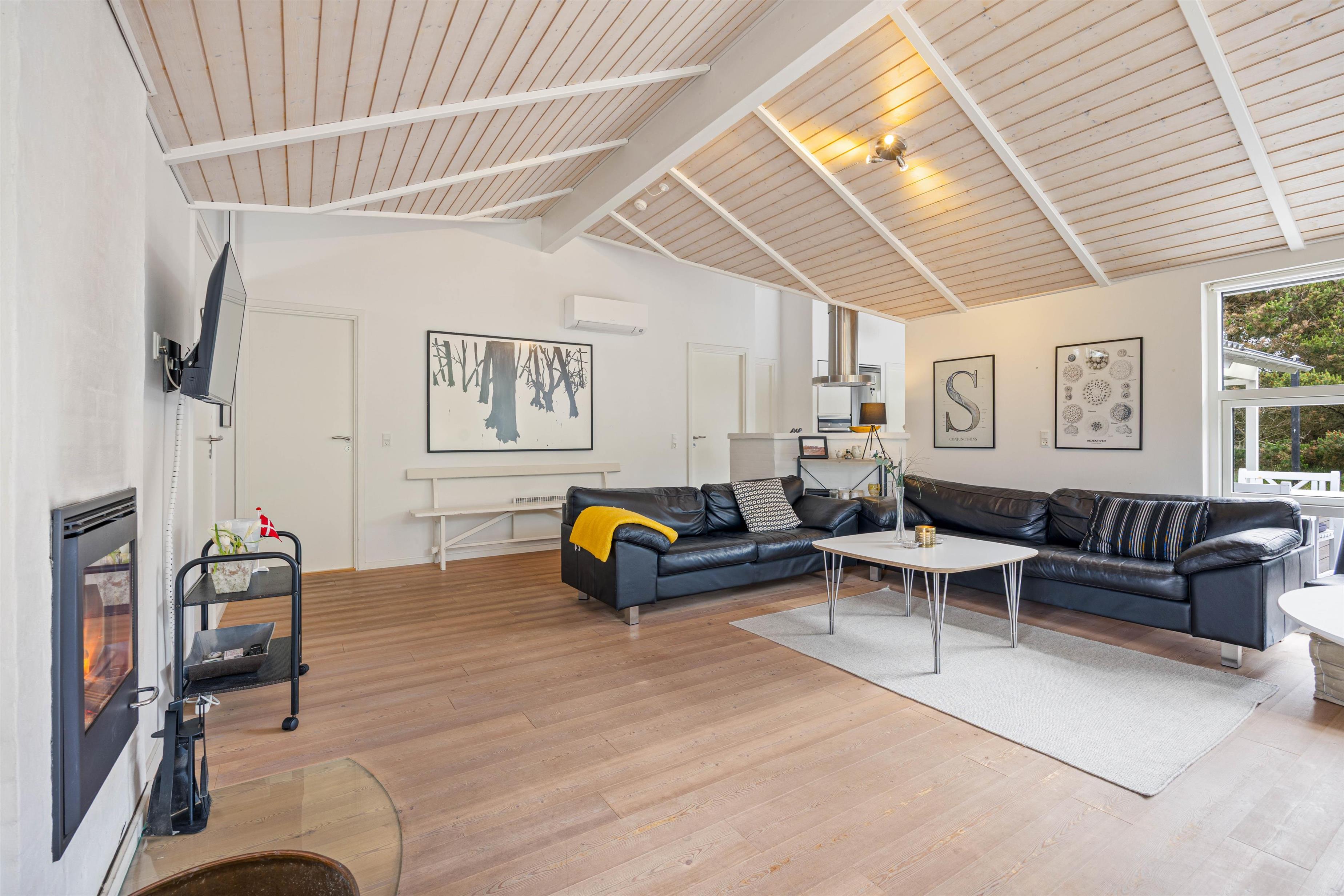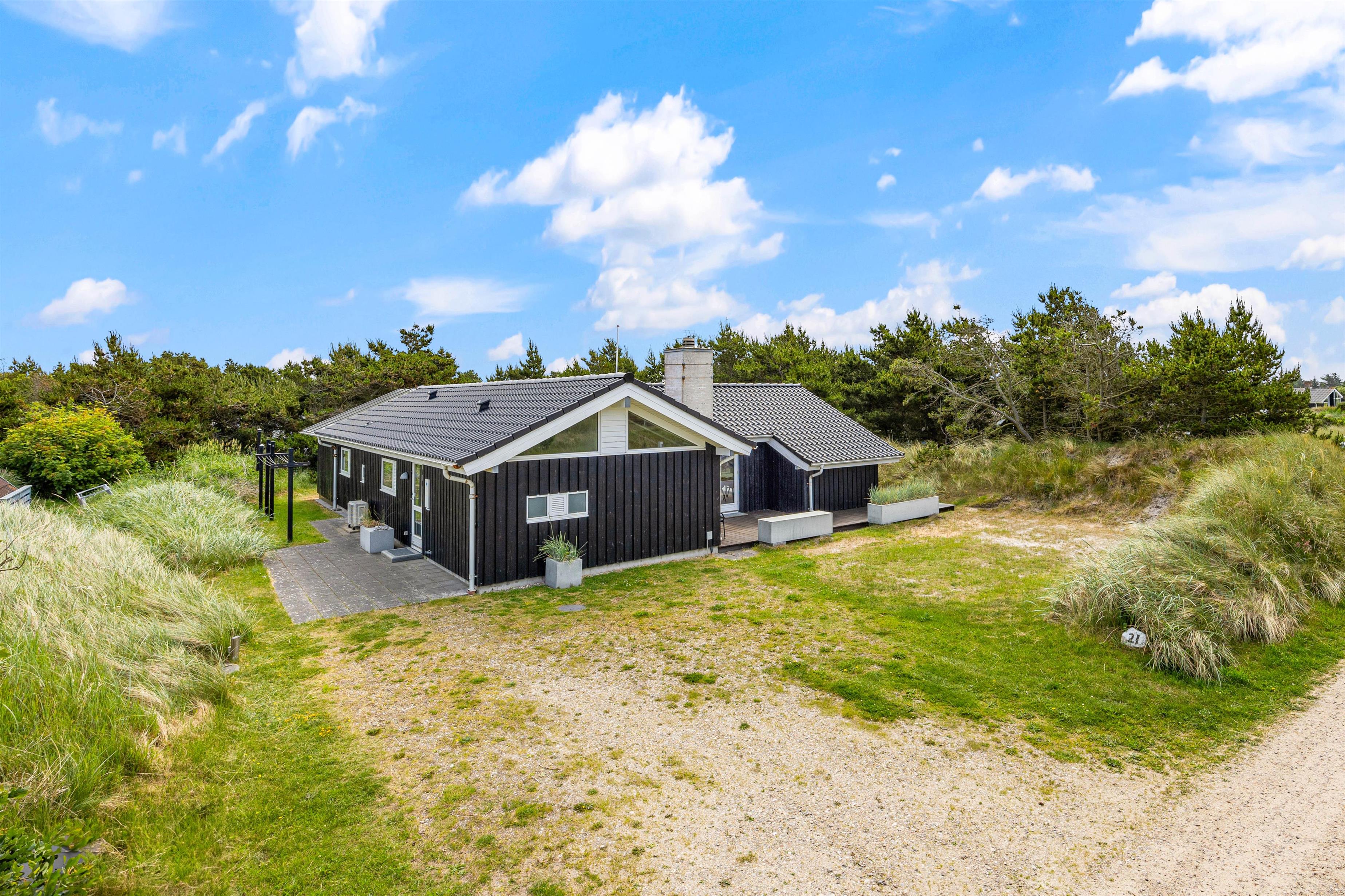Dette rummelige sommerhus, der strækker sig over 105 kvadratmeter, byder jer velkommen med åbne arme. Her på hvidbjegvej 21 finder I et feriehus bygget i flotte materialer. Her kan den kræsne familie nyde en skøn ferie året rundt. Der er loft til kip og lyse vægge og gulve, hvilket giver en dejlig rummelig effekt. De tre værelser er rummelige og med gode skabe, og så er der to lækre badeværelser, hvoraf det store har en spa. For de køligere aftener kan I samles omkring den hyggelige pejseindsats i stuen. I kan også gøre brug af husets luft-til luft-varmepumpe der er med til at sikre en behagelig temperatur hele året rundt.