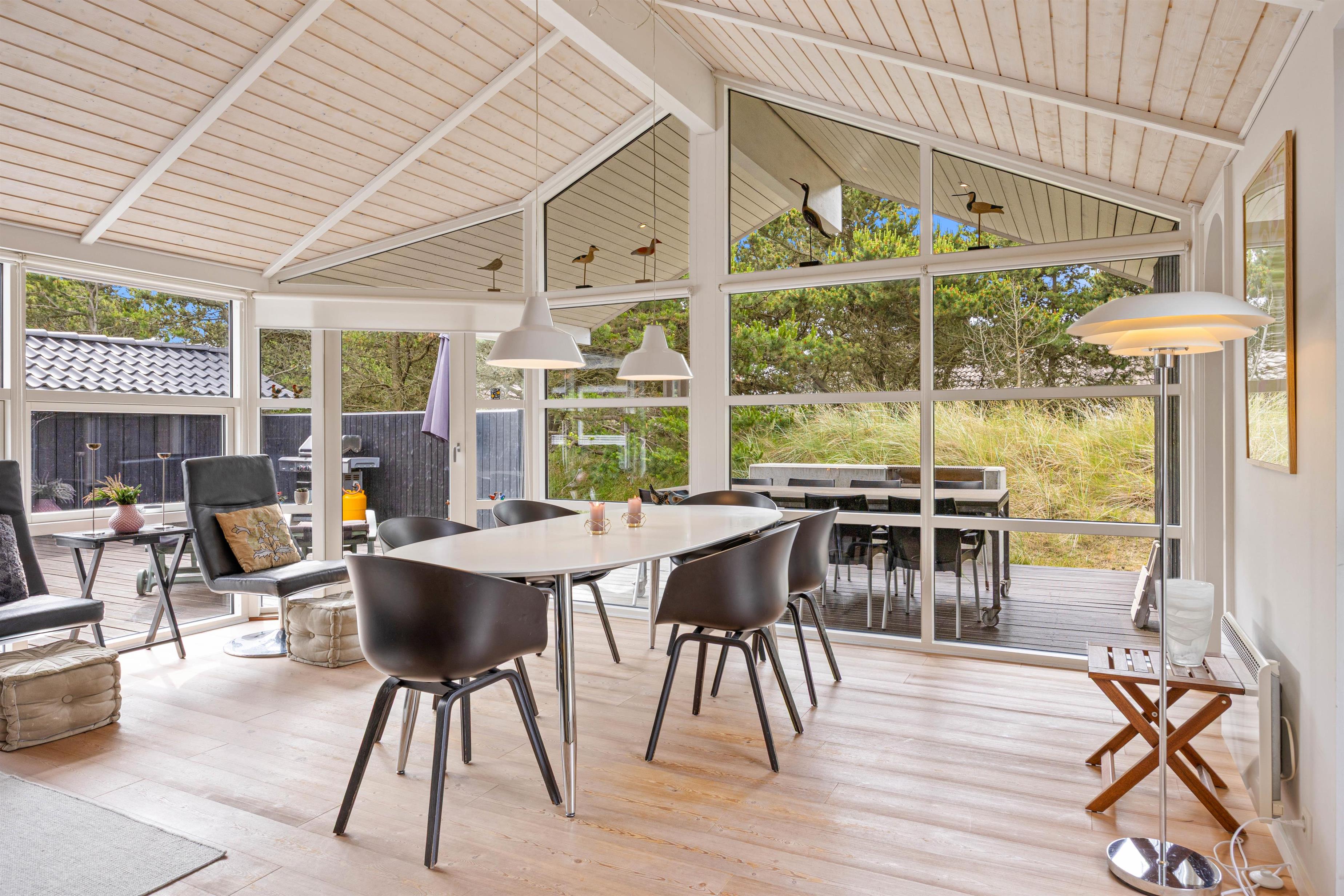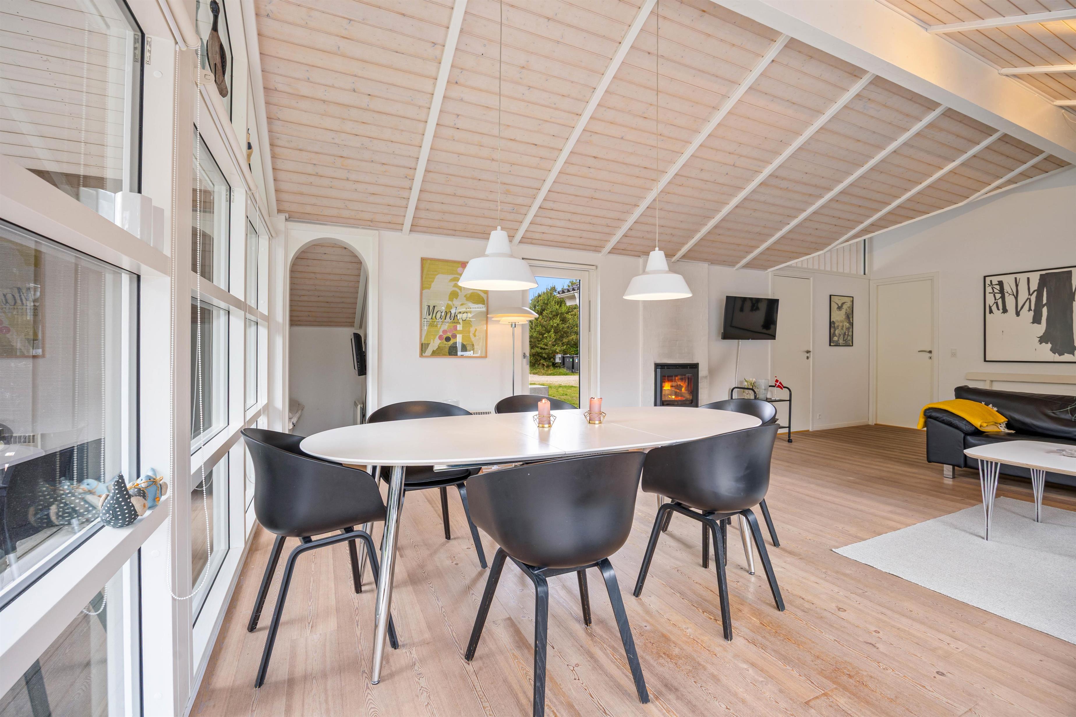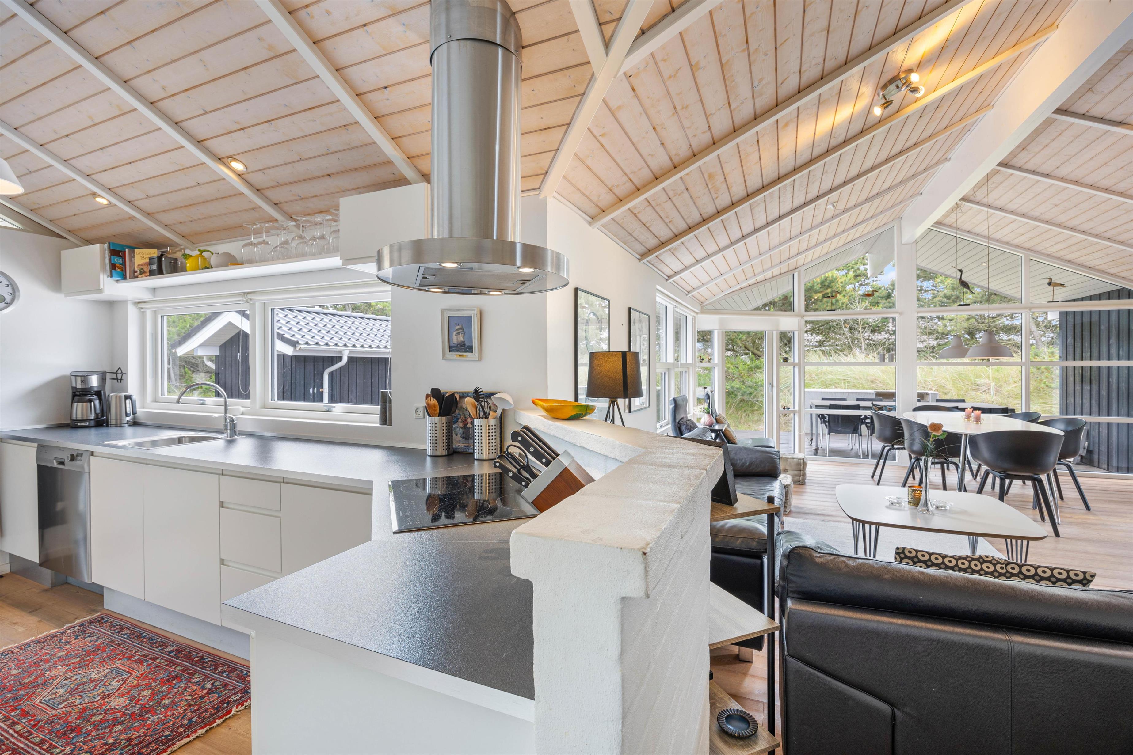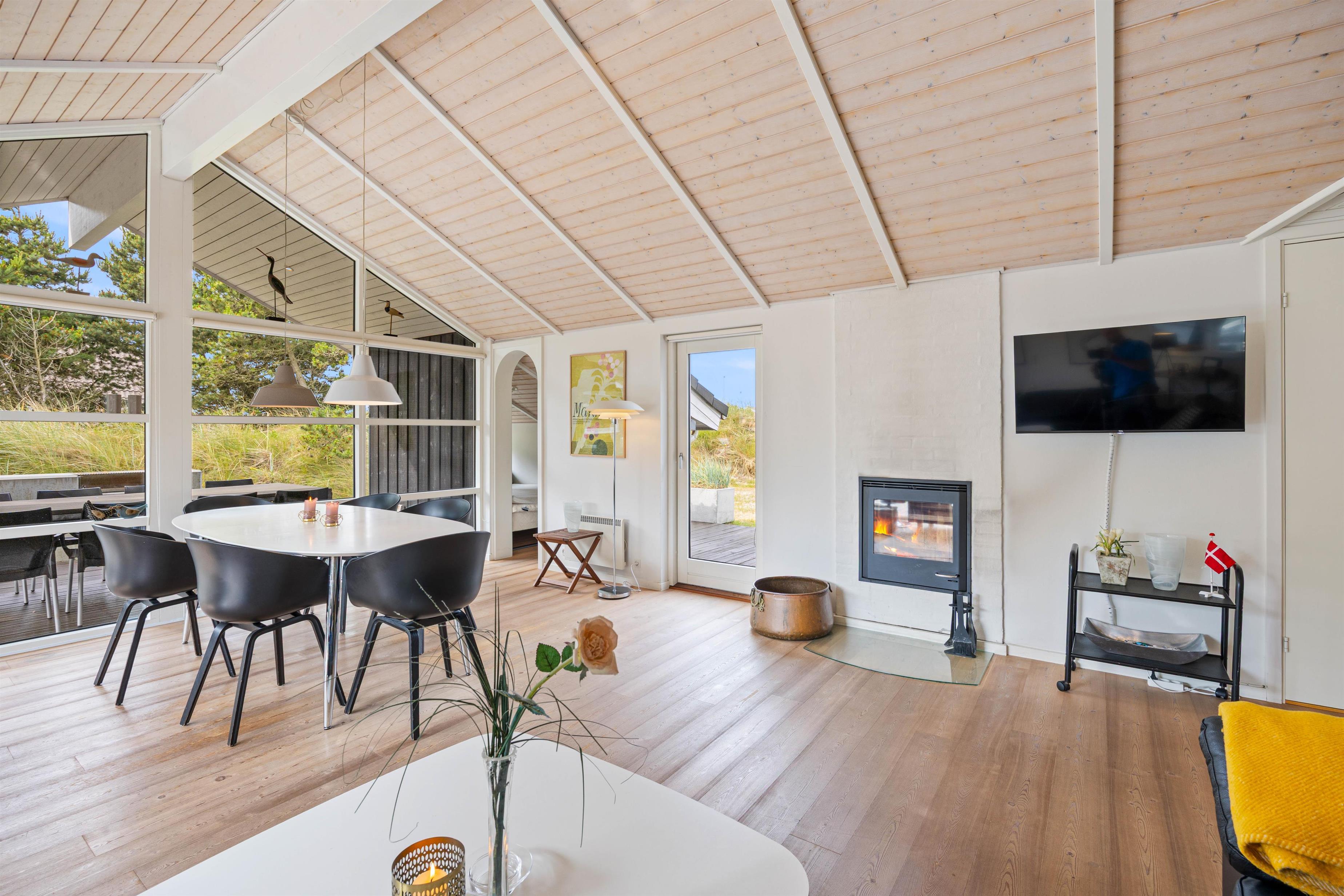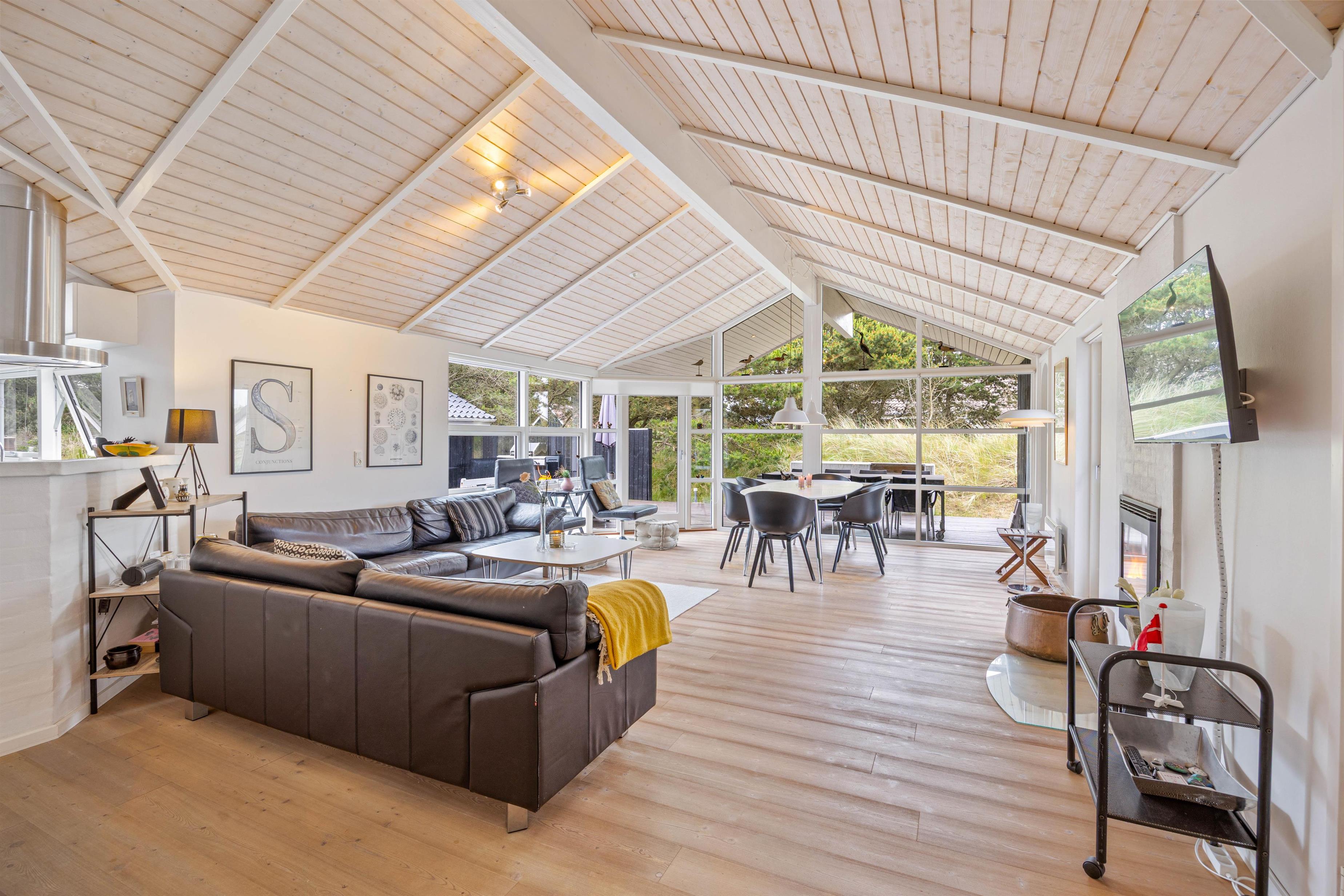 Dette rummelige sommerhus, der strækker sig over 105 kvadratmeter, byder jer velkommen med åbne arme. Her på hvidbjegvej 21 finder I et feriehus bygget i flotte materialer. Her kan den kræsne familie nyde en skøn ferie året rundt. Der er loft til kip og lyse vægge og gulve, hvilket giver en dejlig rummelig effekt. De tre værelser er rummelige og med gode skabe, og så er der to lækre badeværelser, hvoraf det store har en spa. For de køligere aftener kan I samles omkring den hyggelige pejseindsats i stuen. I kan også gøre brug af husets luft-til luft-varmepumpe der er med til at sikre en behagelig temperatur hele året rundt.