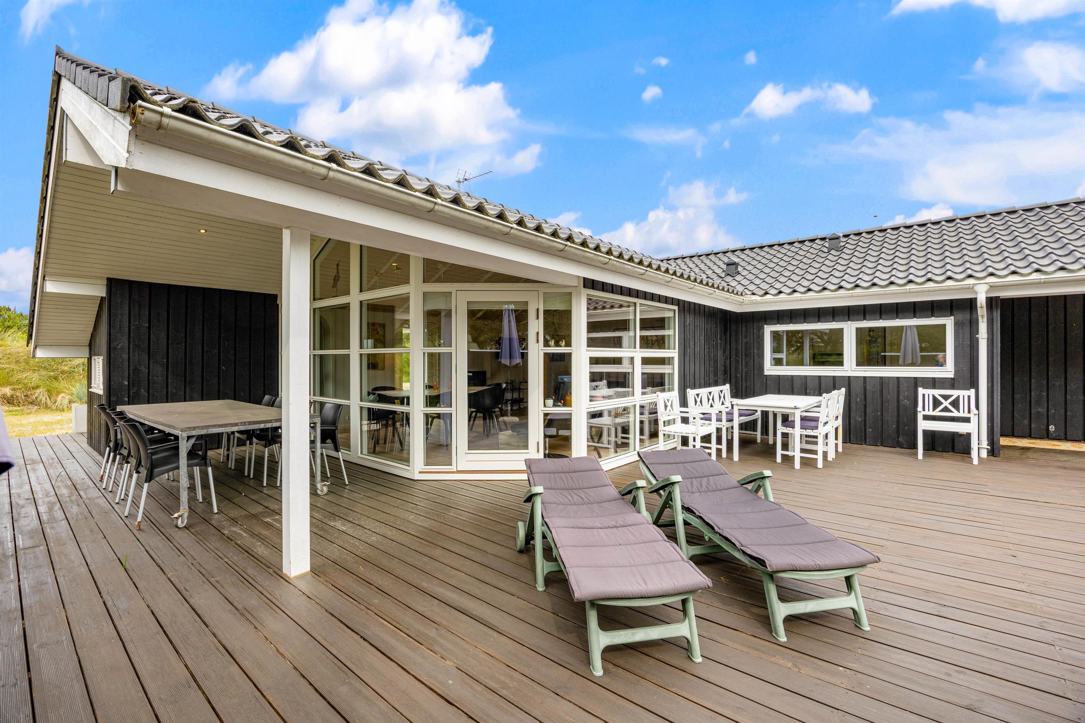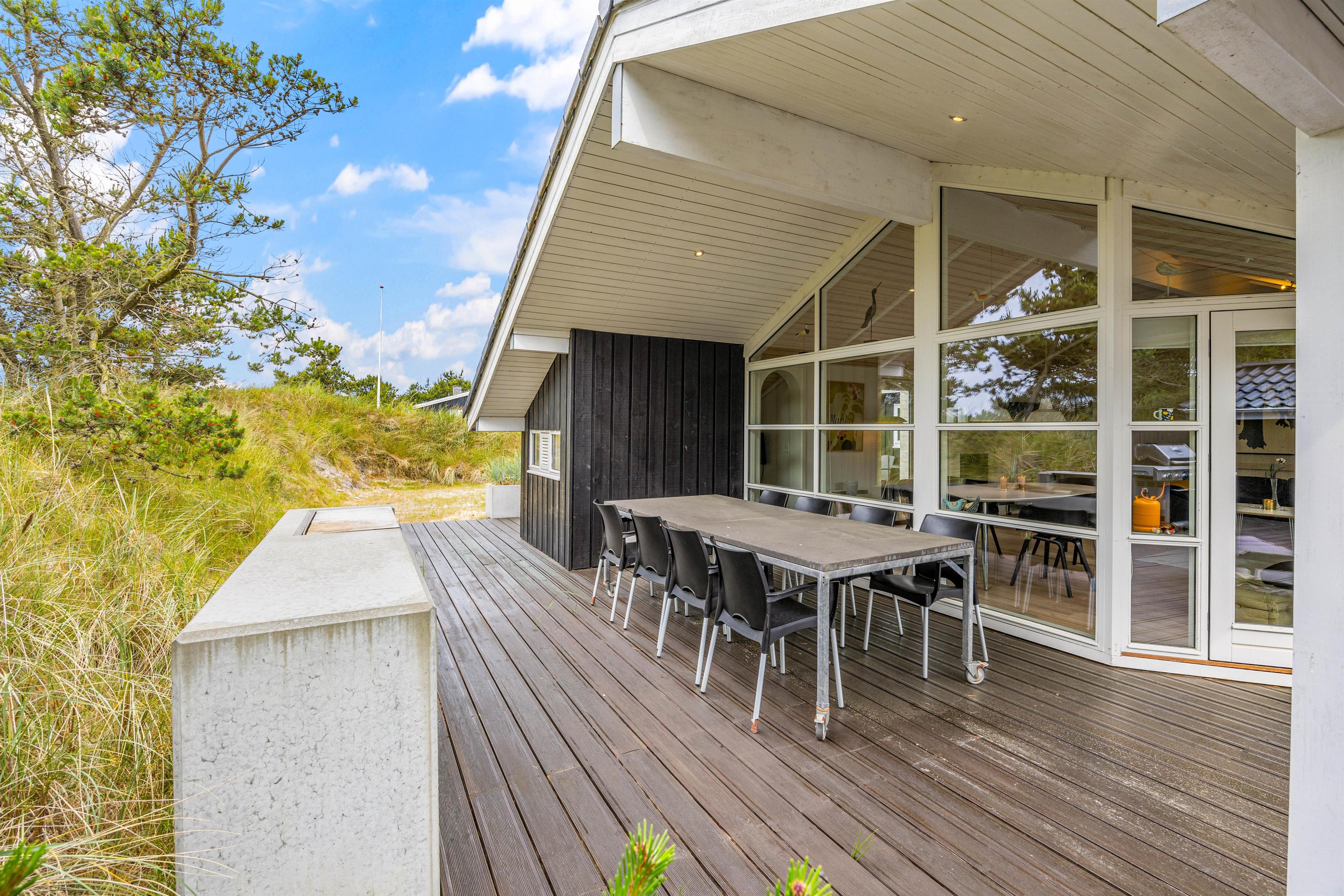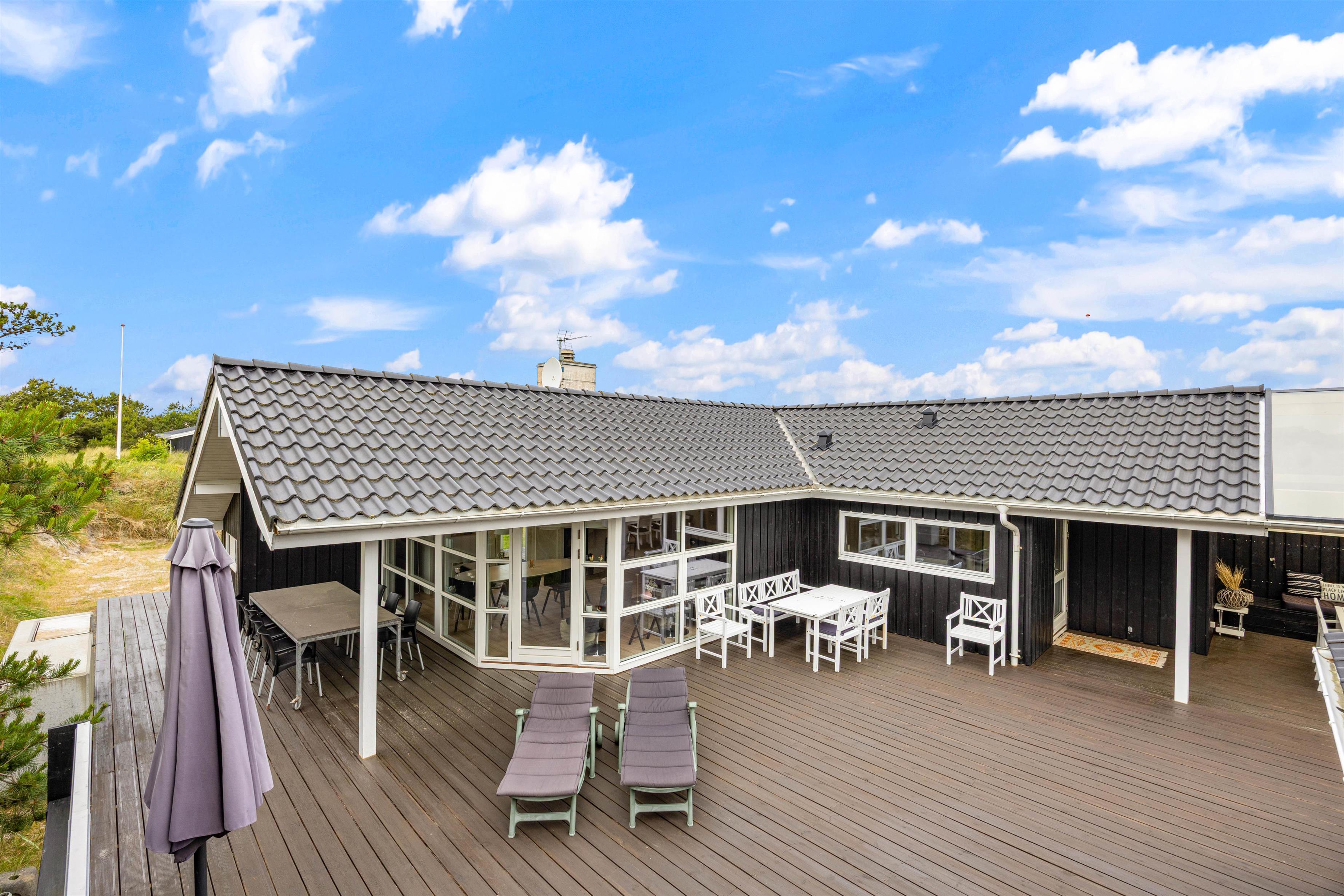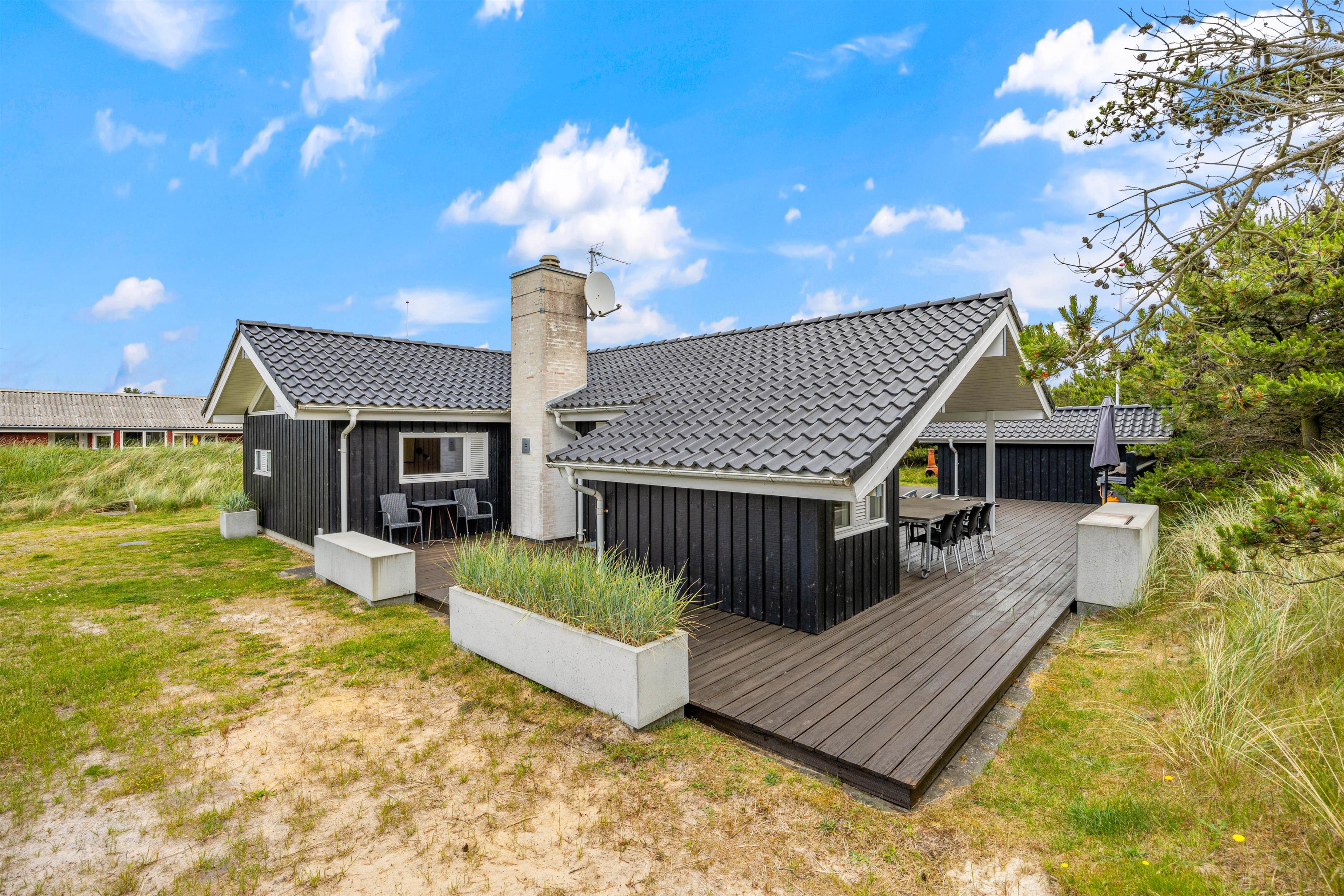 Her op Hvidbjergvej 21 finder I et flot kvalitetshus i Søndervig beliggende på en fredfyldt naturgrund. Der er en skøn terrasse omkring feriehuset, der er delvist overdækket og delvist afskærmet. Det er moderne indrettet og er veludstyret og har b.la. en god brændeovn, gratis internet og spa. I stuen er der en hyggelig alkove, og helt generelt ligger huset op til masser af hygge og afslapning, der i sidste ende vil give jer en masse gode minder i længe vil huske.