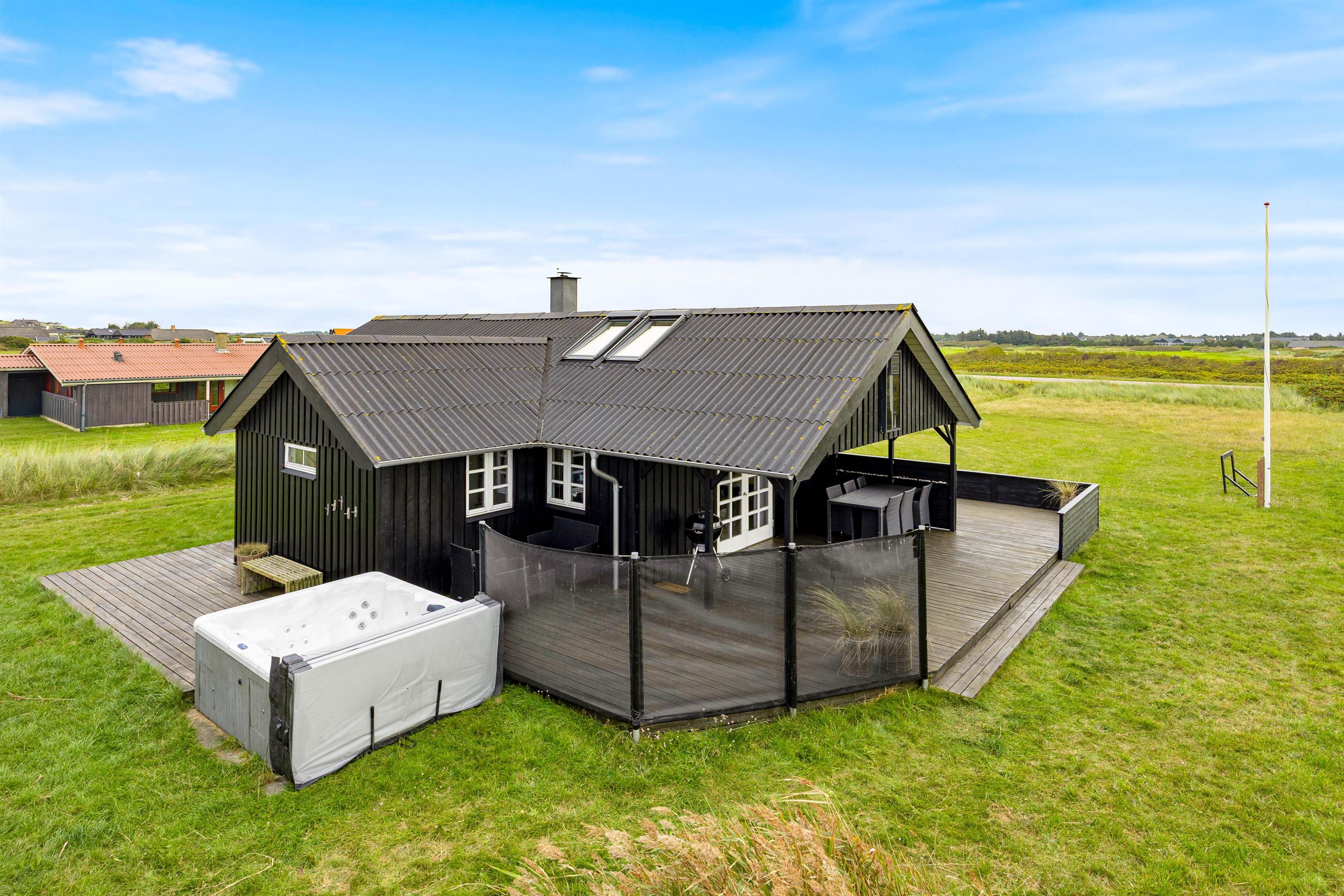 På terrassen finder I desuden et af husets ekstra highlights, den store udespa til fem personer. Her kan I året rundt gøre ferien lidt ekstra skøn med en varm badetur under åben himmel på husets udespa. En oplagt mulighed for at stresse af og lade batterierne op inden en ny, oplevelsesrig feriedag.