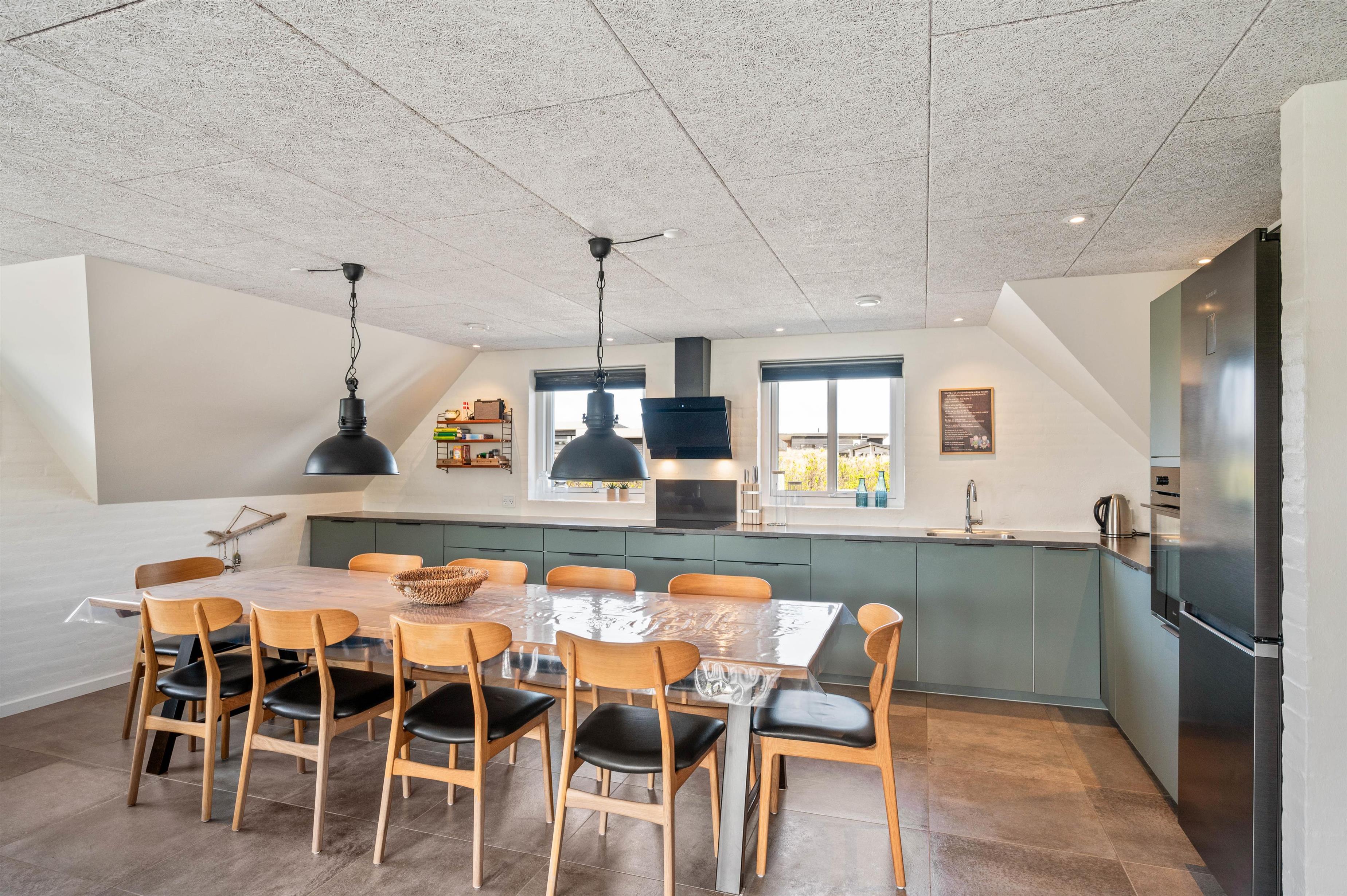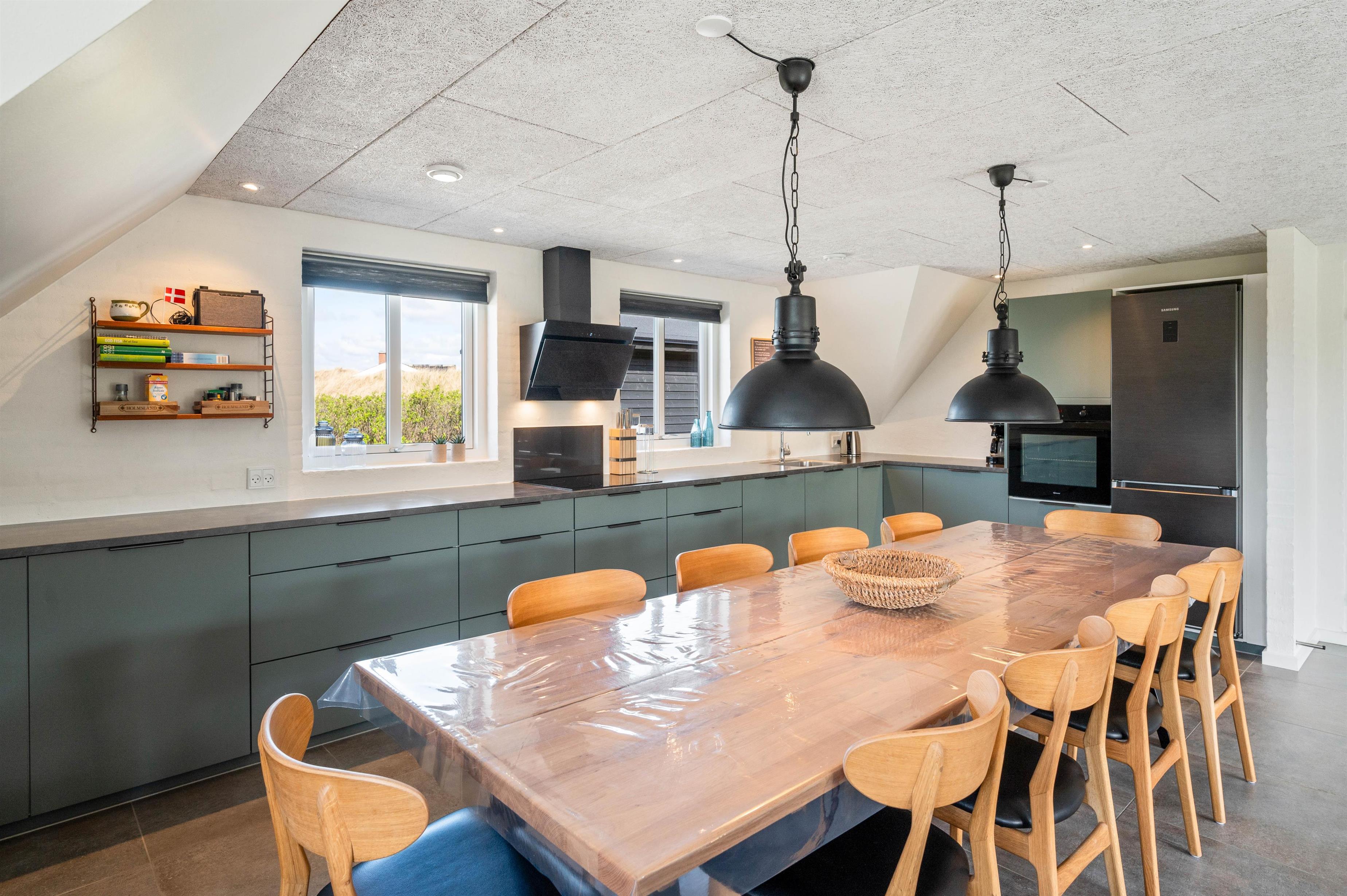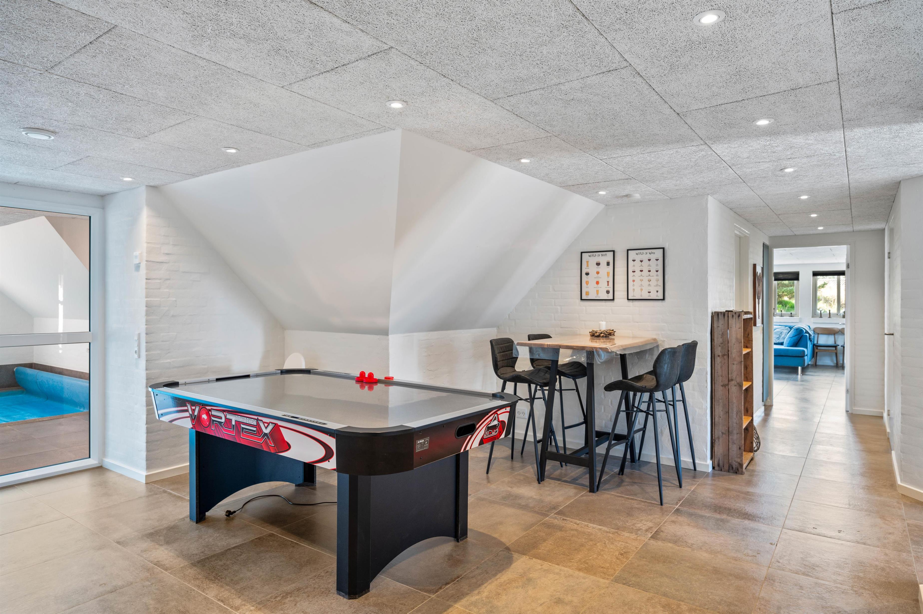 Sommerhusets alrum er det store samlingspunkt for hele ferieflokken. Her ligger køkken, stue og spiseplads i åben forbindelse, så I kan tilbringe masser af tid sammen og nyde hinandens selskab under madlavningen i køkkenet og afslapningen i stuen. Brændeovnen i stuen sørger for at sætte prikken over i’et for den hyggelige feriestemning. Derudover findes der Air-hockey i huset.