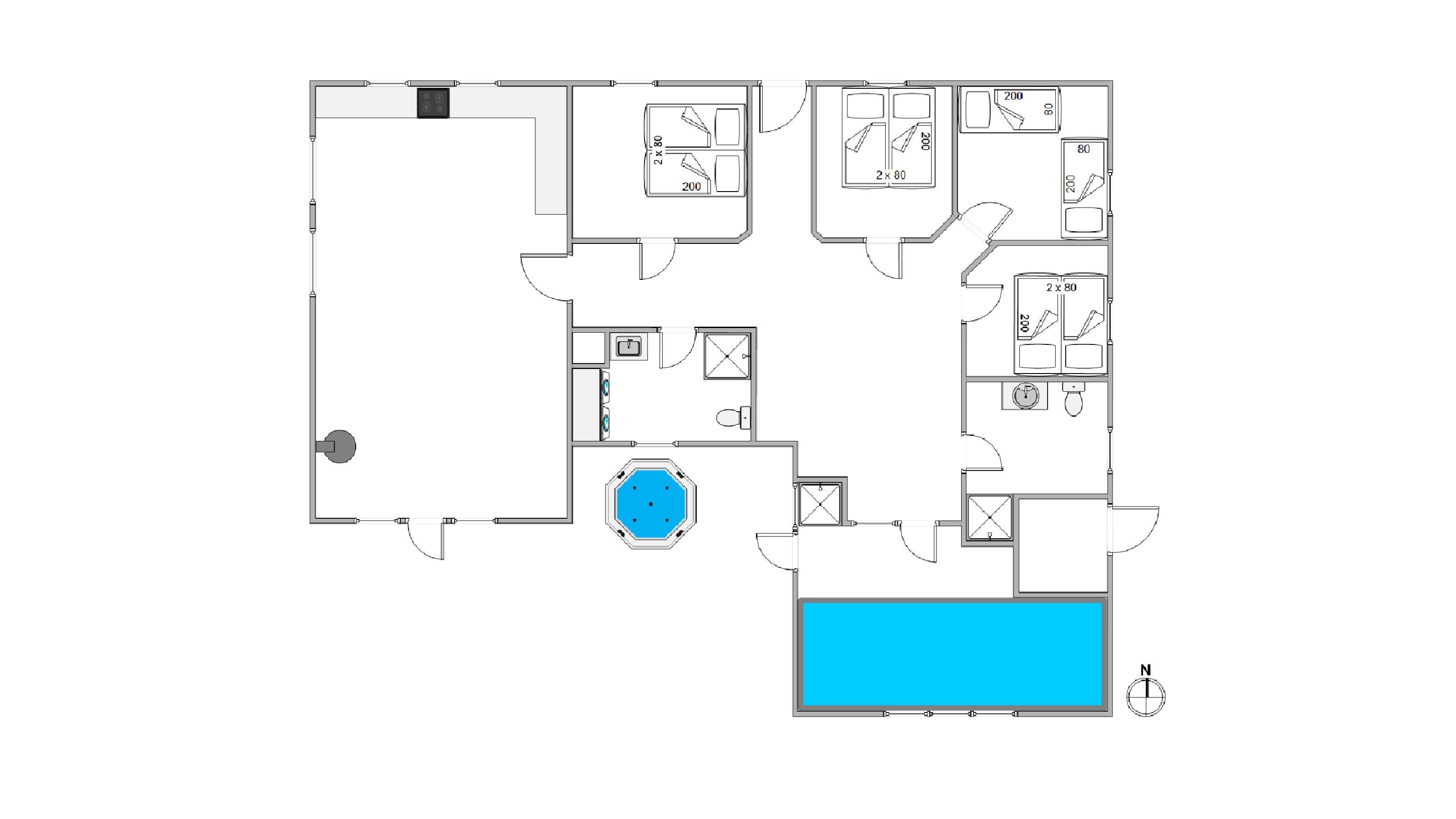 Når I ankommer til sommerhuset, der er totalrenoveret i 2022, vil I hurtigt finde jer godt til rette. Feriehuset er helårsisoleret og har jordvarme samt er på 206 kvadratmeter. Her kan feriens gæster fordele sig på de 4 soveværelser, hvoraf 3 er indrettet med dobbeltsenge, og det fjerde er indrettet med 2 enkeltsenge.