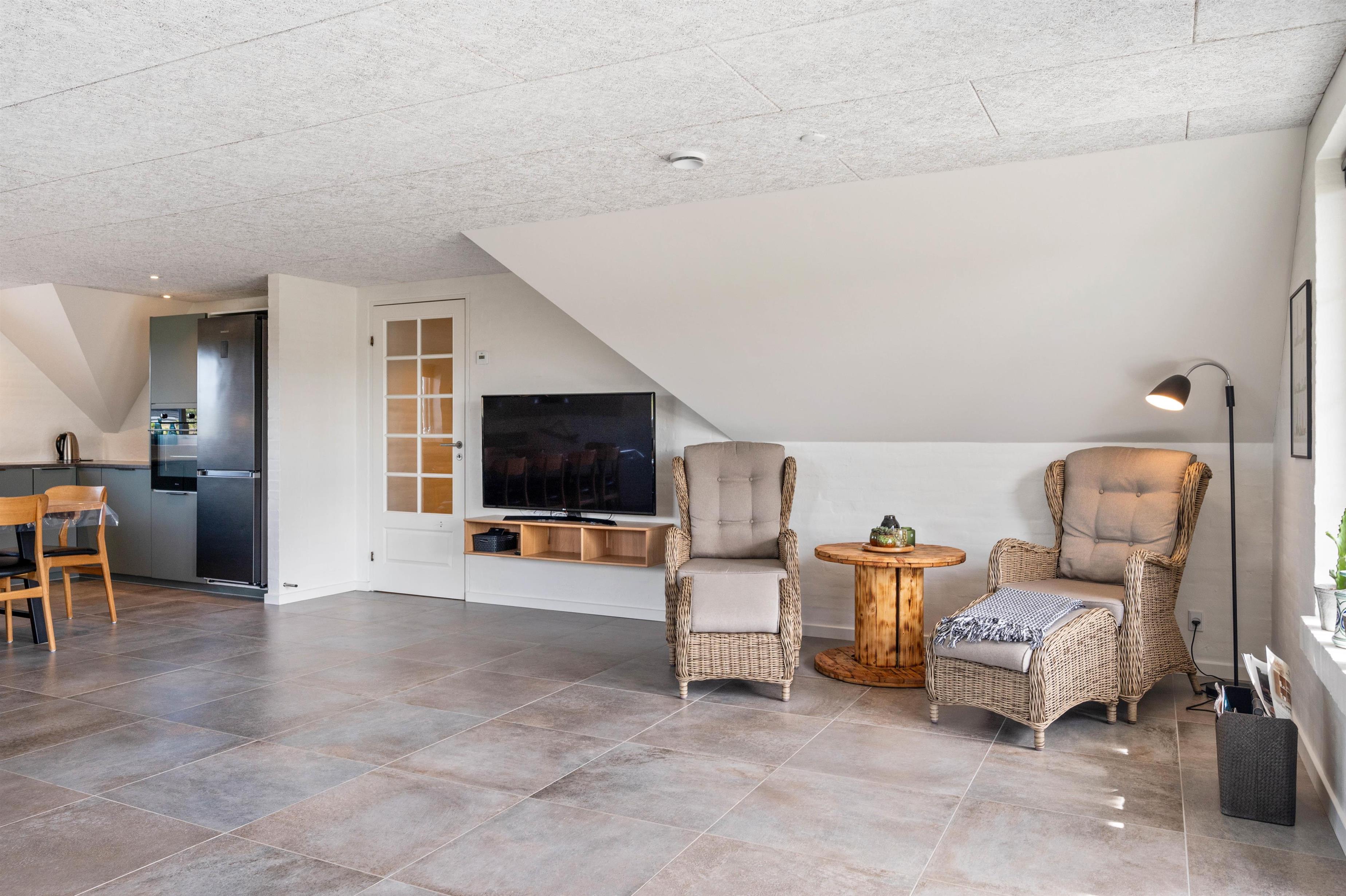 Skønt udeområde med terrasse og gyngestativ – kun 700 meter til stranden