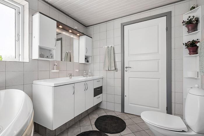 Sommerhuset byder desuden på to badeværelser, hvoraf det ene er udstyret med en sauna, perfekt til total afslapning. Begge badeværelser har behagelig gulvvarme, så ingen behøver at fryse fødderne uanset årstiden.