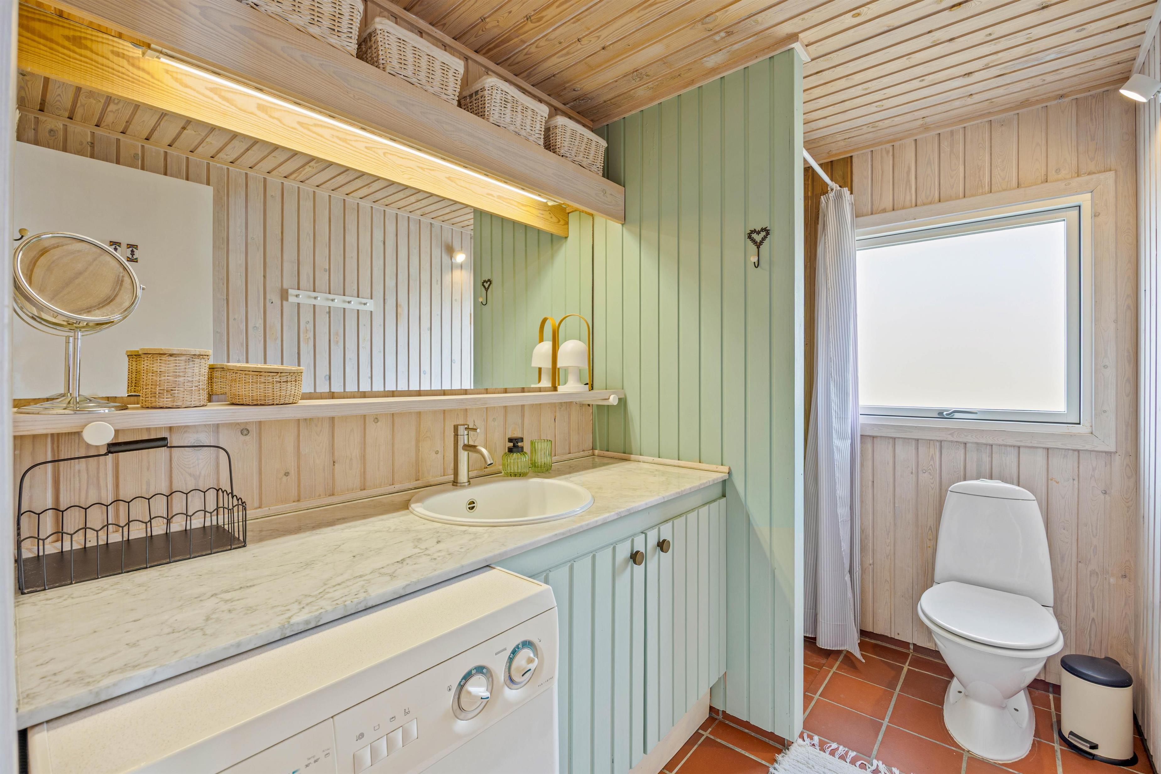 Køkkenet er fuldt udstyret med en opvaskemaskine, så opvasken bliver en leg, mens badeværelset byder på gulvvarme for ekstra komfort. Vaskemaskinen sikrer også, at I kan holde jeres tøj frisk gennem hele opholdet. Den effektive og energibesparende luft-til-luft varmepumpe hjælper med at holde temperaturerne behagelige, uanset årstiden.