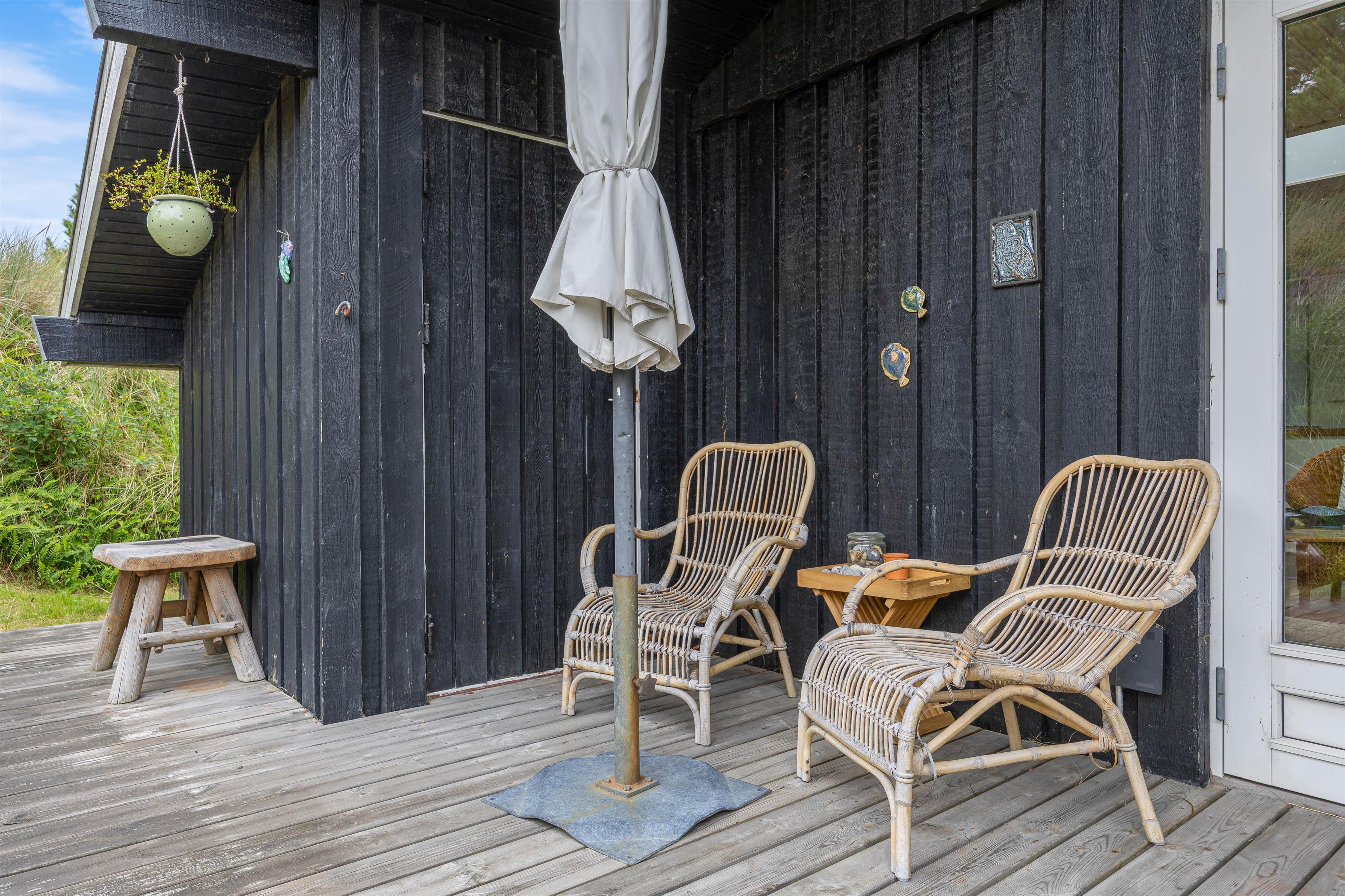 Sæt jer ud i sommerhusets hyggelige overdækkede terrasse, hvor I kan nyde de varme sommeraftener med et godt måltid fra grillen, imens i sidder i havemøblerne og nyder den 2465m² store grund. For de mindste er der en sandkasse, hvor de kan lege, mens de voksne slapper af. Med blot 900 meter til havet kan I nemt tage en forfriskende dukkert, eller nyde en afslappende dag på stranden.