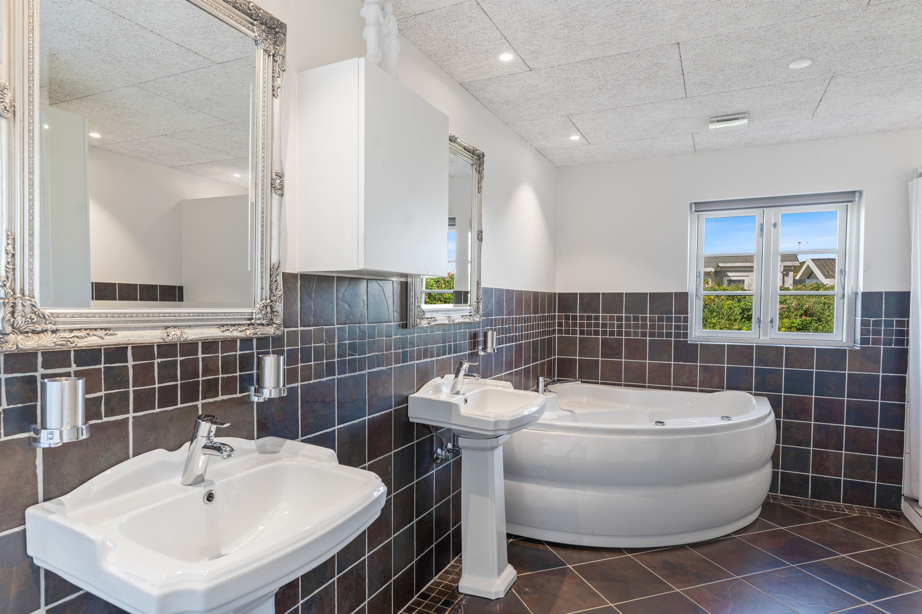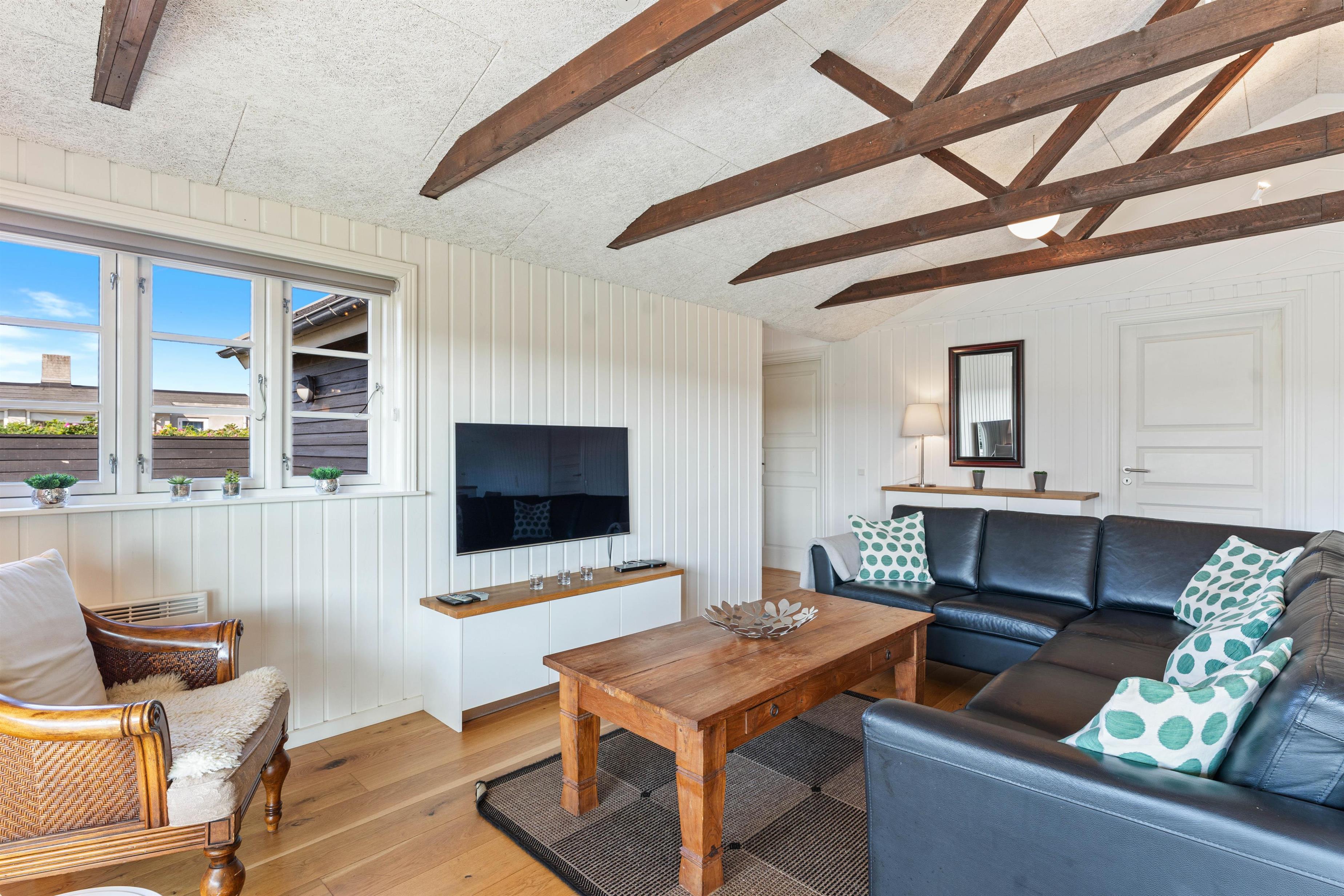Sommerhuset er yderst velholdt, og der er 4 værelser og 2 badeværelser, og til børnenes store glæde, er der et både et indespa og sauna i det store badeværelse, der giver jer mulighed for at nyde lidt hjemme-wellness. Hele sommerhuset er desuden med troldteks loft, der både giver et stilrent look, men særligt også en god akoustik. Sammen med det store vinduesparti i stuen, sørger troldteksloftet bare for en lys og hjemlig fornemmelse i maven.