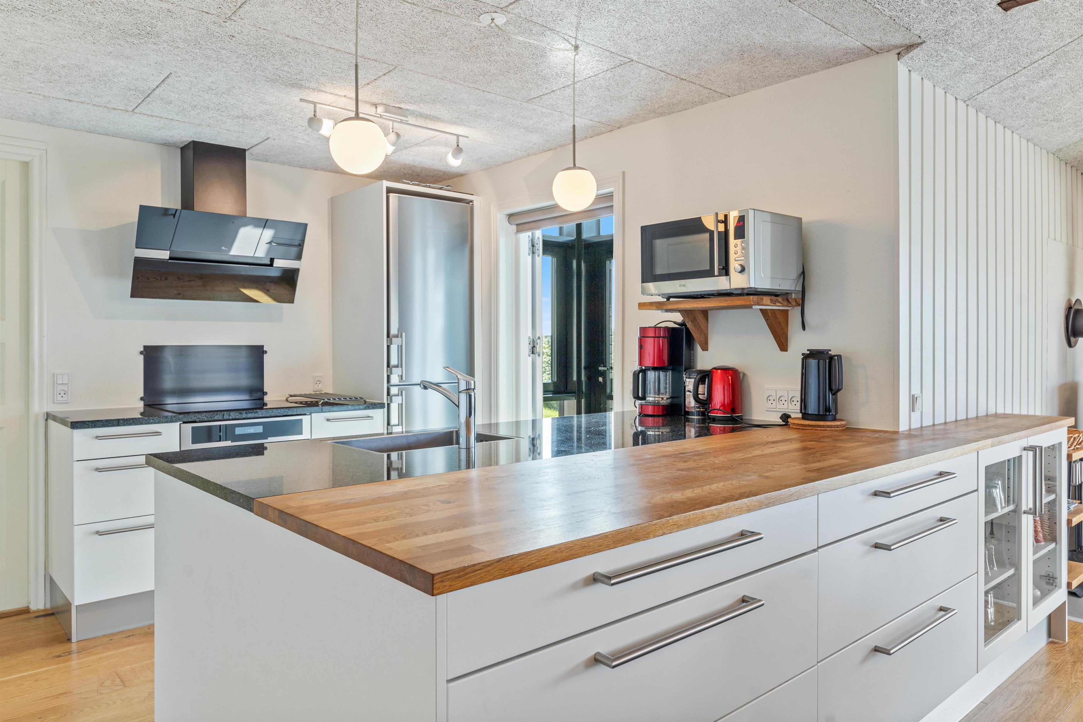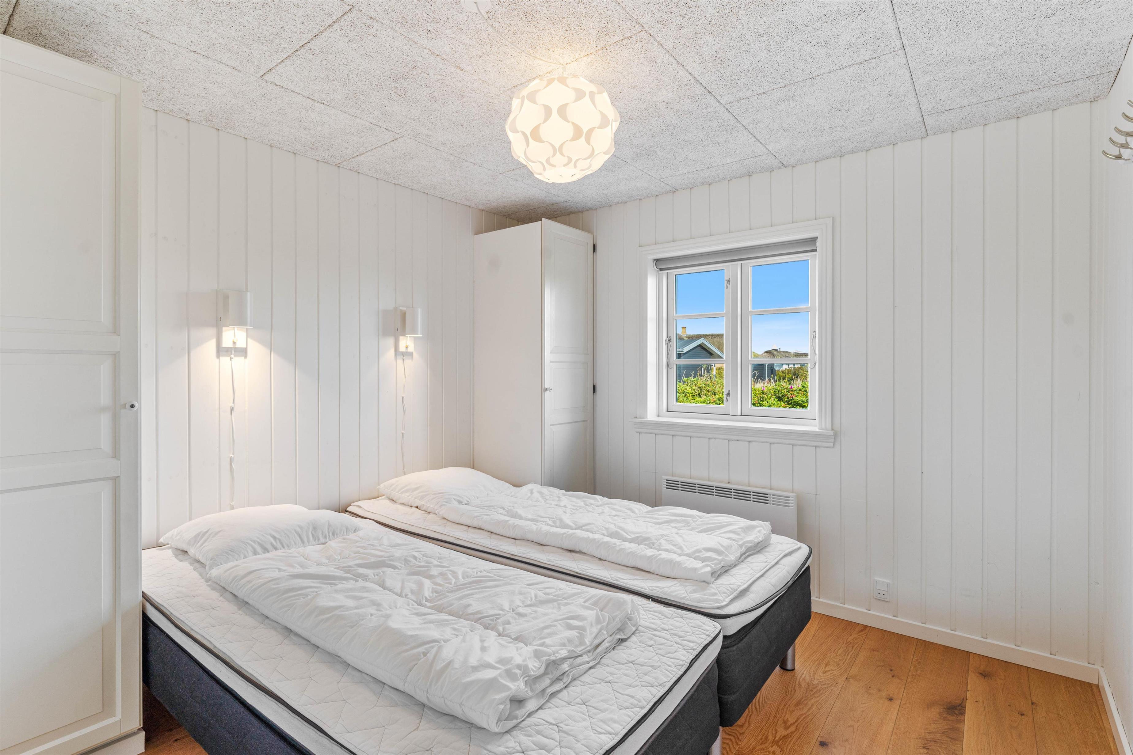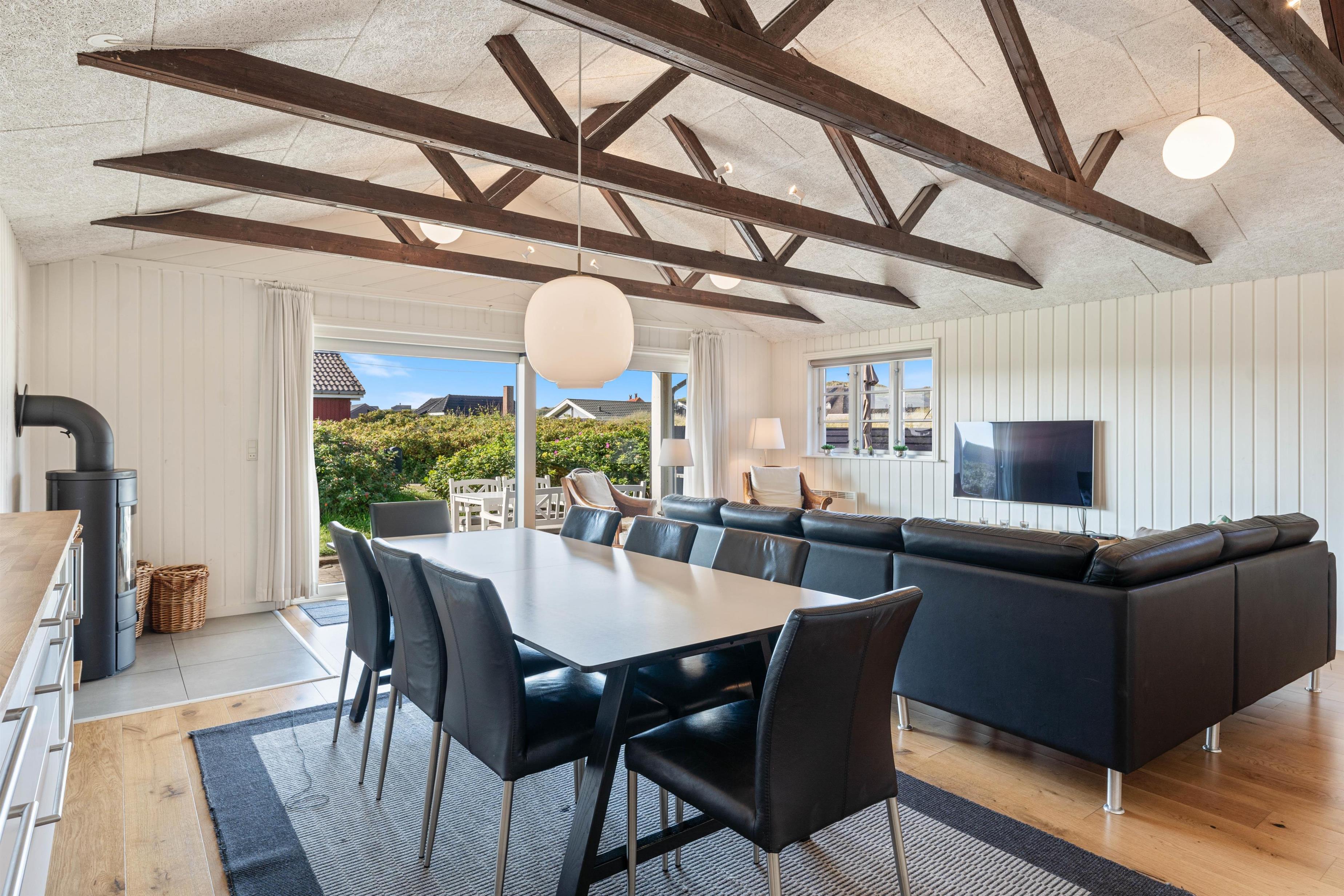 Hafavej 139 kan byde på et ægte og hyggeligt sommerhus i træ, bygget i den stil de oprindelige huse var det i Søndervig, men naturligvis i en meget mere moderne version. Indvendigt er der loft som går hele vejen til til kip i stuen og med hyggelige og synlige bjælker, er der blevet skabt en rummelig og meget hyggelig rumfornemmelse. For at tilføje endnu mere hygge og varme i indretningen, er der sommerhuset også med en brændeovn, der på de kølige dage kan hjælpe med at sprede en masse varme og hygge, der alt I alt er med til at skabe den skønneste atmosfære.