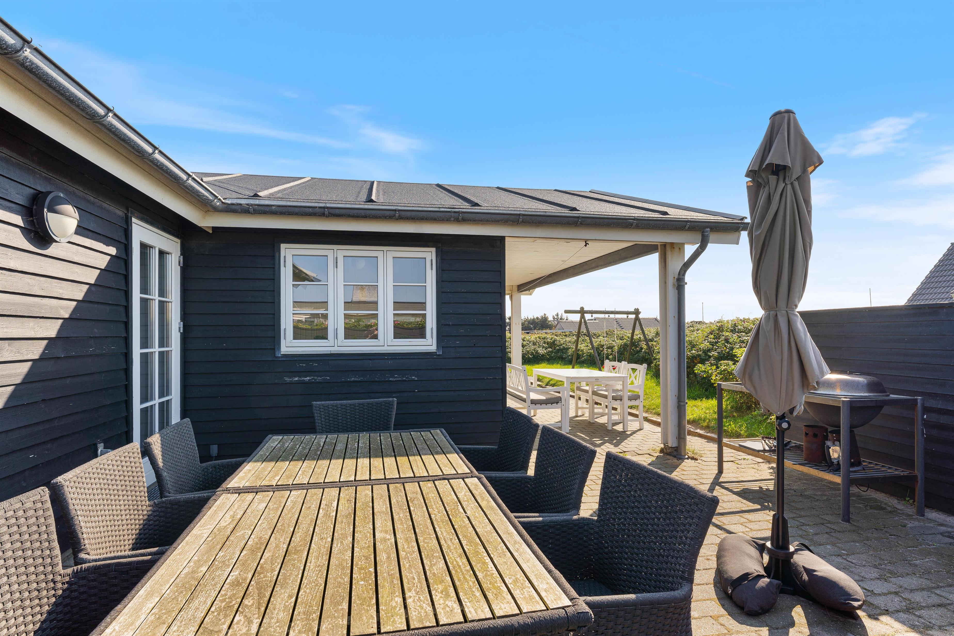 Til dette feriehus medhører der også en carport, samt en delvist overdækket terrasse mod syd, ideelt til grillaftener. Ønsker man at spise ude en aften eller to, er der gode restauranter i badebyen Søndervig, uden at man behøver køre i bil.