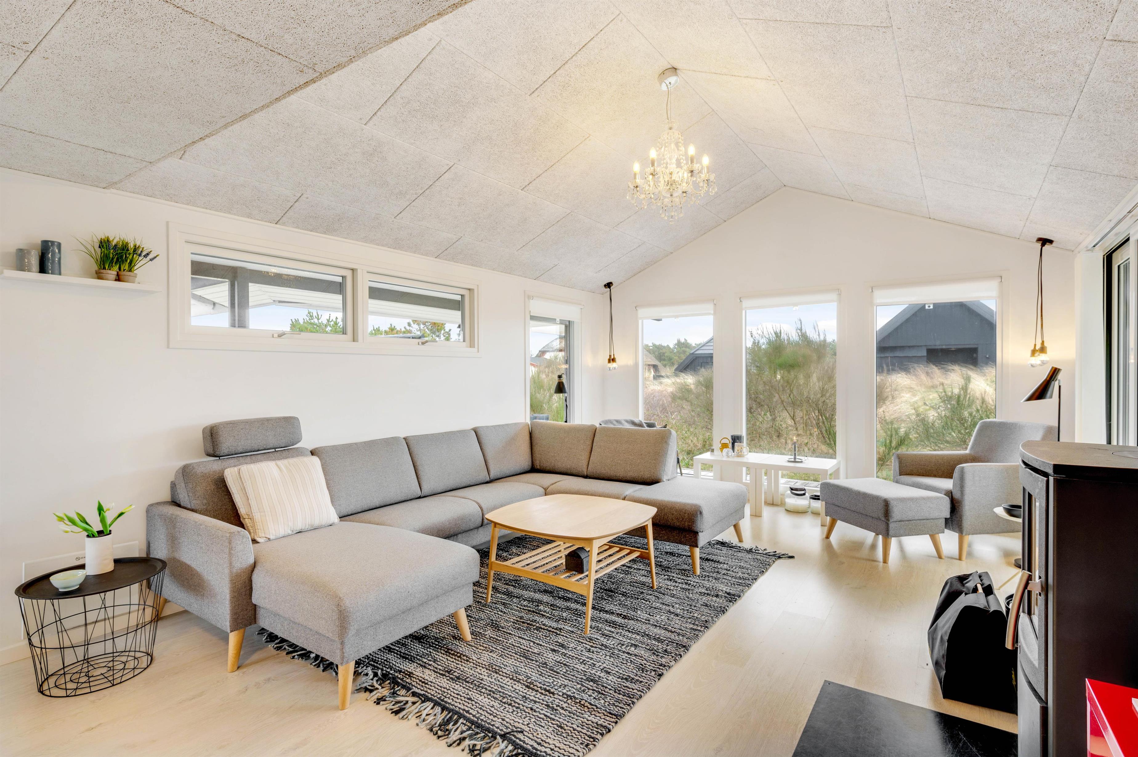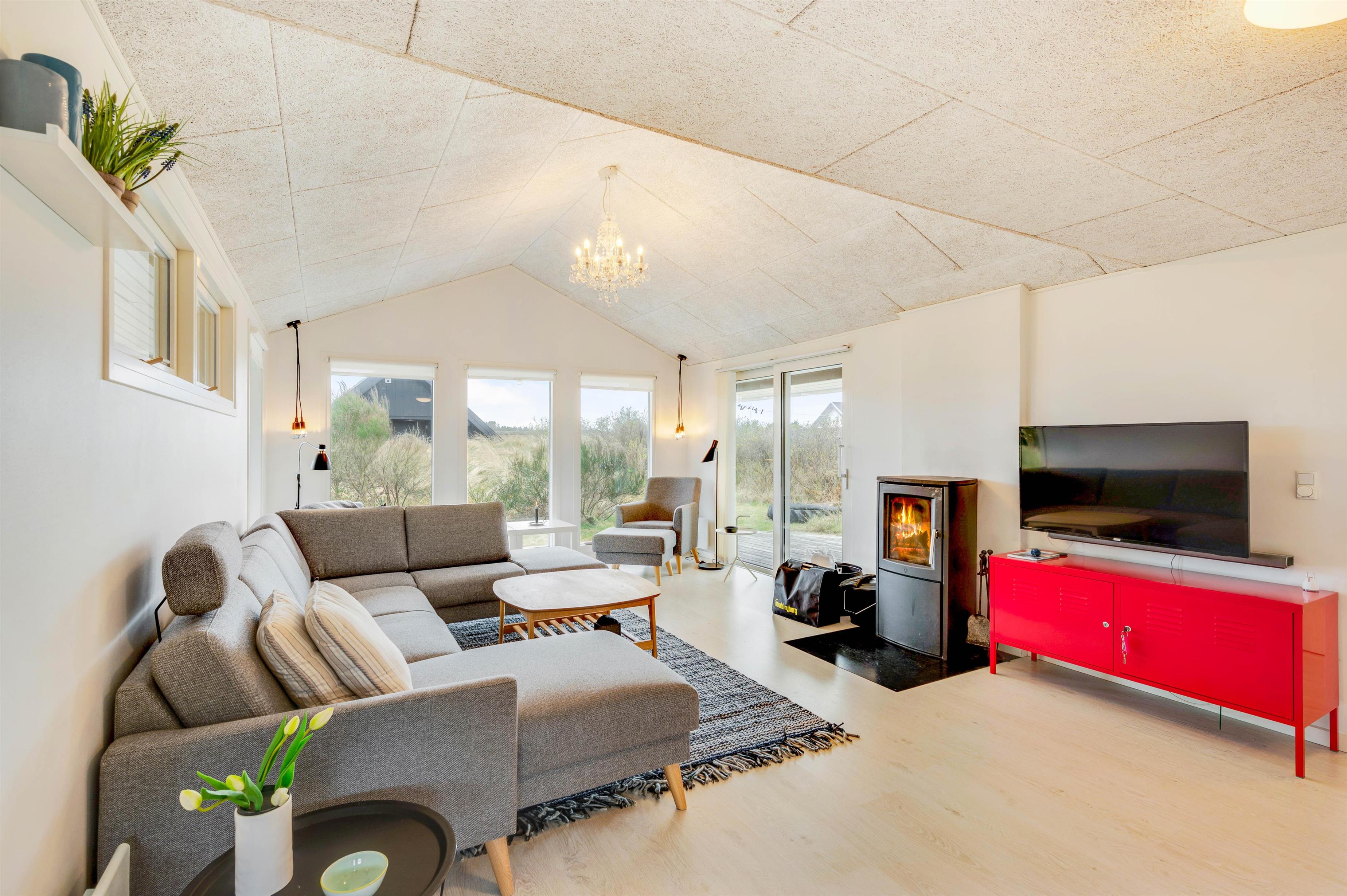 Med en Chromecast i sommerhuset er det ingen sag at hygge med yndlingsserien i sofaen. Der er selvfølgelig en brændeovn i feriehuset, og de knitrende flammer spreder til hver en tid god feriestemning. Den energibesparende varmepumpe bidrager også til et behageligt rumklima hele året rundt.