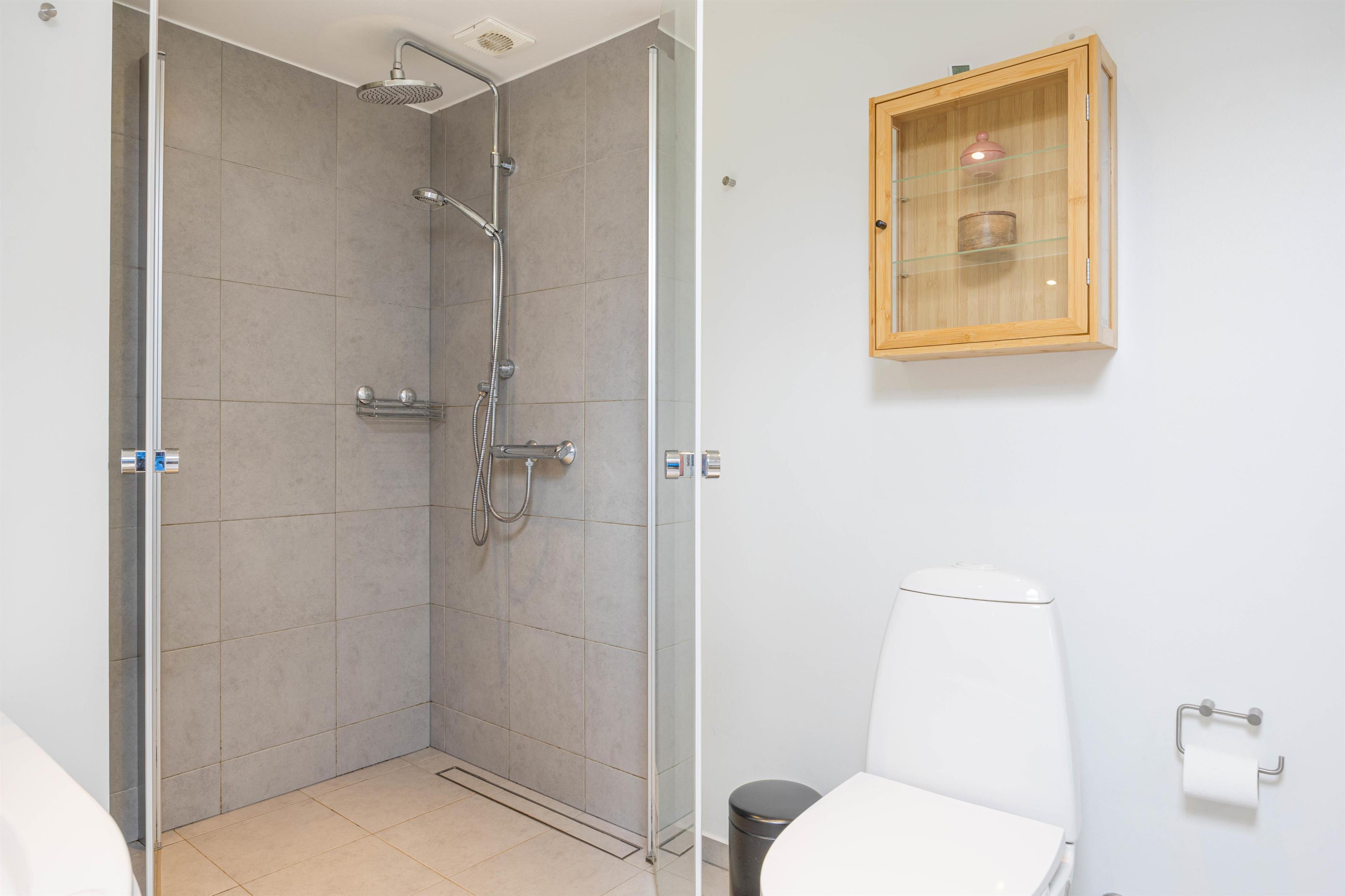 Feriehuset er har to badeværelser, der begge er udstyret med gulvvarme, som efter moderniseringen fremstår lyse og venlige. På det største badeværelse venter jer et par ekstra highlights - her står der nemlig både en sauna og et spabad klar til jer. Findes der bedre måder at få varmen på efter en gåtur langs vandet i den friske havluft?