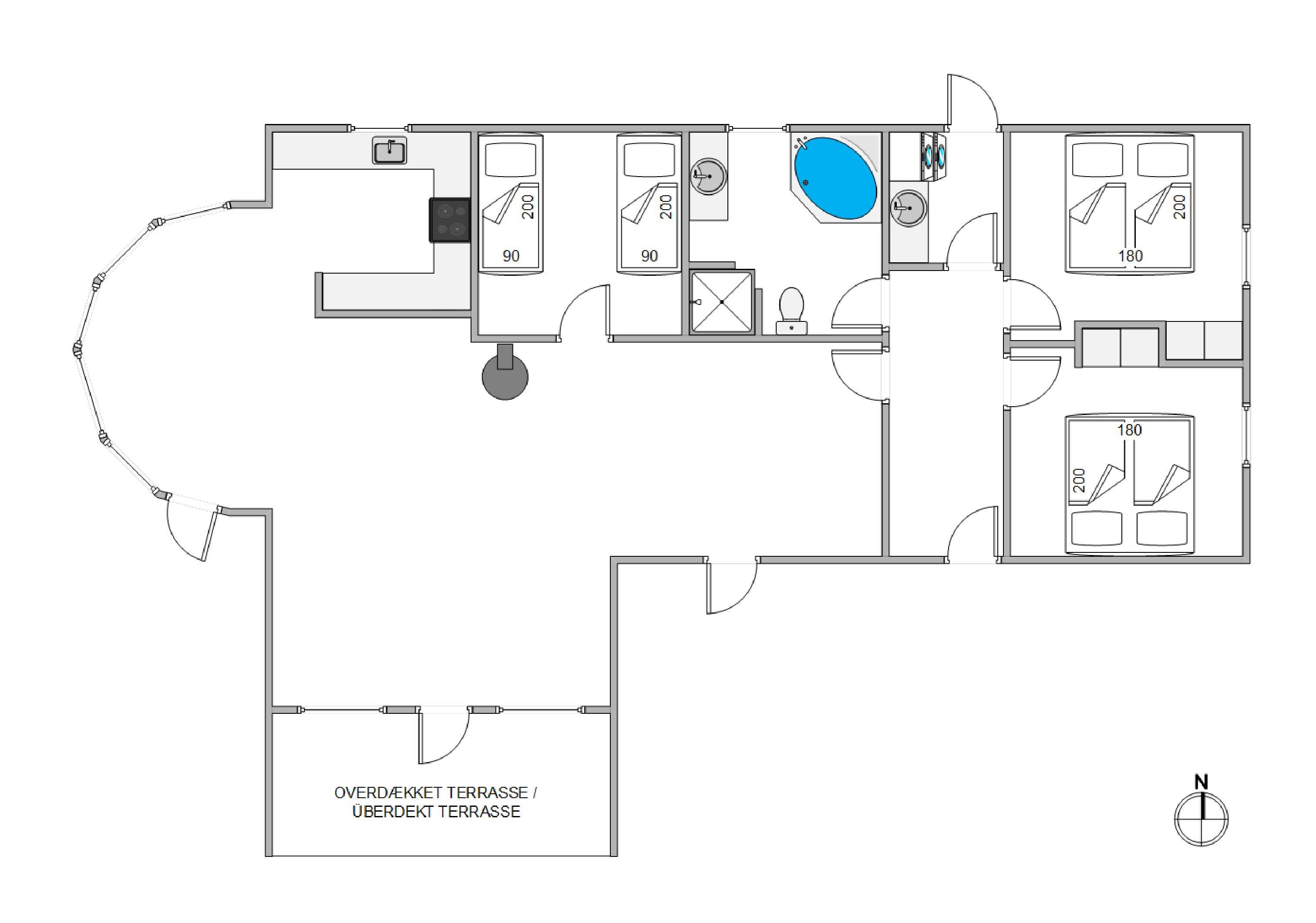 På det store badeværelse med gulvvarme finder I et af husets highlights. Her står spabadet klar til at forkæle jer med skønne wellnessoplevelser. Blandt de praktiske faciliteter finder I både 100 liters seperat fryser, opvaskemaskine, vaskemaskine og tørretumbler.